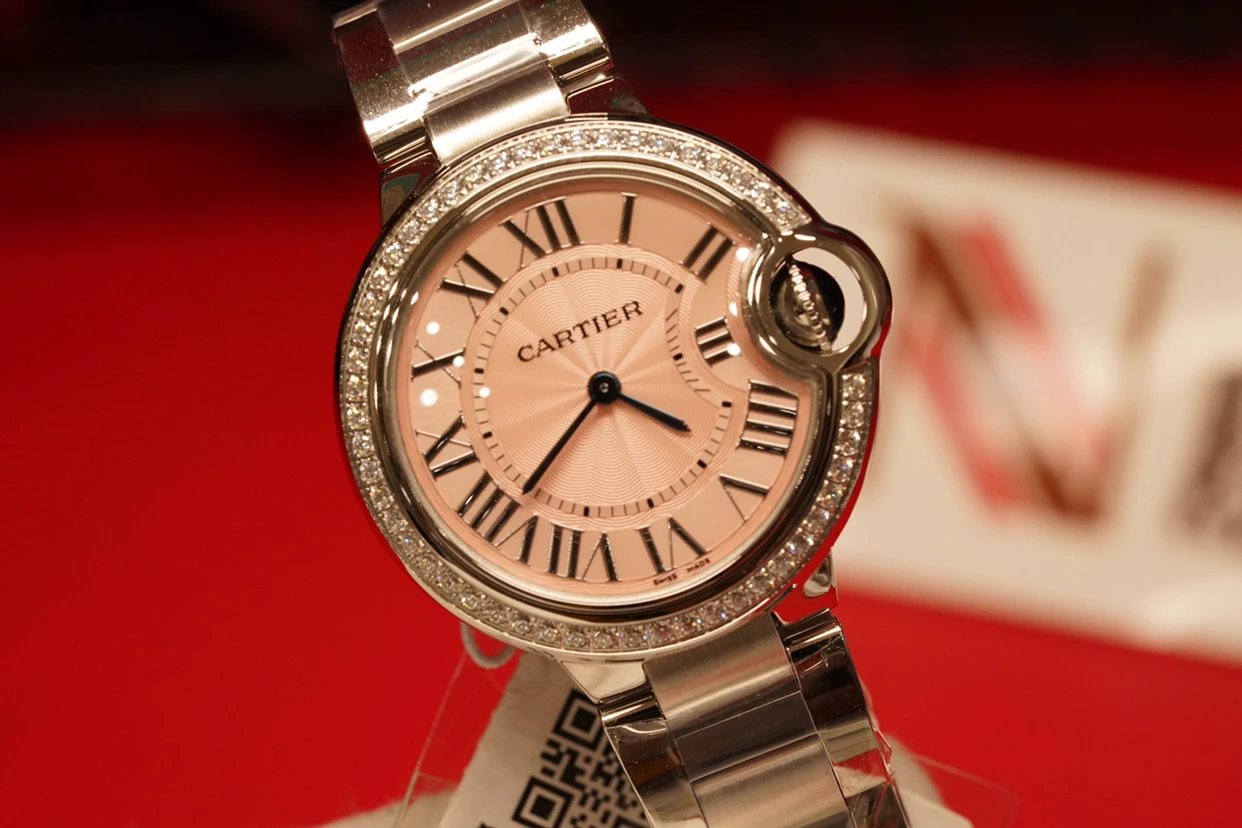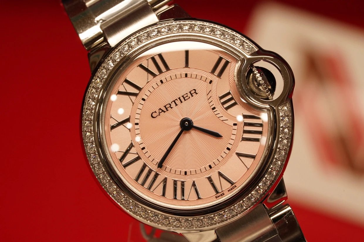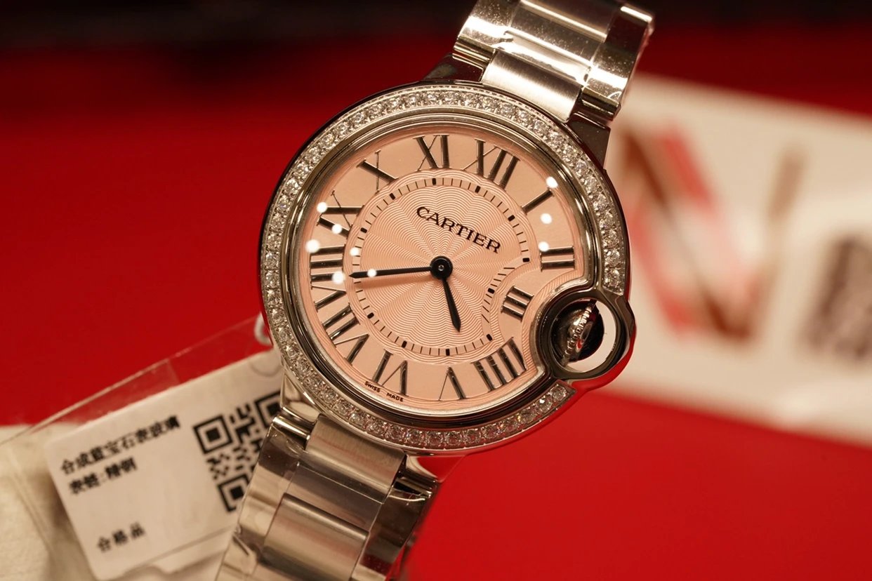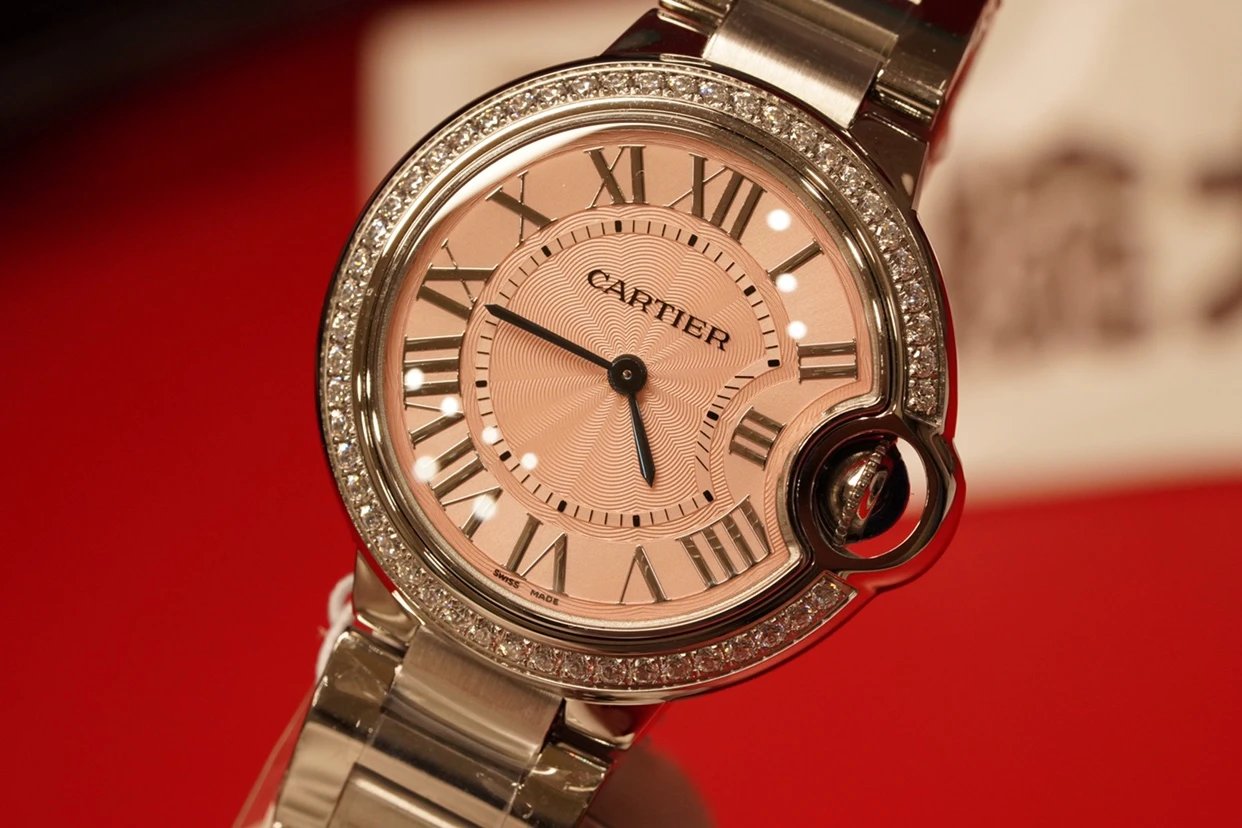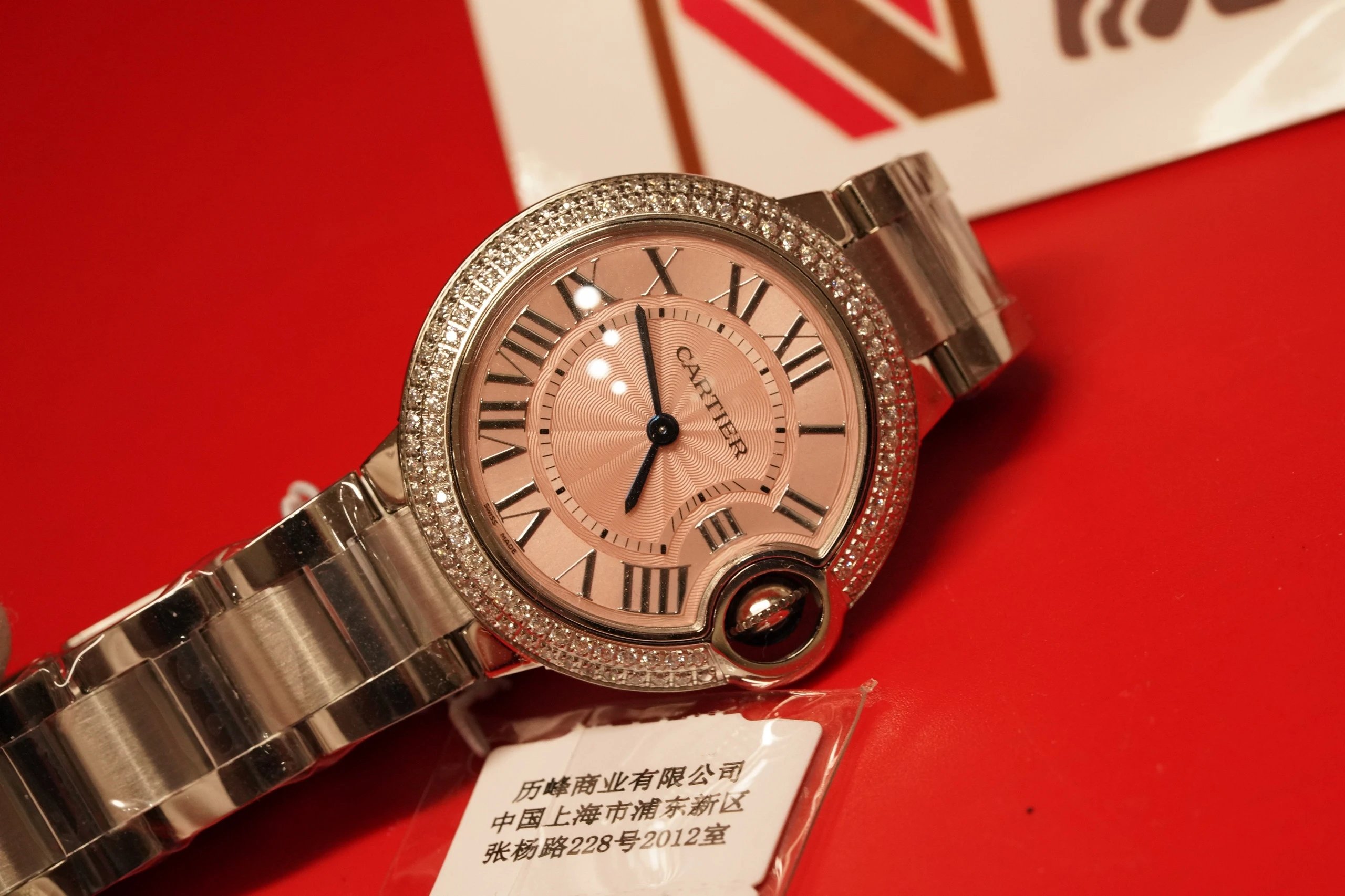 V6臻品:最高版本稀有卡家藍氣球系列wsbb0047腕表(精鋼-粉色錶盤手工鑲嵌美鑽-鍍銀珠光扭索雕紋錶盤,劍形藍鋼指針,石英,33毫米)鑽石材質是鋯石