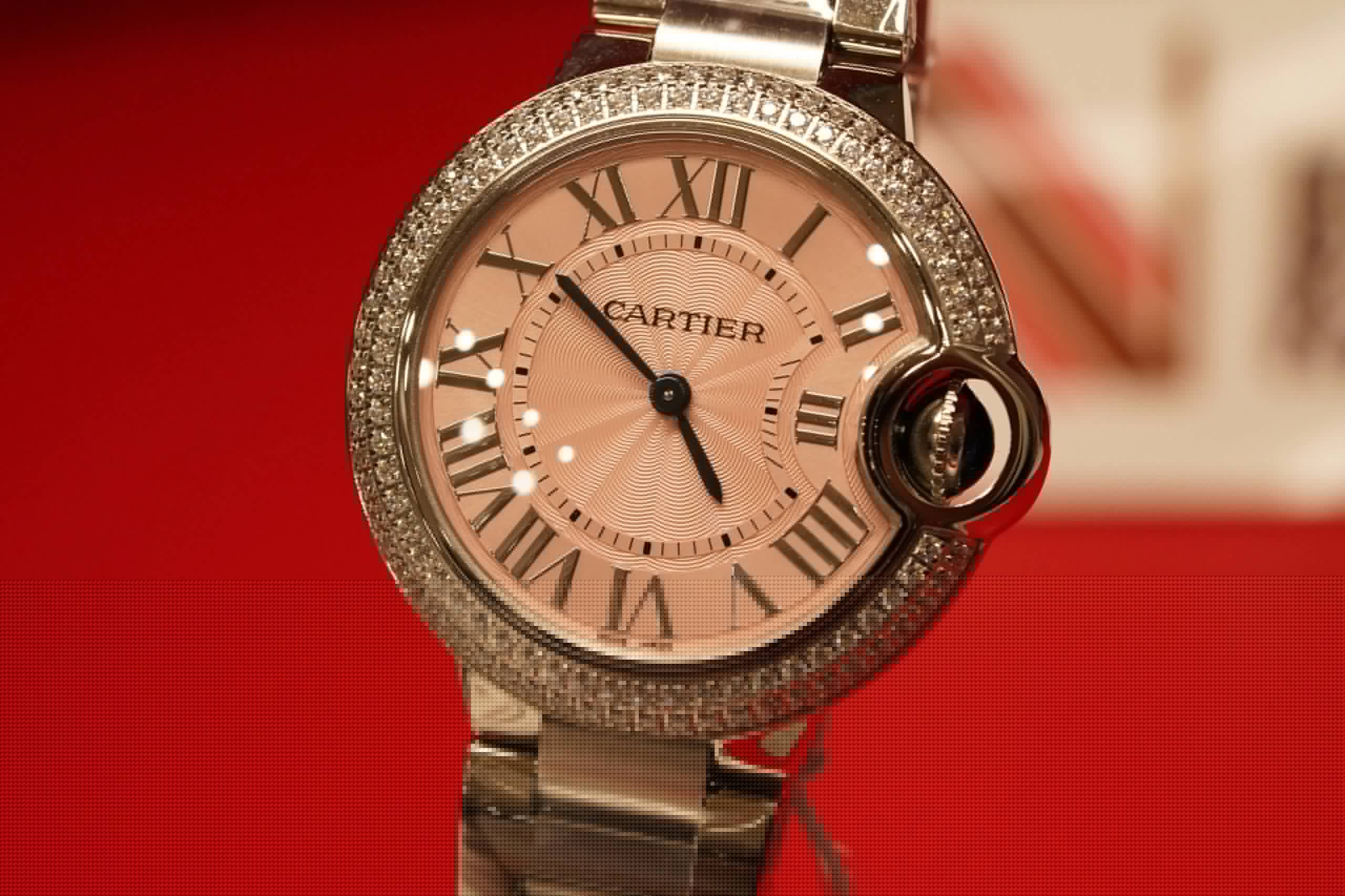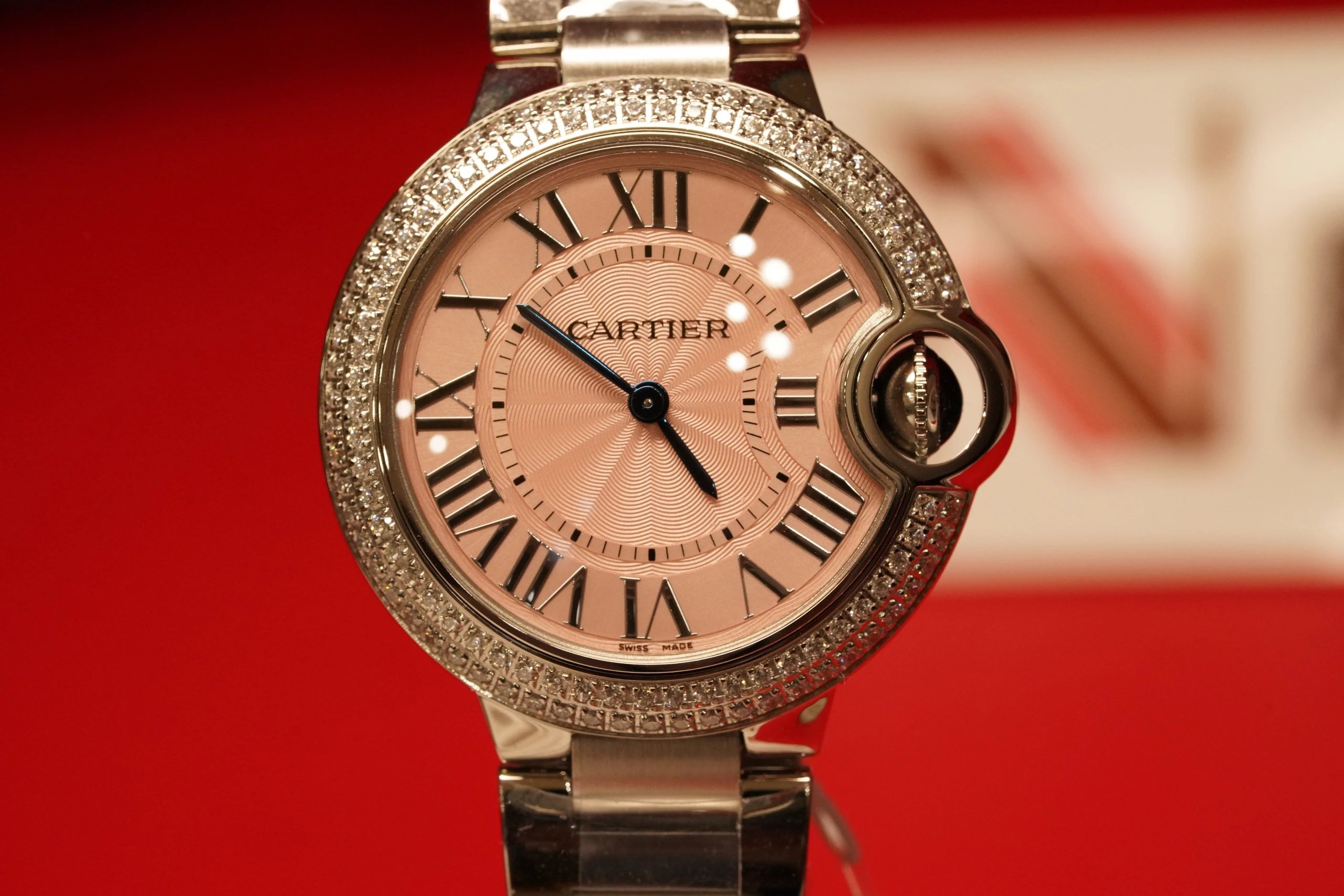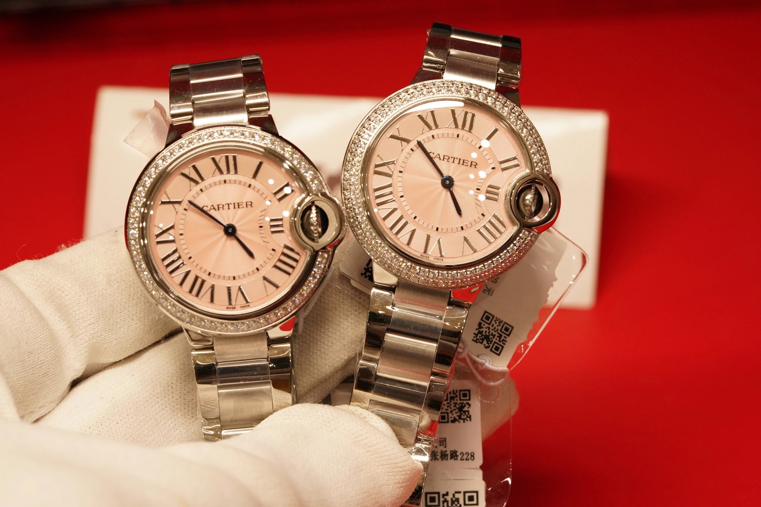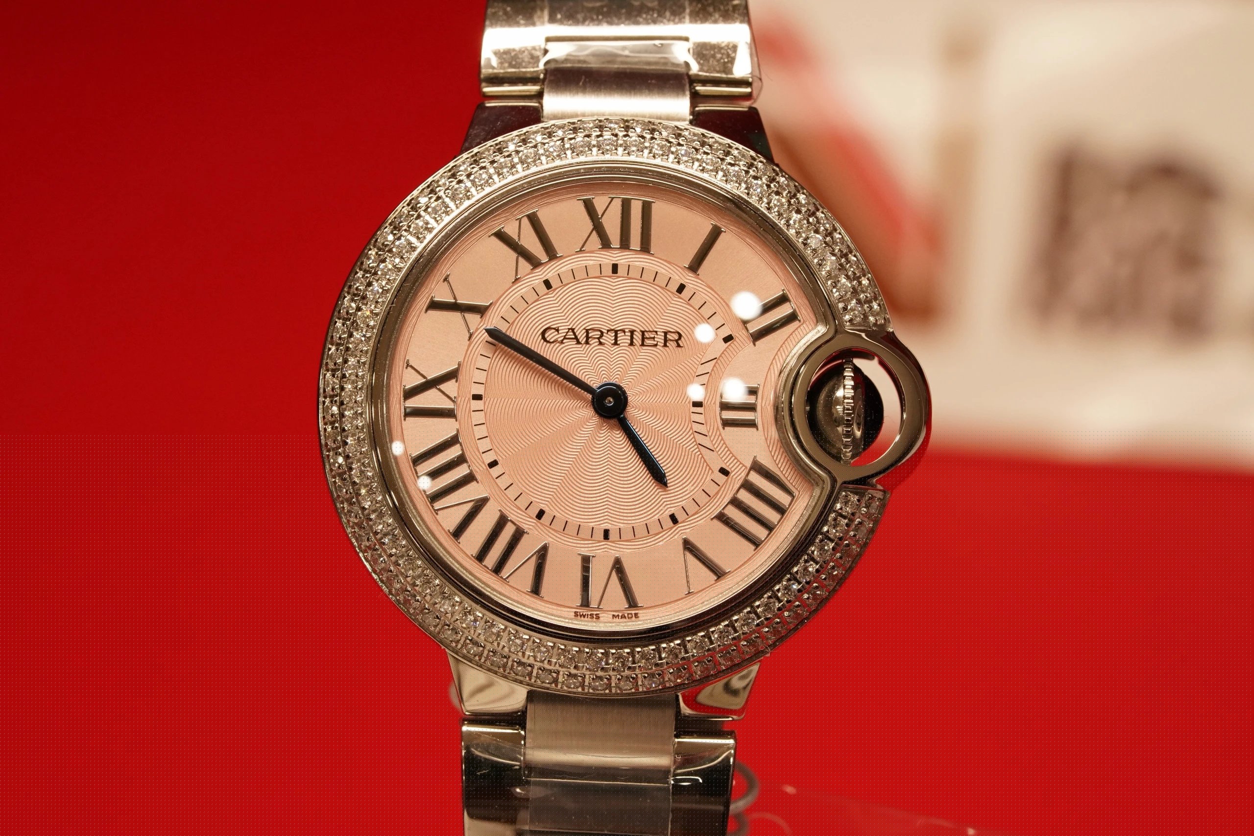V6臻品:最高版本稀有卡家藍氣球系列wsbb0047腕表(精鋼-粉色錶盤手工鑲嵌美鑽-鍍銀珠光扭索雕紋錶盤,劍形藍鋼指針,石英,33毫米)鑽石材質是鋯石