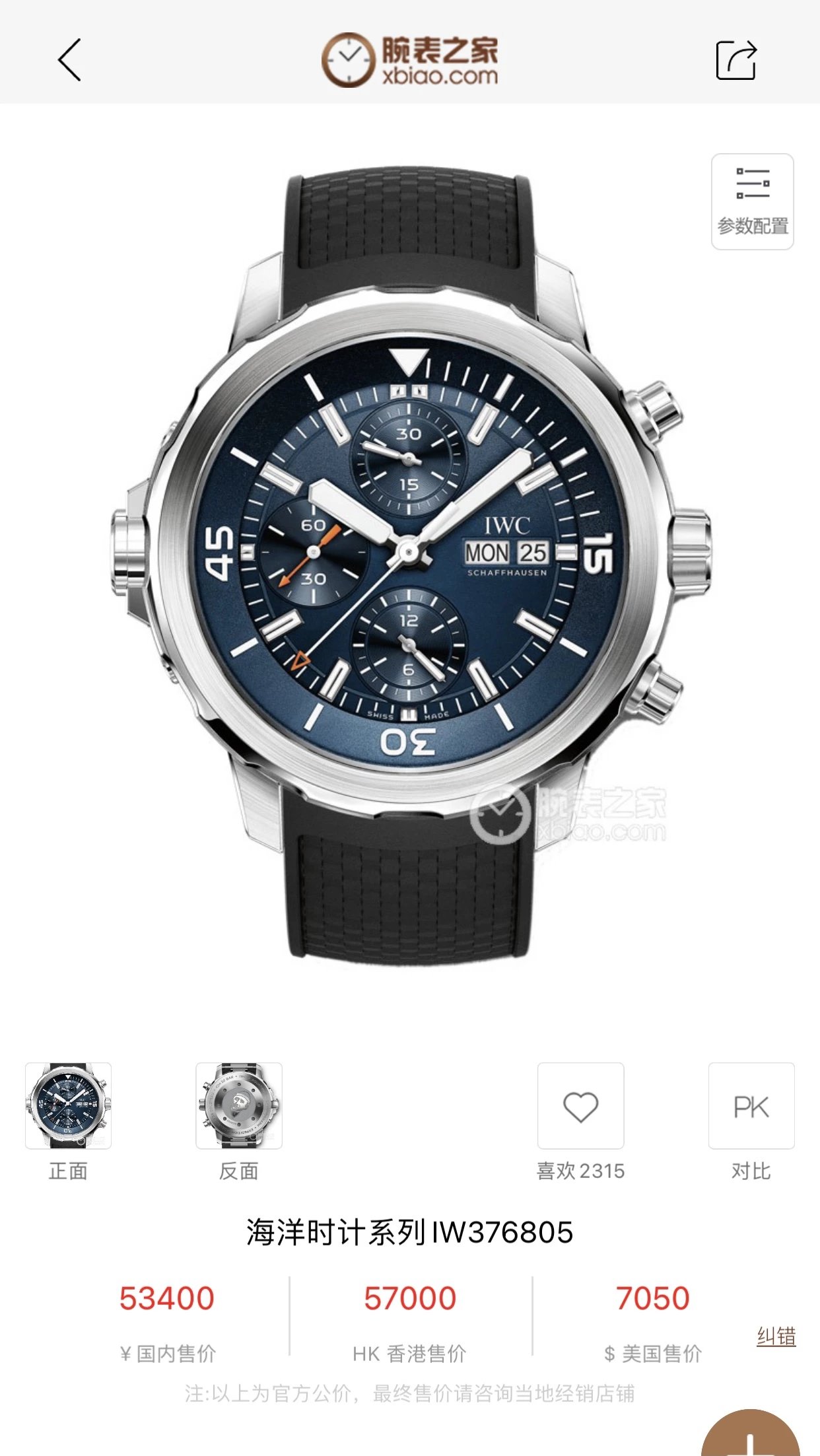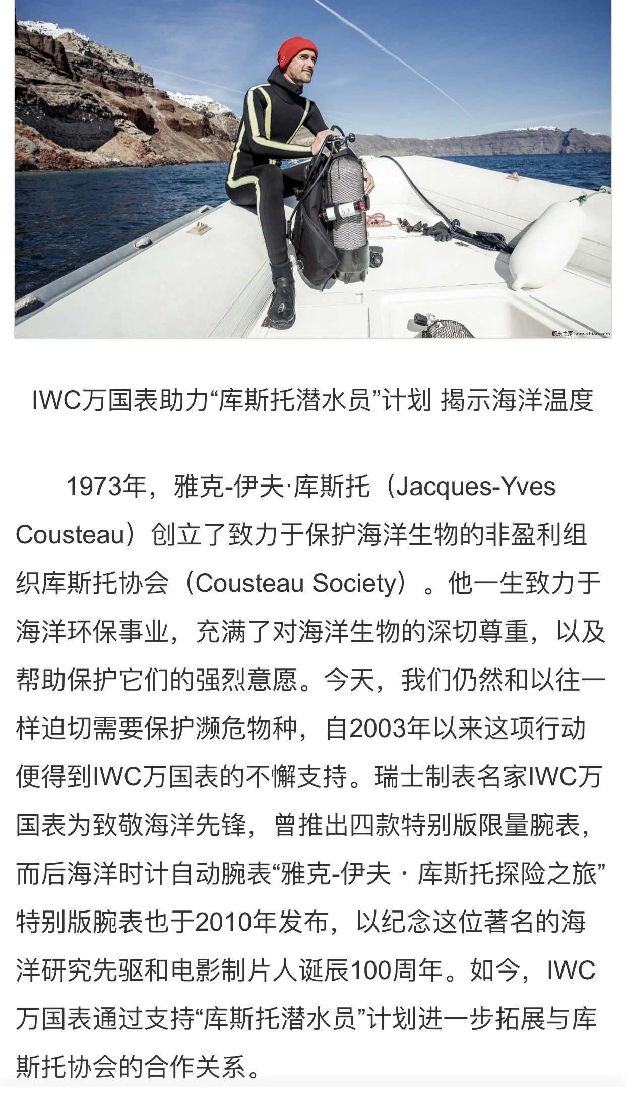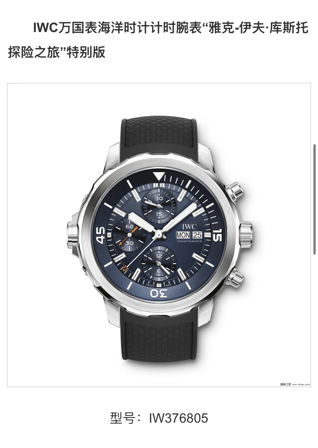V6 Factory萬.國IW海洋時計系列IW376805腕表(“雅克-伊夫庫斯托探險之旅”特別版):