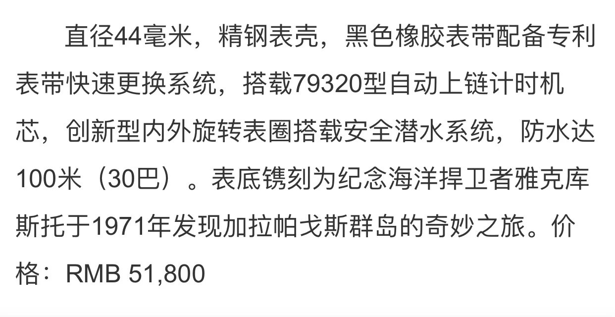 海洋計時系列雅克伊夫庫斯托探險之旅特別版,