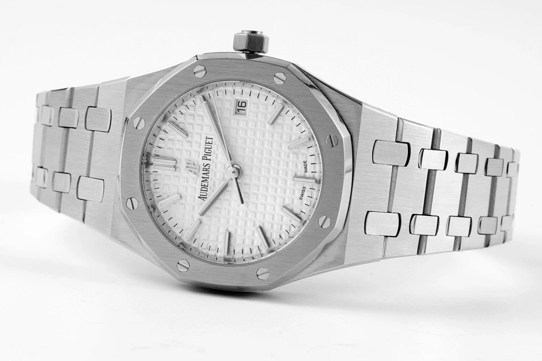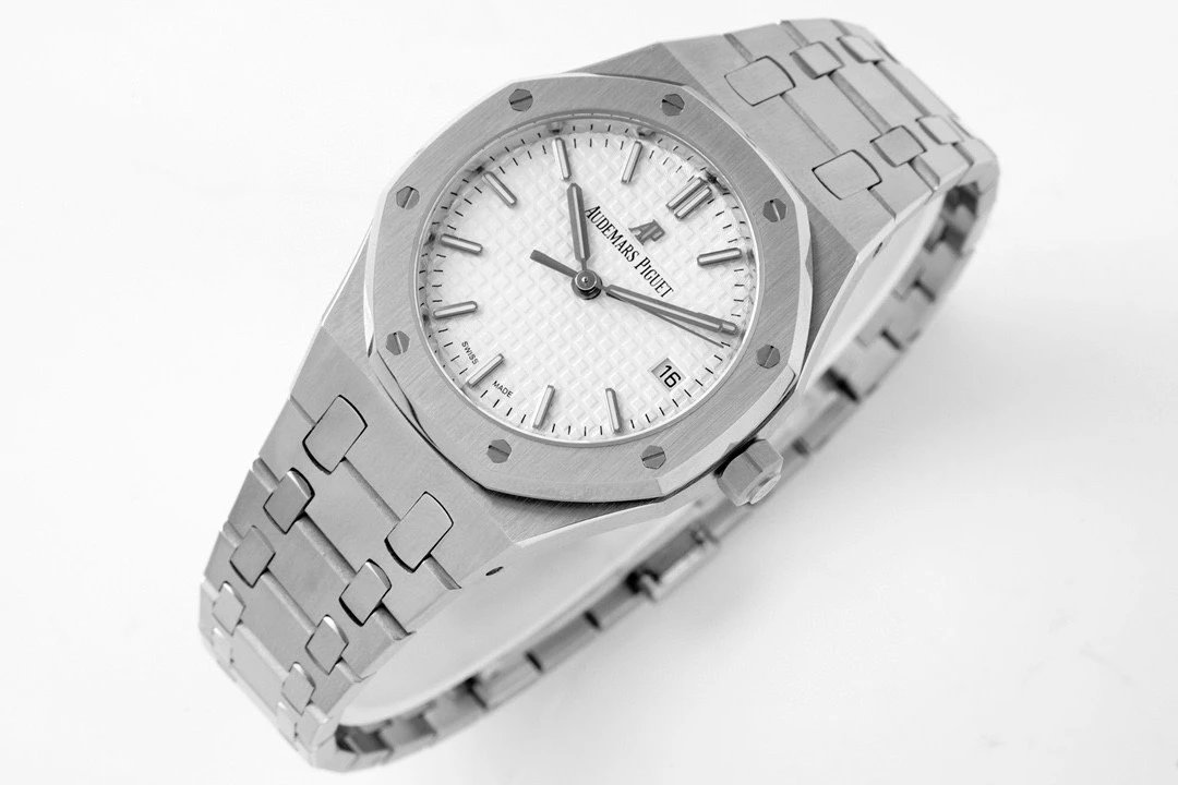 8F新品 直徑34毫米的皇家橡樹系列自動上鏈腕表,以全新表殼尺寸再現這一傳奇系列的前衛風格,並為纖細手腕的佩戴者演繹出別樣的優雅格調。