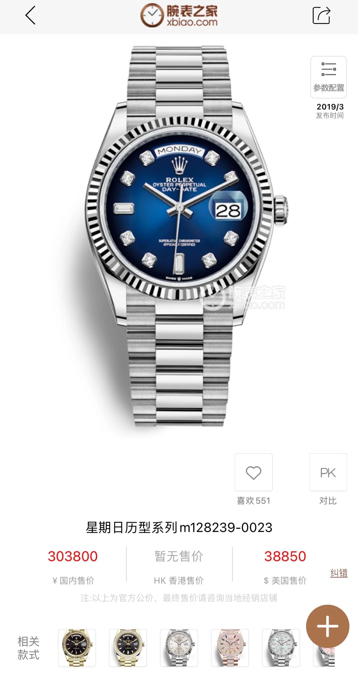 勞力士星期日曆型系列m128239-0023腕表鑲鑽版
