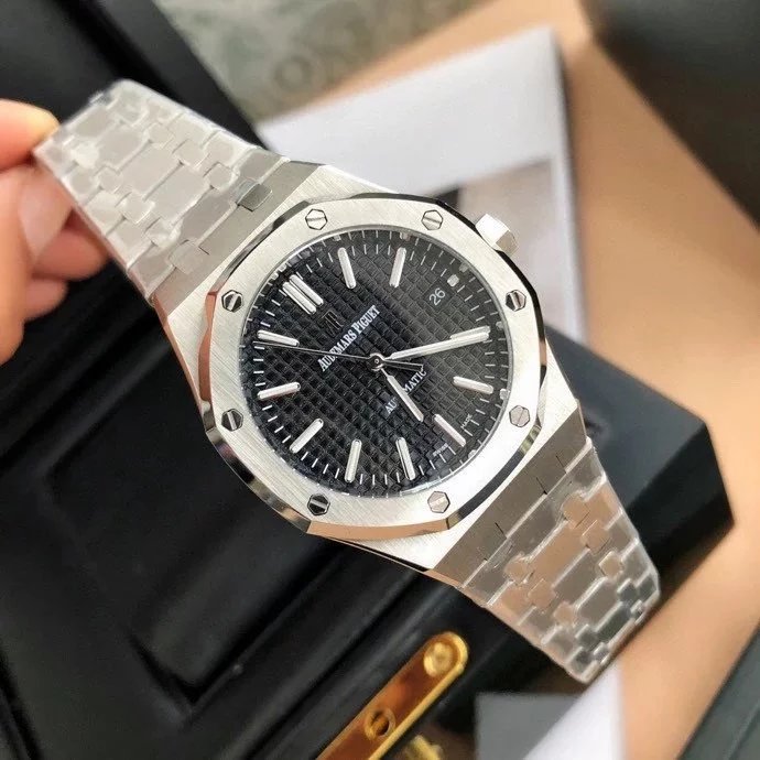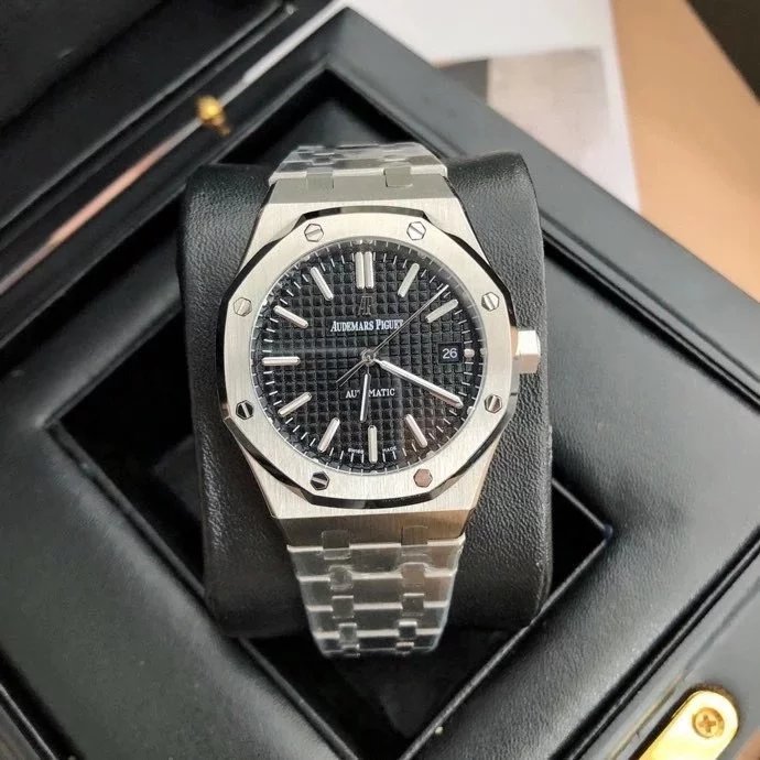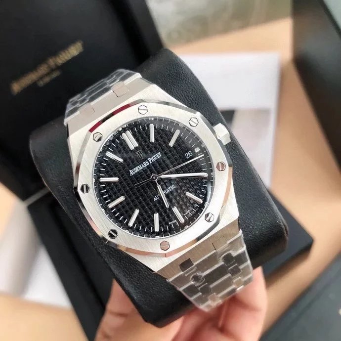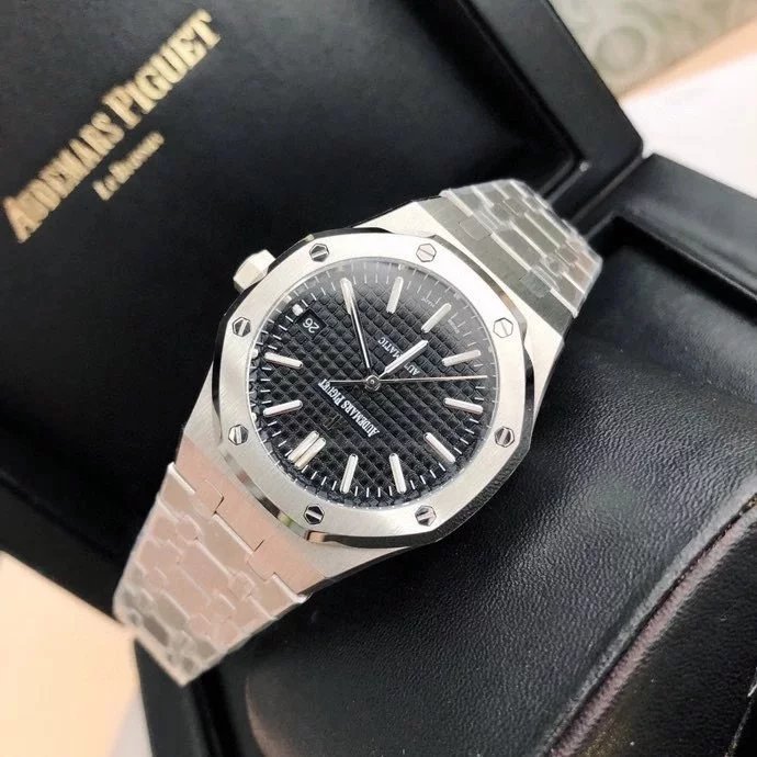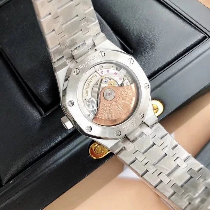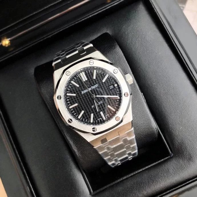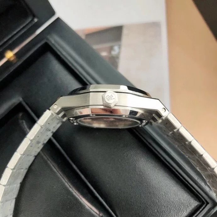 【6大精妙之處】 1.正品拆解開模,尺寸為37毫米與正品一致! 2.完美還原正品表殼的每一處細節,盡顯正品“棱角分明 堅毅果敢”的陽剛氣質。 3.鋼帶的做工無敵,比市面上任何鋼帶表做工均要更上一層樓,鋼帶頭粒和表頭銜接的“緩衝帶”的鬆緊程度與正品一模一樣。 4.自動陀的與原裝致敬,是市面唯一做到顏色於原裝一致的版本(市面一般版本均偏紅)其上的ap族徽雕刻獨一無二。5.打破夾板概念,採用進口機芯改 愛彼 CAL.4302一體機!更穩定,更優秀,更真實。 6.錶盤的“餅乾紋理”立體飽滿,精神抖擻!絕非普通小廠一般失魂落魄。