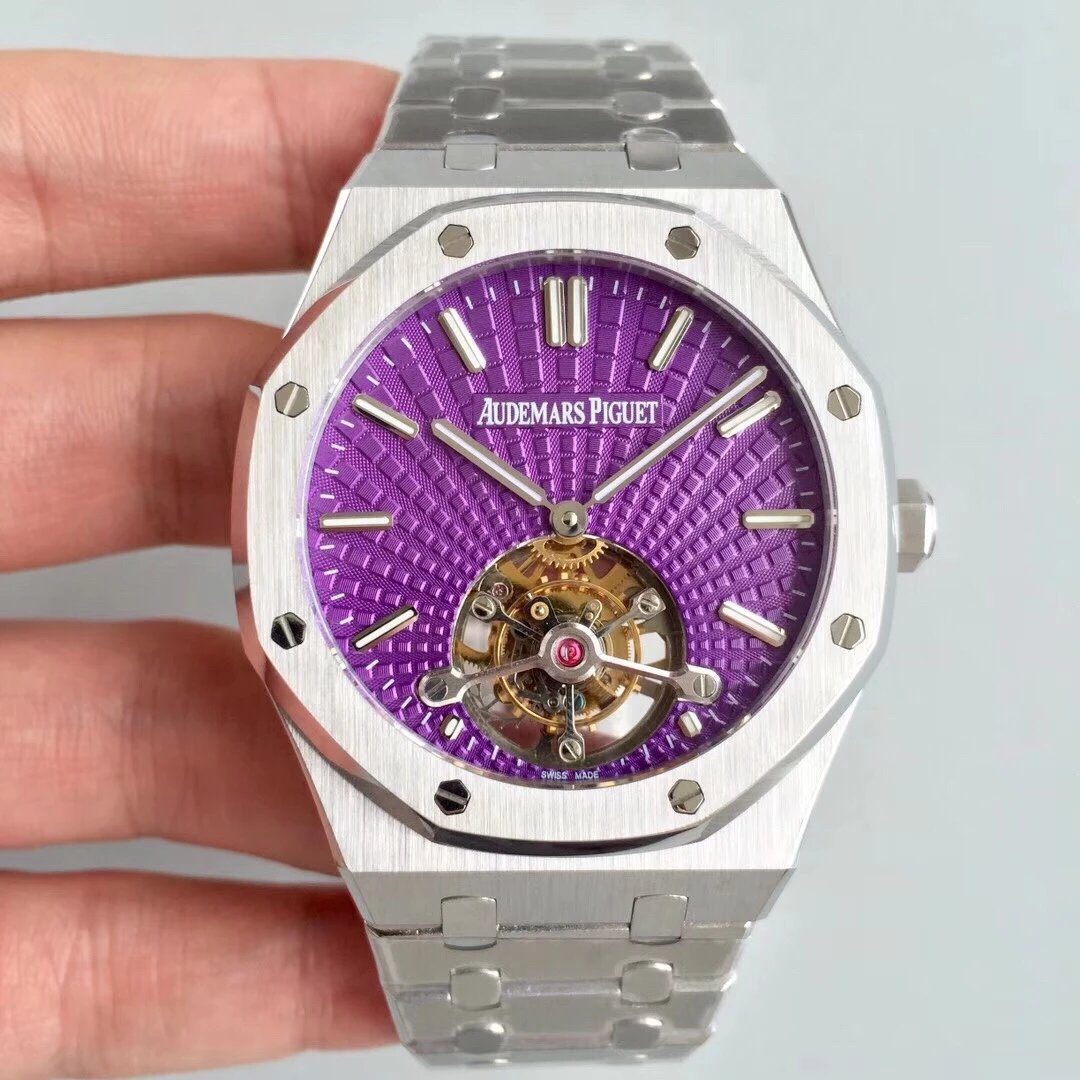 最新力作.AP【 愛彼 陀飛輪 腕表】型號:26522OR.OO.120OR.01千變萬化的圖案,對比與色彩,探索全新途徑,心靈與眼眸共同領略的高級製錶傳奇。愛彼標誌性的“Tapisseris”格紋設計演變為光彩奪目的放射紋圖案,首次推出五枚全新陀飛輪腕表。搭配Cal.2924陀飛輪手動上鏈機芯,動力儲存為80小時,表殼直徑41mm厚度12.4毫米。