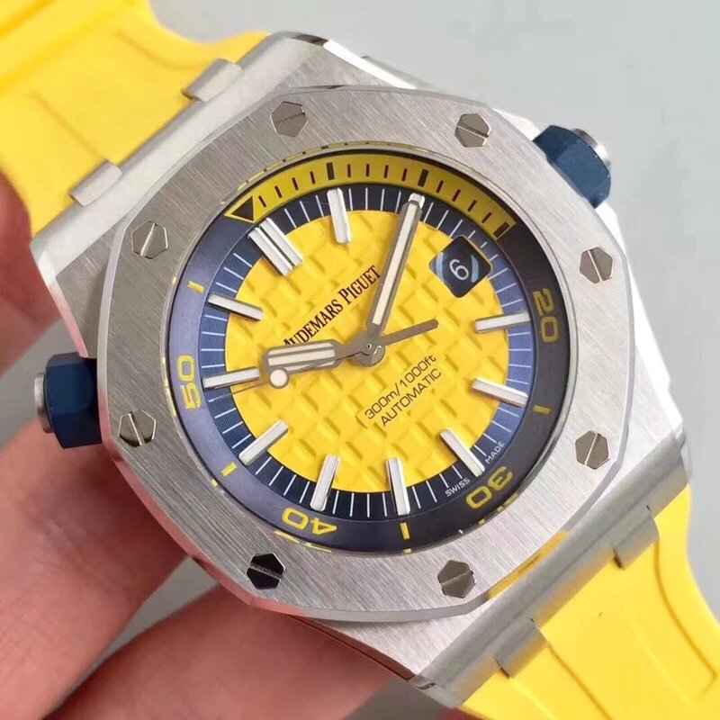 JF精品 AP 愛彼 15710彩色系列 皇家橡樹離岸型系列機械男表V8版本,背透3120機芯是革命性的升級,雙面藍寶石鏡面,橡膠包覆層螺絲鎖入式表冠,防磁裝置,42mm*13.8mm。性價比超高的愛彼神器!完美。