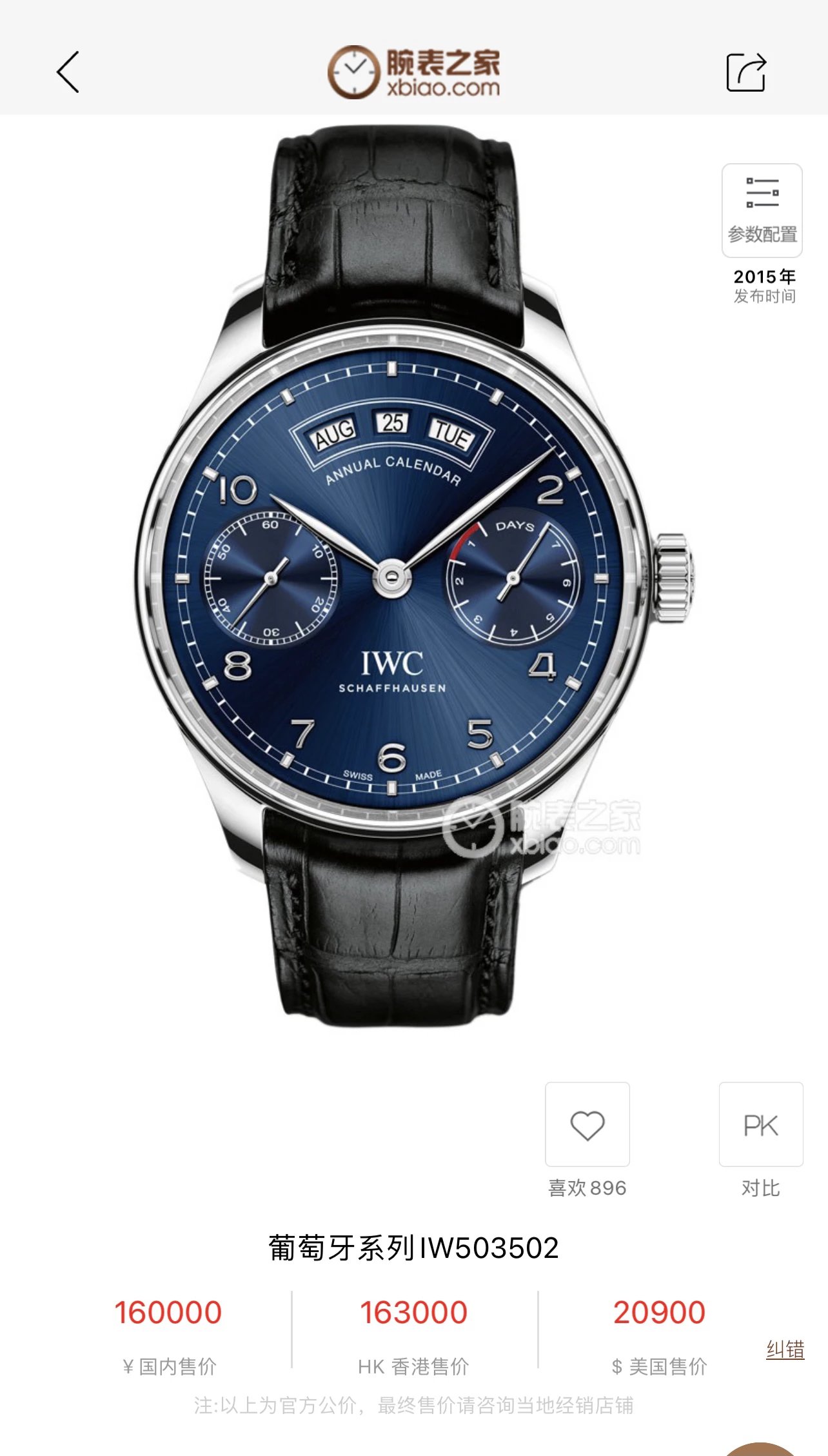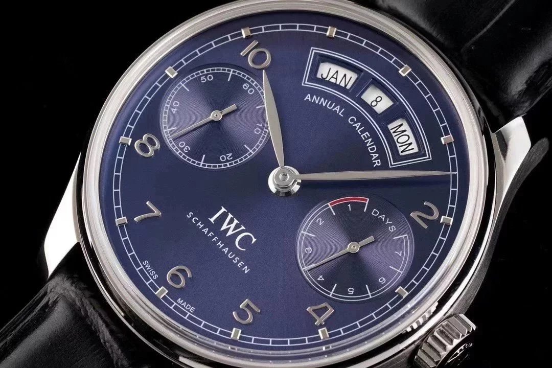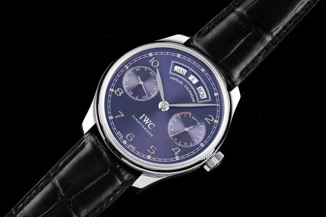 AZ廠萬國葡萄牙系列IW503502藍盤萬年曆皮帶男士機械手表