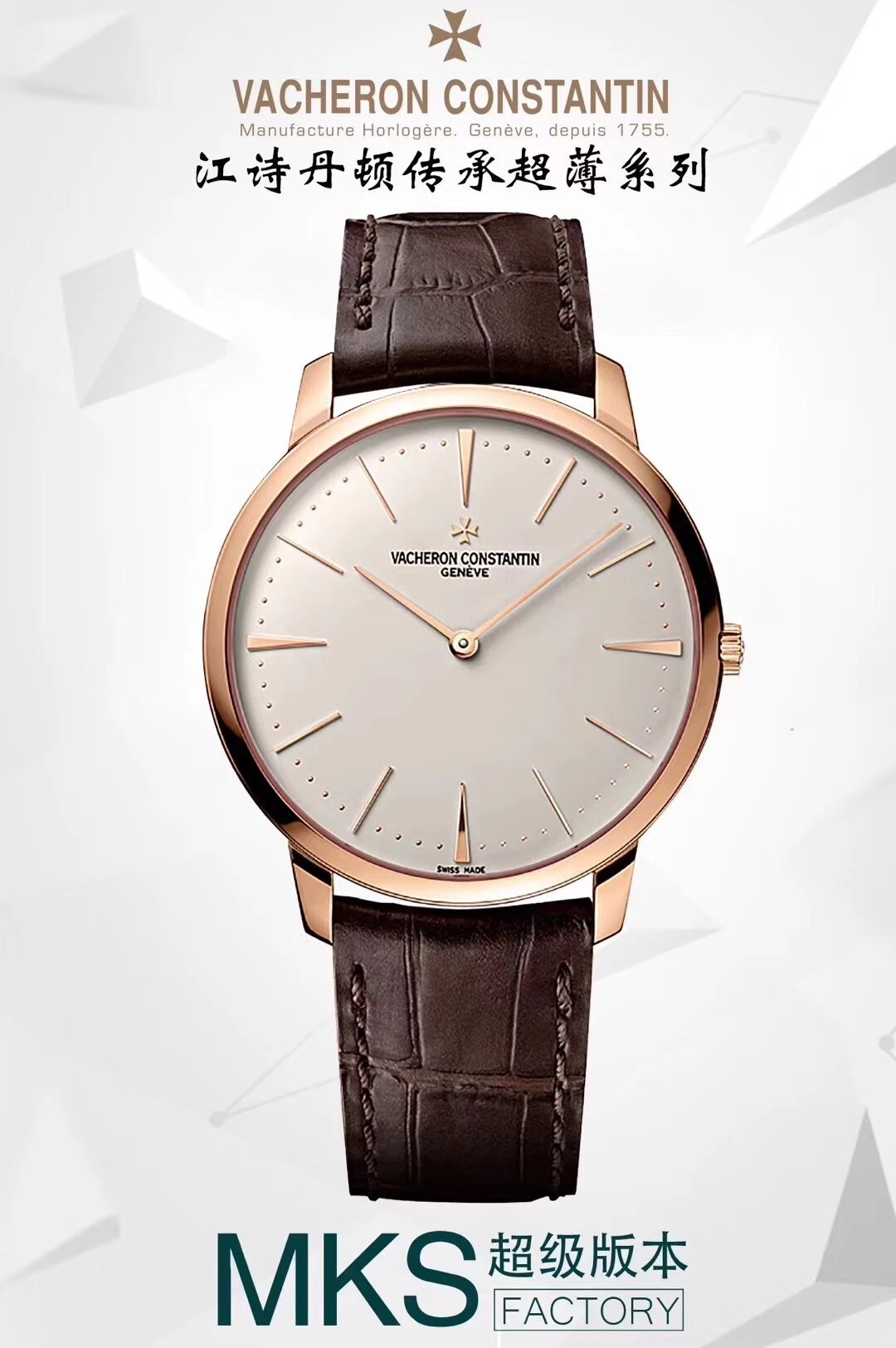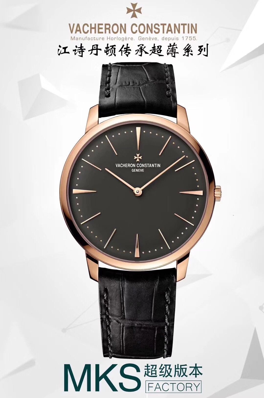 • MKS廠江詩丹頓傳承系列81180/000R-9162玫瑰金黑盤機械超薄男表