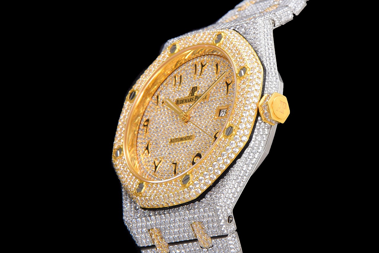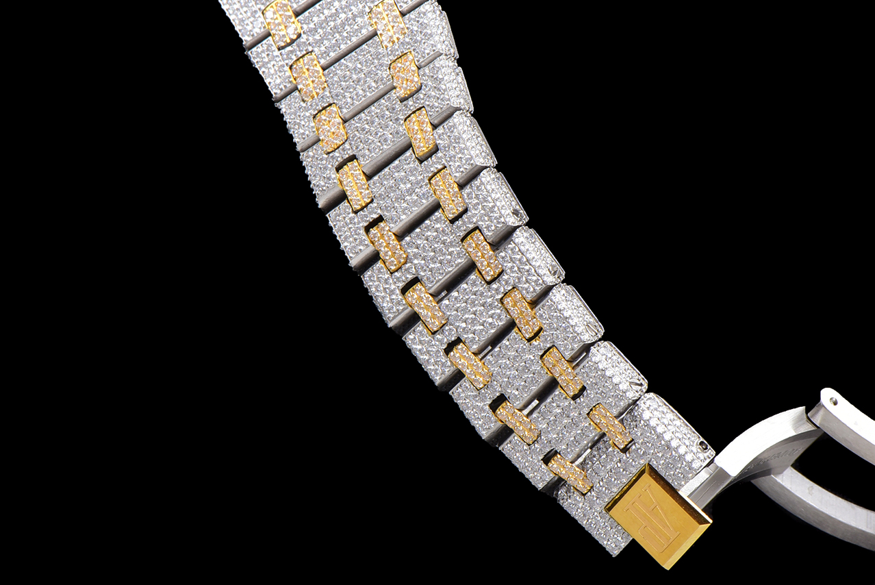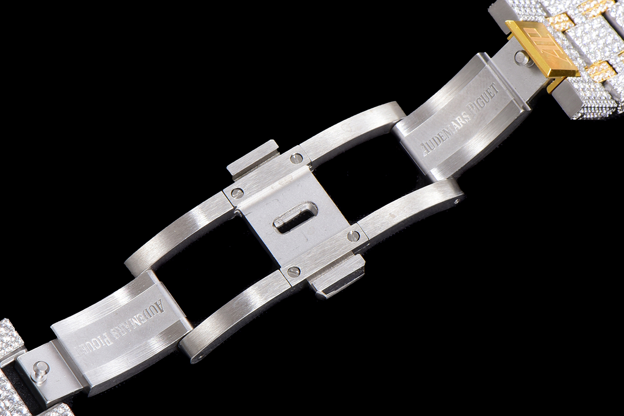 歷經重重工藝,終於大功告成!整表密集鑲滿最頂級的施華洛世奇美鉆,包括鋼帶側邊也是滿鑲鉆,嘗試了無數次的加工工藝,追求奢華至極的無敵質感!不惜一切的成本,終於打造出目前最豪華的15400滿天星。秒殺其它現有版本的細節和做工!