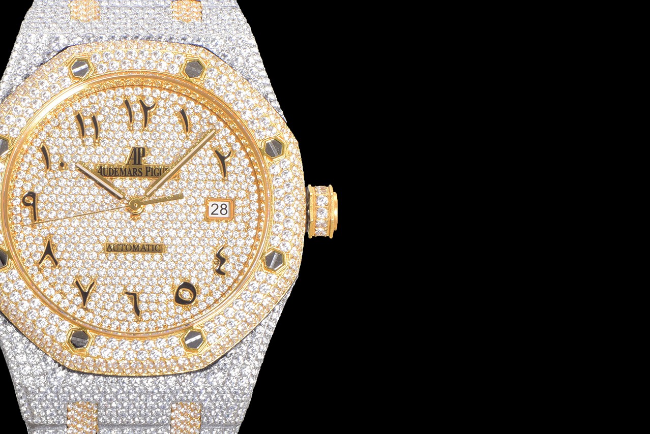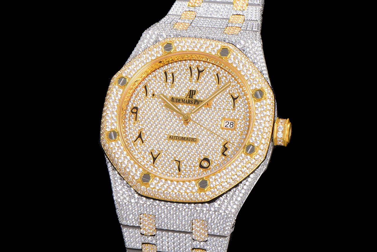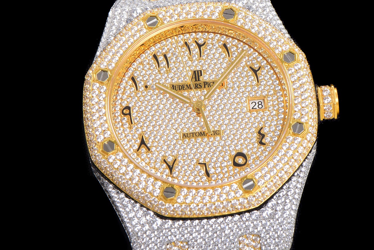 歷經重重工藝,終於大功告成!整表密集鑲滿最頂級的施華洛世奇美鉆,包括鋼帶側邊也是滿鑲鉆,嘗試了無數次的加工工藝,追求奢華至極的無敵質感!不惜一切的成本,終於打造出目前最豪華的15400滿天星。秒殺其它現有版本的細節和做工!