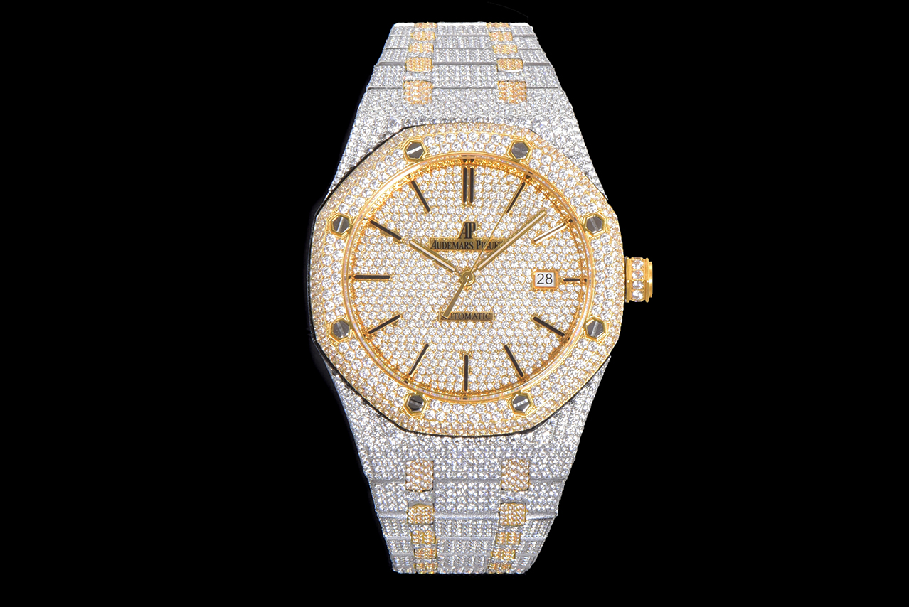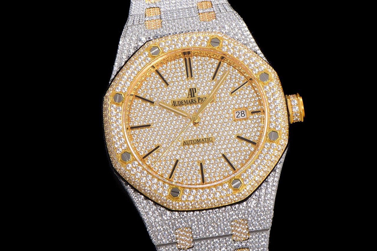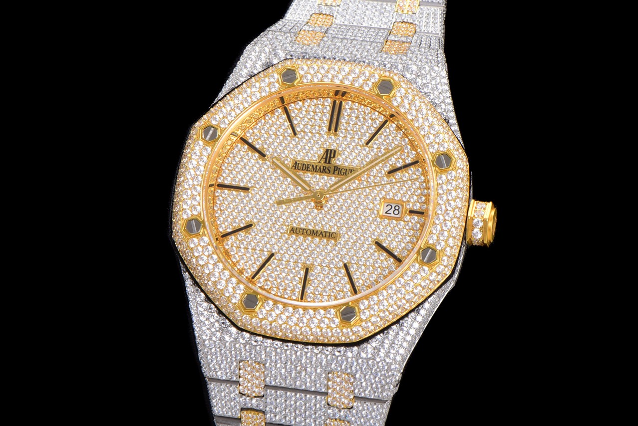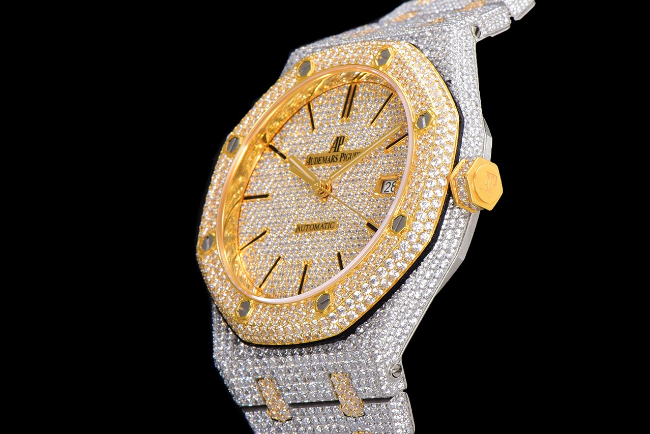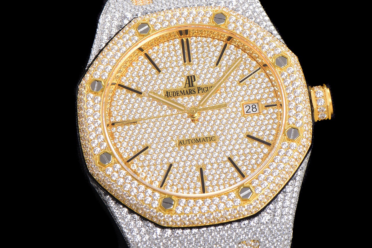 歷經重重工藝,終於大功告成!整表密集鑲滿最頂級的施華洛世奇美鉆,包括鋼帶側邊也是滿鑲鉆,嘗試了無數次的加工工藝,追求奢華至極的無敵質感!不惜一切的成本,終於打造出目前最豪華的15400滿天星。秒殺其它現有版本的細節和做工!