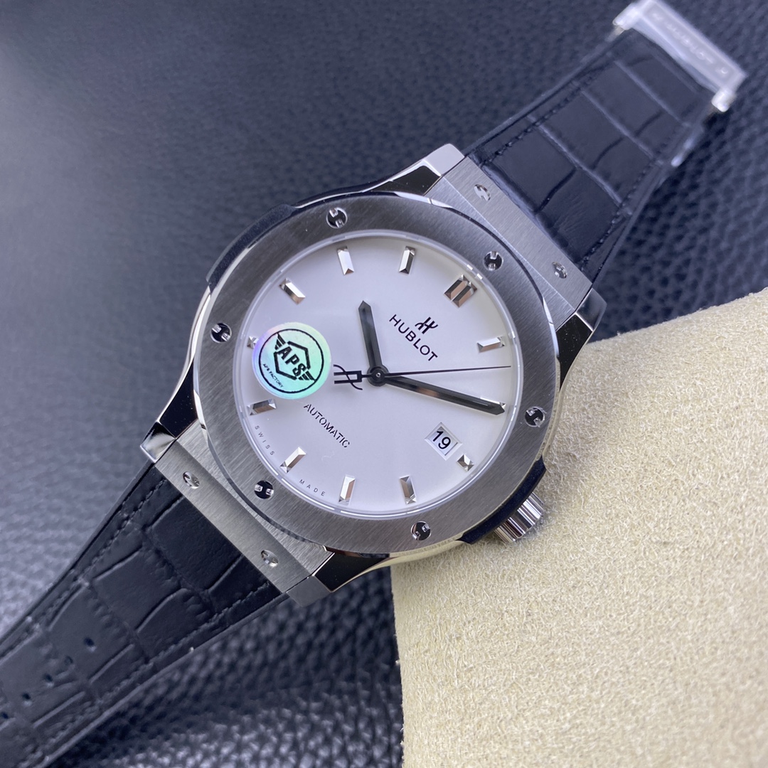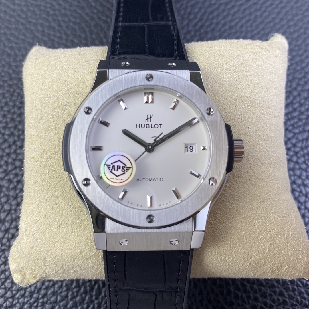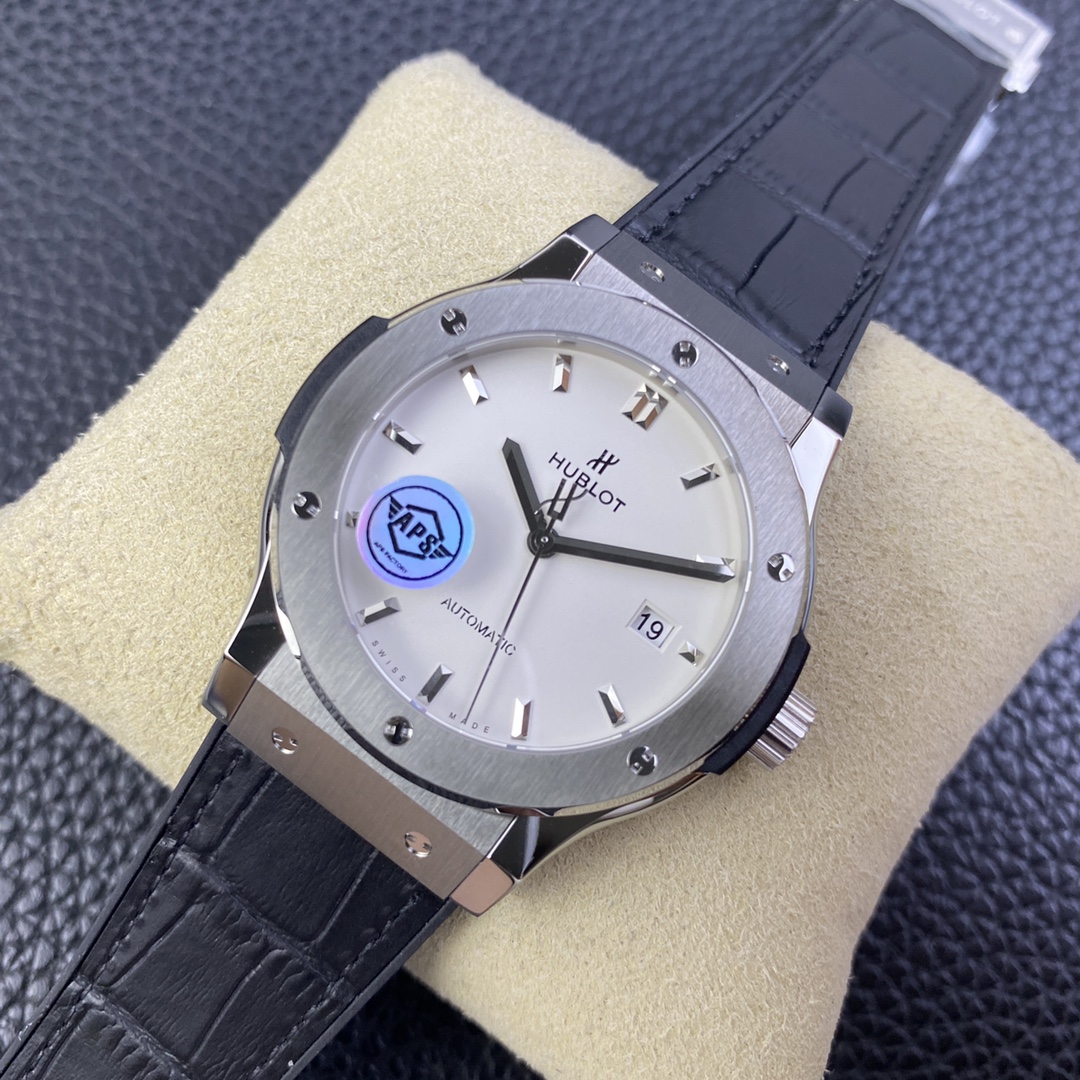 APS恒寶宇舶經典融合42mm,原版開模,複刻新高度1 ⃣, 錶殼APS採用原裝一致的正面拉絲工藝,側面拋光打磨,使整錶體現正品完美的質感,雙面防反光藍寶石水晶鏡面2 ⃣, 錶帶採用正面鱷魚紋背面天然橡膠帶,使佩戴者既有防汗的效果又有鱷魚皮的美觀3 ⃣, 字面顏色在經過十幾次反復調試,最終確認與原版相似度98%,最難攻克的藍色實現0色差,字面印刷採用立體3D印刷,與原裝工藝一致,完美複製GEN4 ⃣, 機芯採用海鷗2892三級打磨,精磨日內瓦紋,與原裝HB1110機芯完美互換,視覺上與原裝一摸一樣,外觀相似度高達99%APS歷經一年多時間反復修改,反復調試最終確認樣品,從而達到所有零件均可與原裝互換