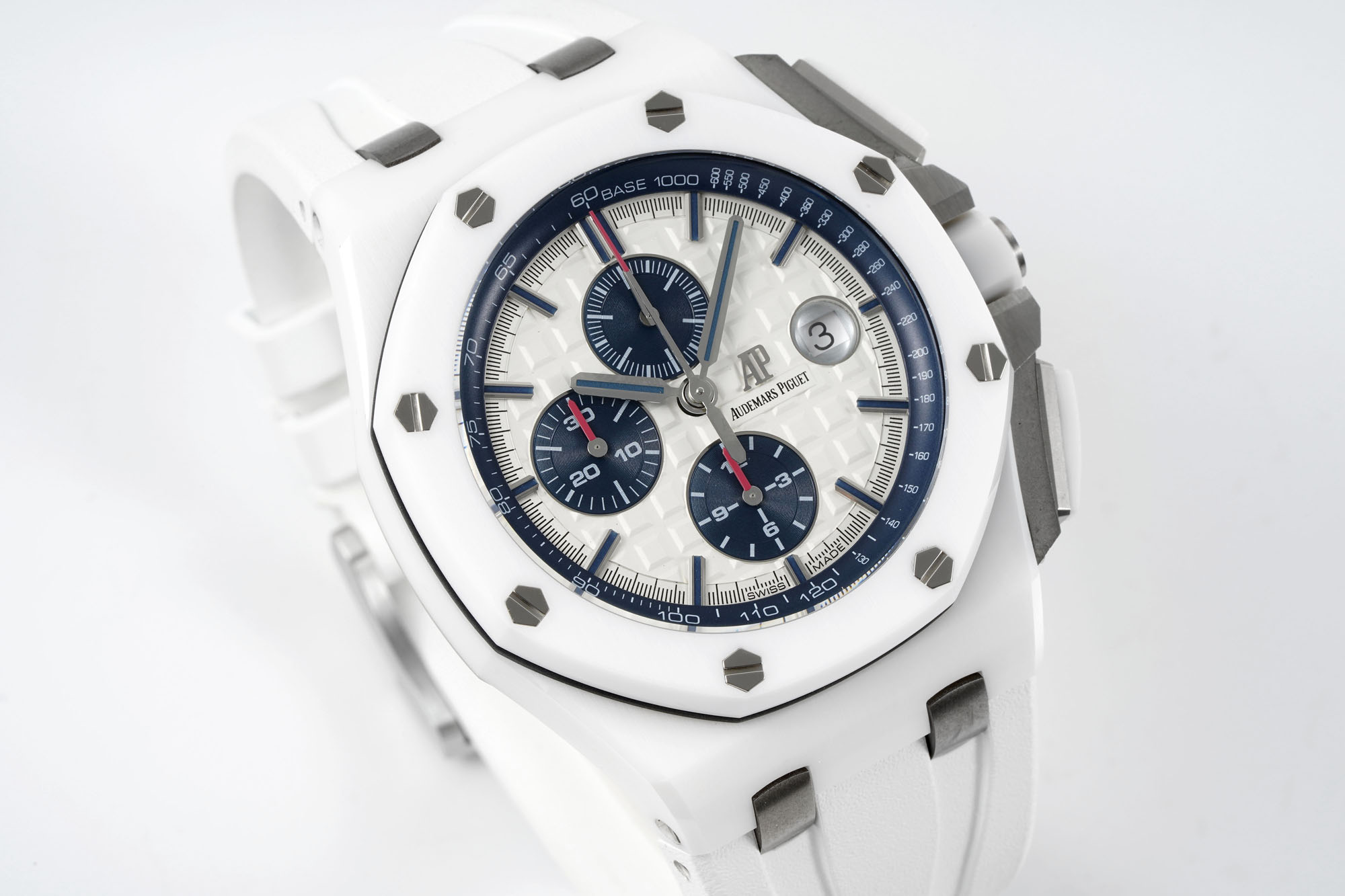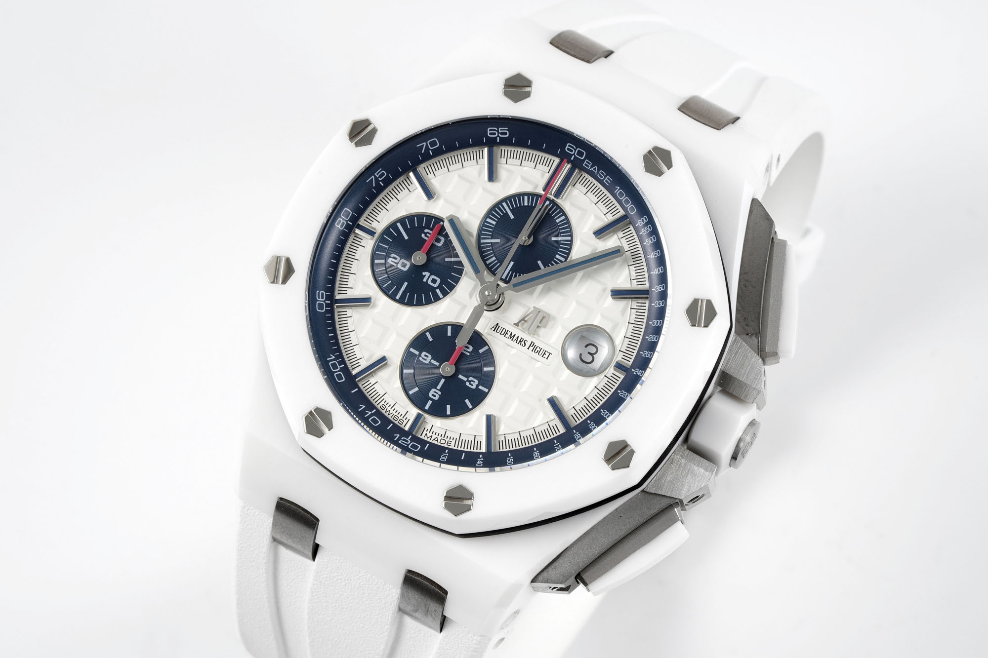 APS新品26400接受預訂,少量到貨[太陽][太陽][太陽]【錶鏡】錶鏡選用進口藍寶石玻璃鏡面,鍍防眩目後視鏡藍膜,通過太陽從每一個角度觀察,鏡面玻璃都十分具備藝術美。 【圈口】圈口是與原裝一致的金屬拉絲紋理,圈口的六角螺絲跟錶框處在同一平面,沒有突顯或凹陷,能做到這一實際效果對模具精密度規定十分高! 圈口鐳射切割十分整平,光澤度十足。 【錶盤】錶盤以經典灰黑色格子圖案為背景色,一個個突顯的方格十分具備層次感,盤面字體樣式白平衡高,看不出來缺陷。 三個小錶盤以白色的尺規突顯於灰黑色錶殼以上,在其中2個小錶盤的紅色錶針尤其精彩紛呈醒目。 十二點鐘方位的是小秒盤,三點鐘方位設立一個圓形日曆表視窗、多方面凹透鏡的裝潢,TPE變大實際效果與真品一致,而且含有表層的鍍膜,做到變大清除數據的實際效果; 日曆表字體樣式同步正版。 六點鐘方位和九點鐘方位的也是計時錶盤,全盤的全部時標正中間都用進口發光原材料填充,發光實際效果同原裝一致。 錶針頂部選用紅色裝點,別的二根錶針的樣子十分整齊無毛刺。 【冠】錶冠採用六邊形陶瓷材質,頂端採用拉絲打磨科技,在複刻手錶冠左右分別是操縱計時的剛開始與中止和計時歸零的將頭,將頭十分突顯,看起來整錶更為霸氣側漏。 鈦金屬透底後蓋,打磨拋光的十分精美,中間是一塊藍寶石玻璃鏡面玻璃,與後蓋邊沿切合極致,十分耐磨損清楚。 後蓋字體樣式為全新加工工藝手工雕刻而成,十分精美細緻; 螺釘一樣跟後蓋在同一平面圖。 【錶芯】錶芯在透底後蓋的襯托下更為霸氣側漏,灰黑色的全自動陀很有層次感,再加上錶芯表面的鑲嵌寶石。 7750改3126十二比特小秒機芯,與正版有一樣的穩定性驅動力。