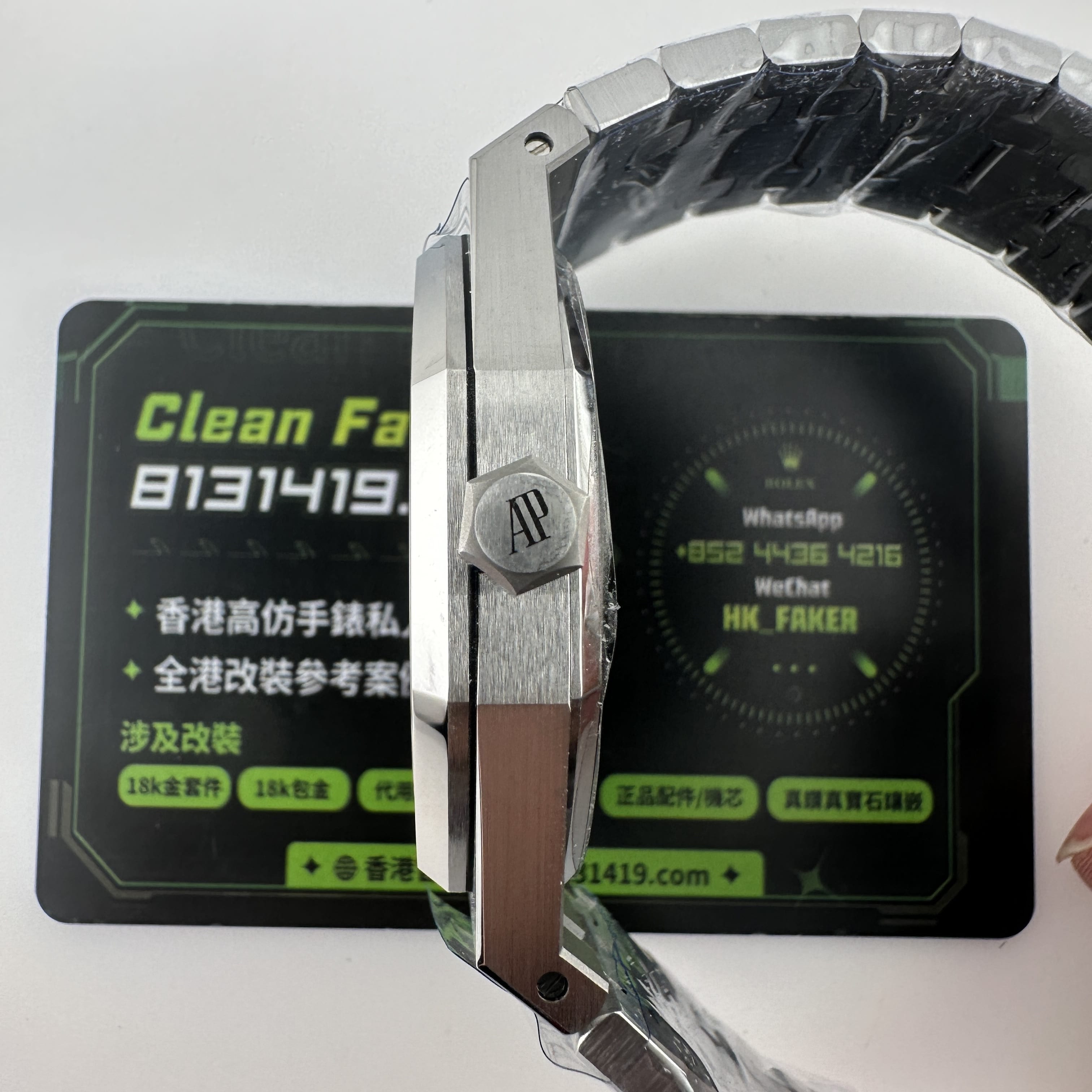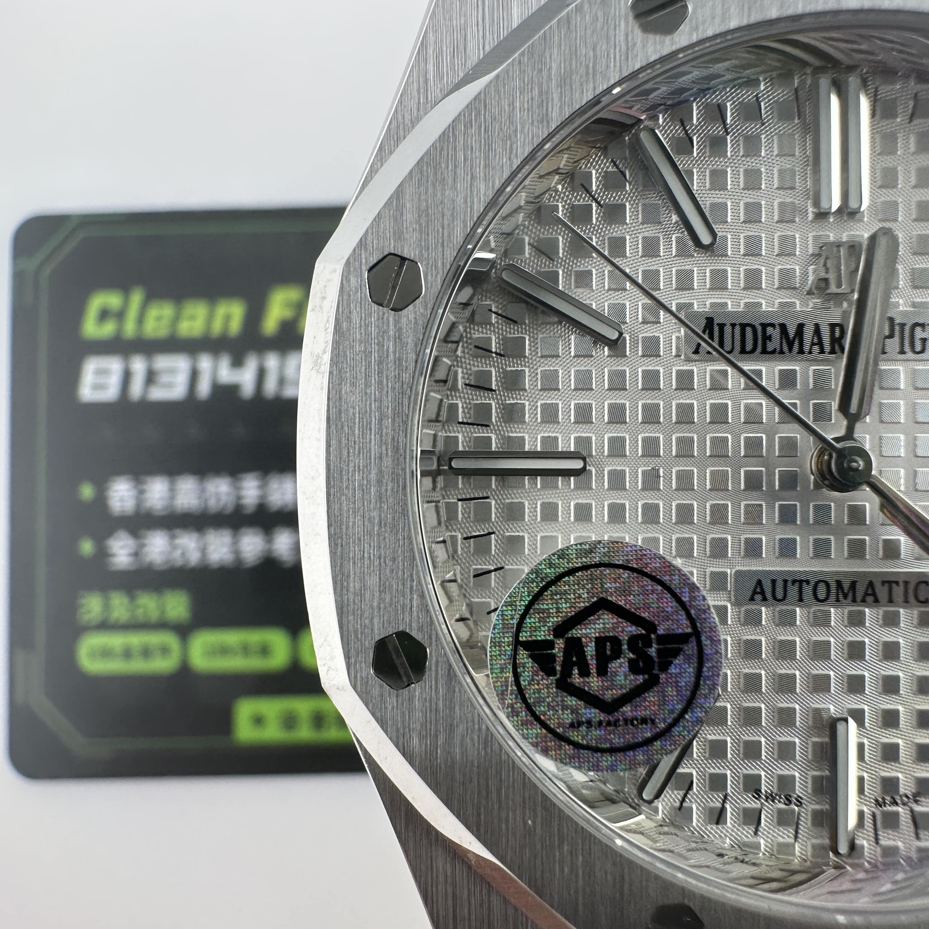 APS廠推出的AP/愛彼皇家橡樹系列15400銀白面錶盤,APS廠在很早之前就有推出過該錶款,目前APS廠15400已經做到了V4終極版,意味著這一隻AP復刻錶達到了廠貨最頂配的基礎,至於改裝升級我們首選的廠家就是在機芯配置前提是一體機芯構造,而不是夾板機芯,其次大廠出品的錶殼以及錶帶錶扣部分都是經過精度打磨,外觀細節處理完善用於改裝絕對是為後期提升像真度.再者APS廠對比ZF廠包括其他廠家出品的同款腕錶,均沒有APS廠做到的好.