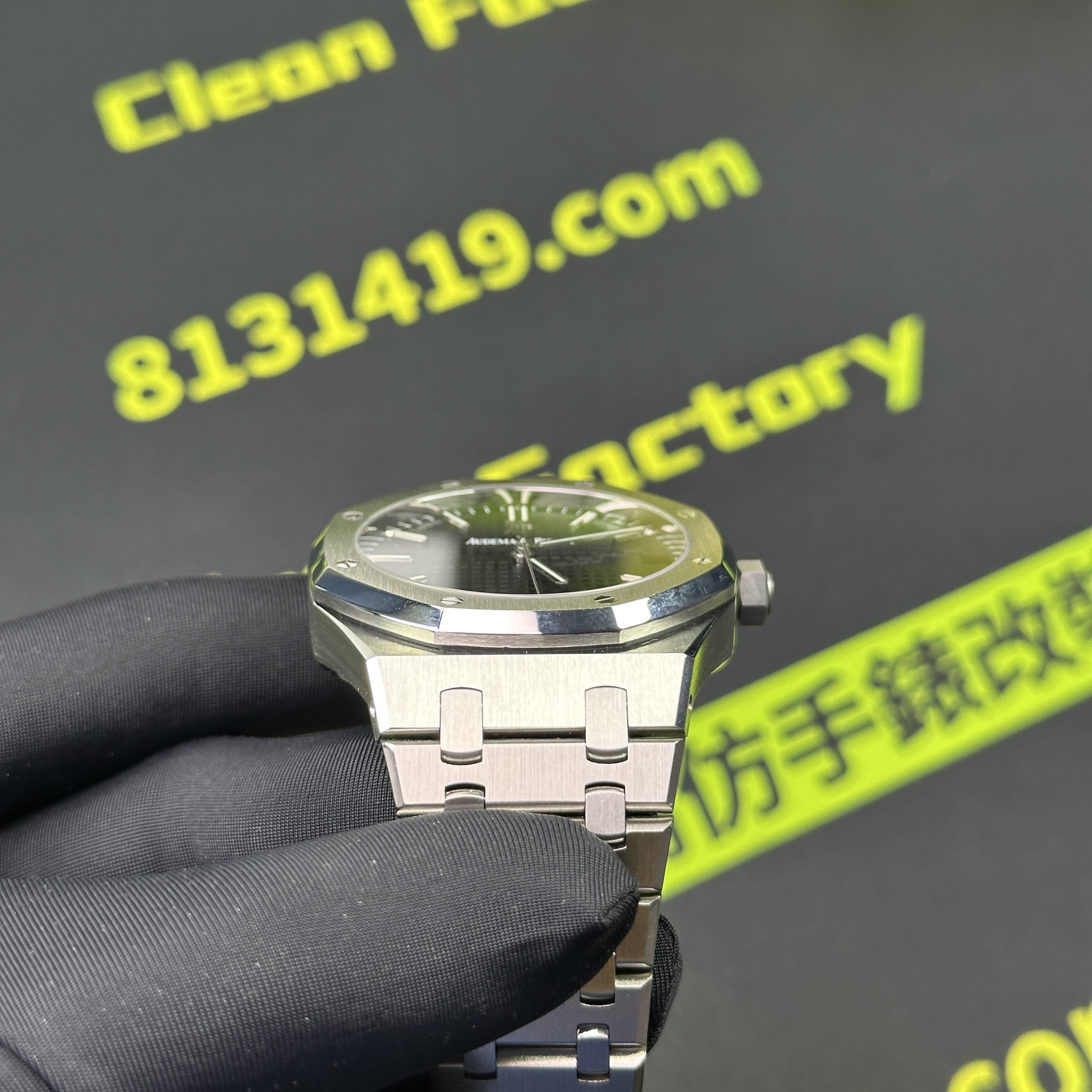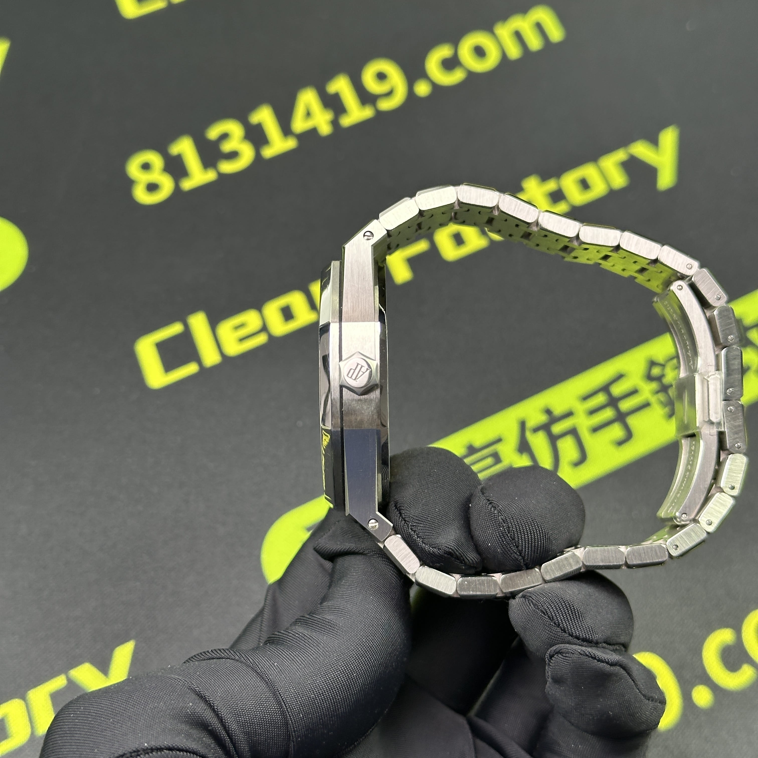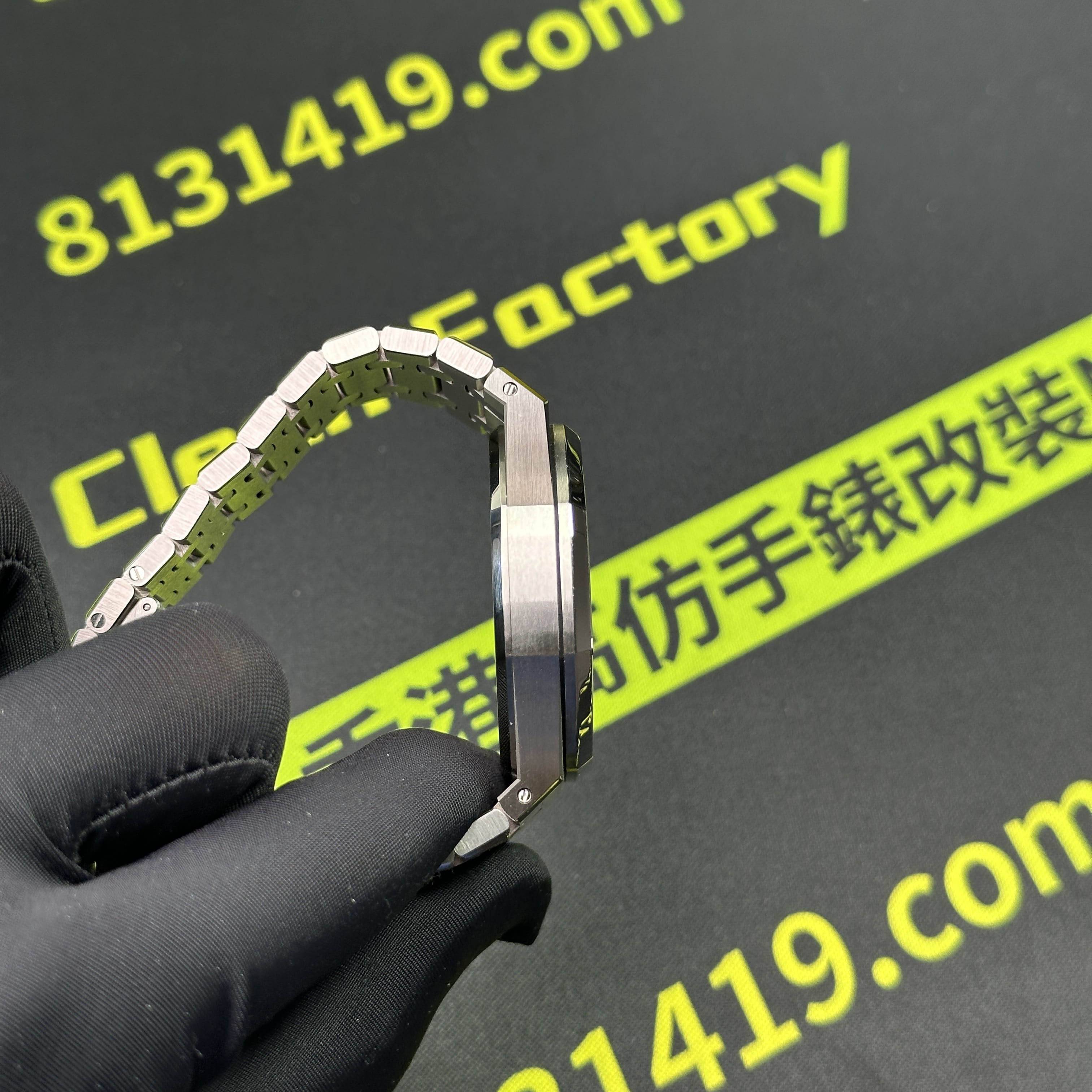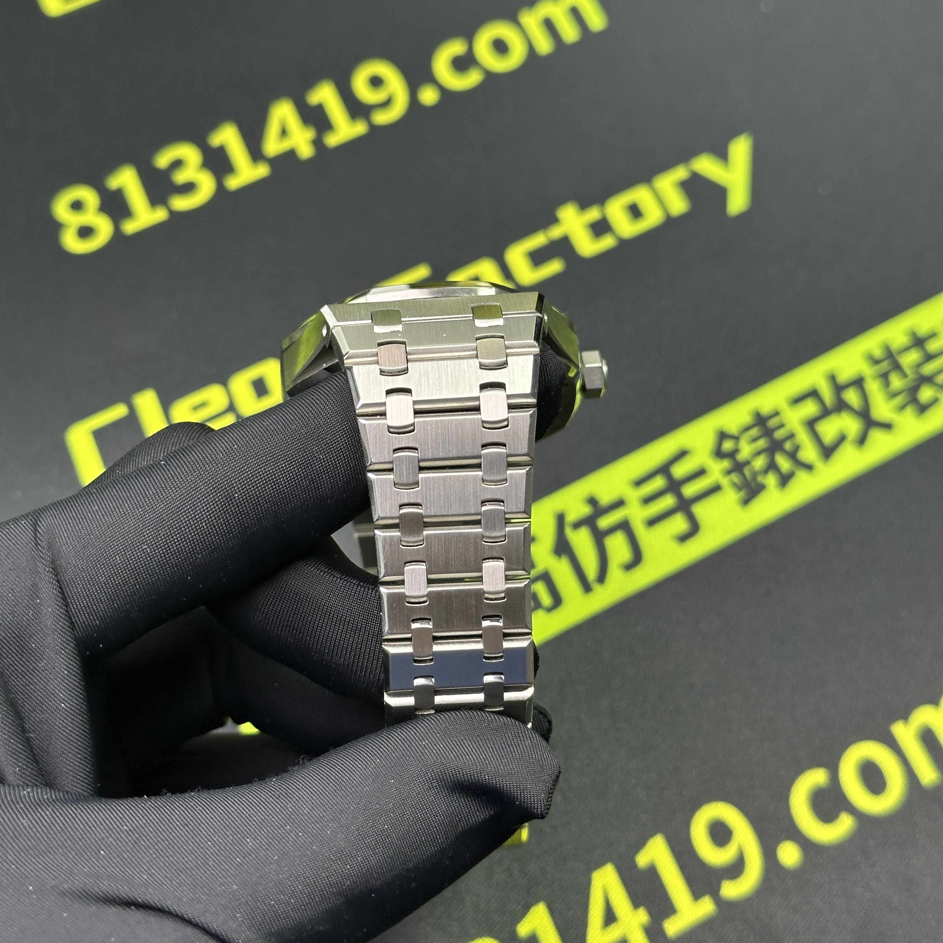 其次是涉及到日曆部分,使用代用日曆圈字面整體會更加工整,雙數以及單數部分的居中效果也會更極致.高仿AP15500滿配改裝使用了代用指針和實心中軸,指針構造無毛邊毛刺,實心中軸同步原版一致.再者是外觀根據錶友的需求進行打磨升級,讓錶帶和錶殼部分在佩戴過程中不會出現割手的現象,實現絲滑流暢的佩戴手感.APS廠15500無卡度機芯版本還升級DEEP高透玻璃鏡片,清晰度更加.感興趣的錶友可以咨詢相關客服,了解更多改裝案例