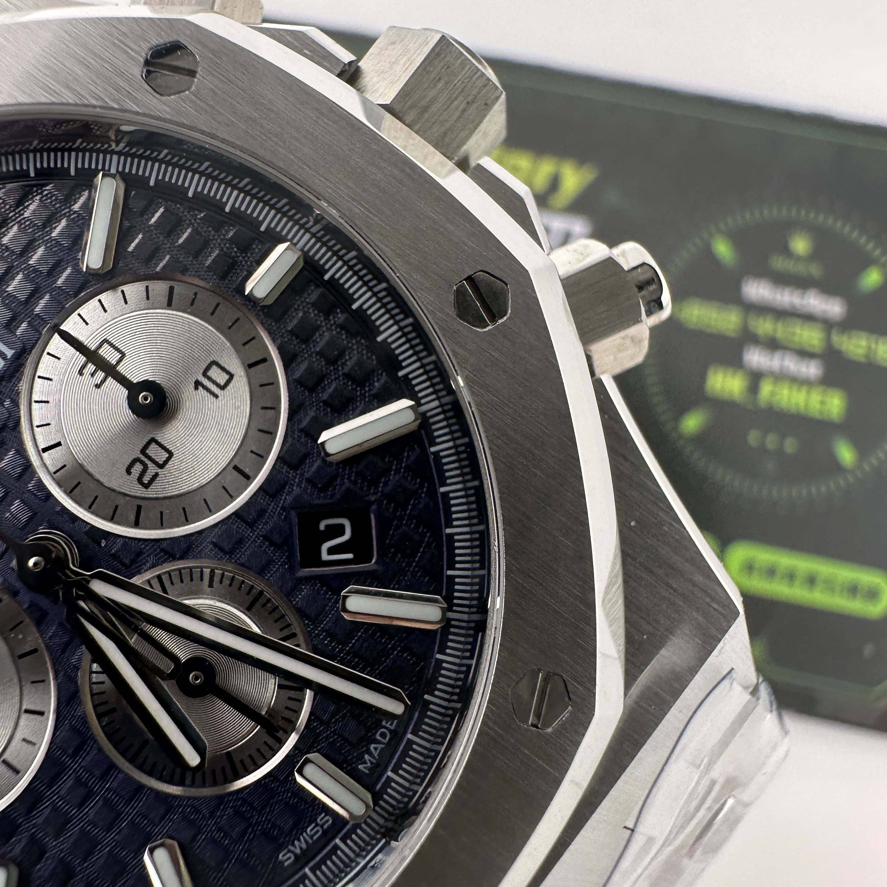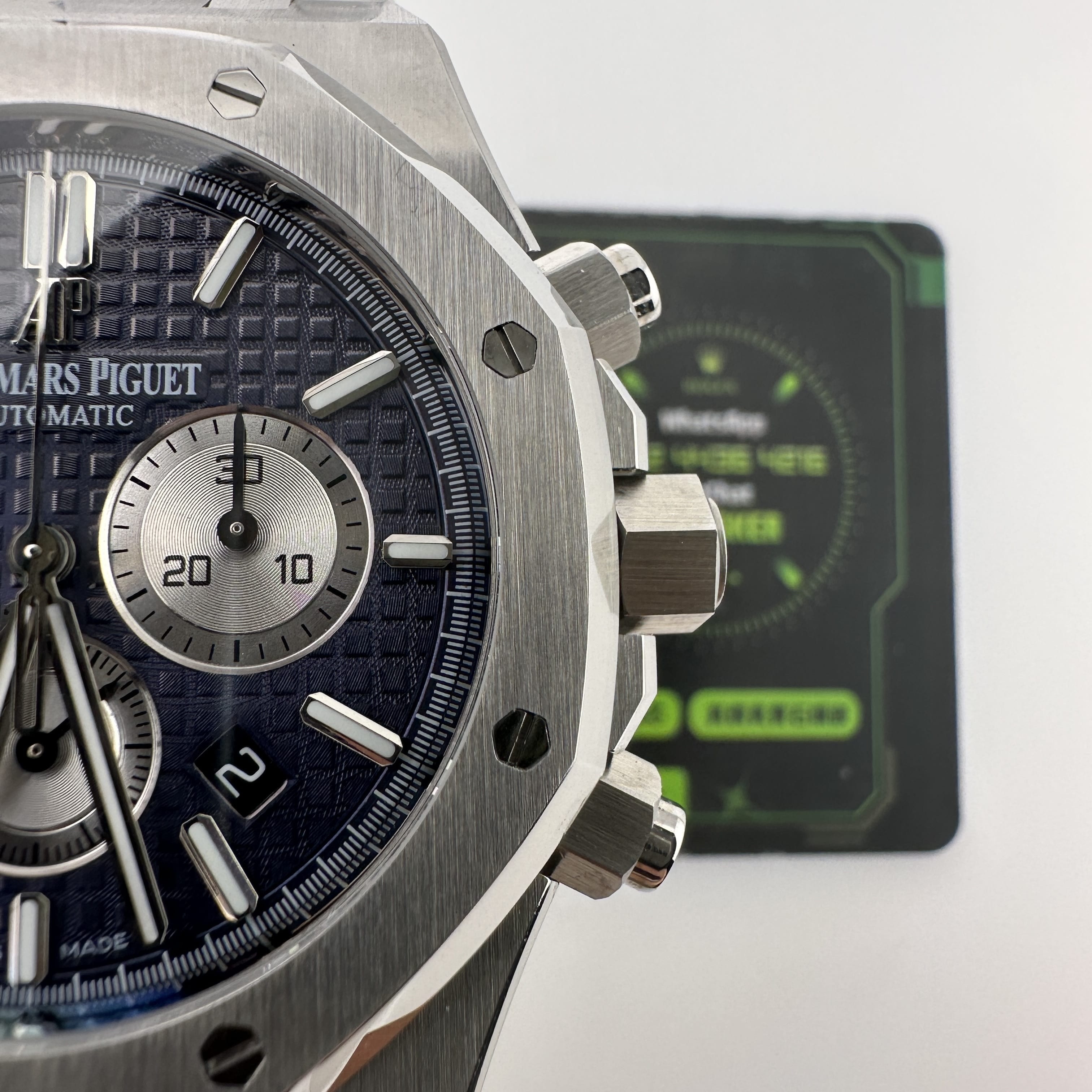 APW廠推出的AP愛彼皇家橡樹系列26331ST黑盤款式,整錶尺寸41mm,錶殼復原程度除了常規比例之外,厚薄度部分APW廠做到了同步原版一樣的薄度,是極其考驗復刻工藝.除此之外也是銜接到了機芯配置方面,錶殼打造,配置的機芯缺一不可,造就了對版的厚薄度11mm.使用到316L精鋼打造1:1規格復原!26331熊貓款式的簡稱是通過盤面內部設有3個銀色小錶盤,分別代表了計時功能,秒針顯示,而黑色的錶盤搭配銀色的計時小圈,形成鮮明的對比.