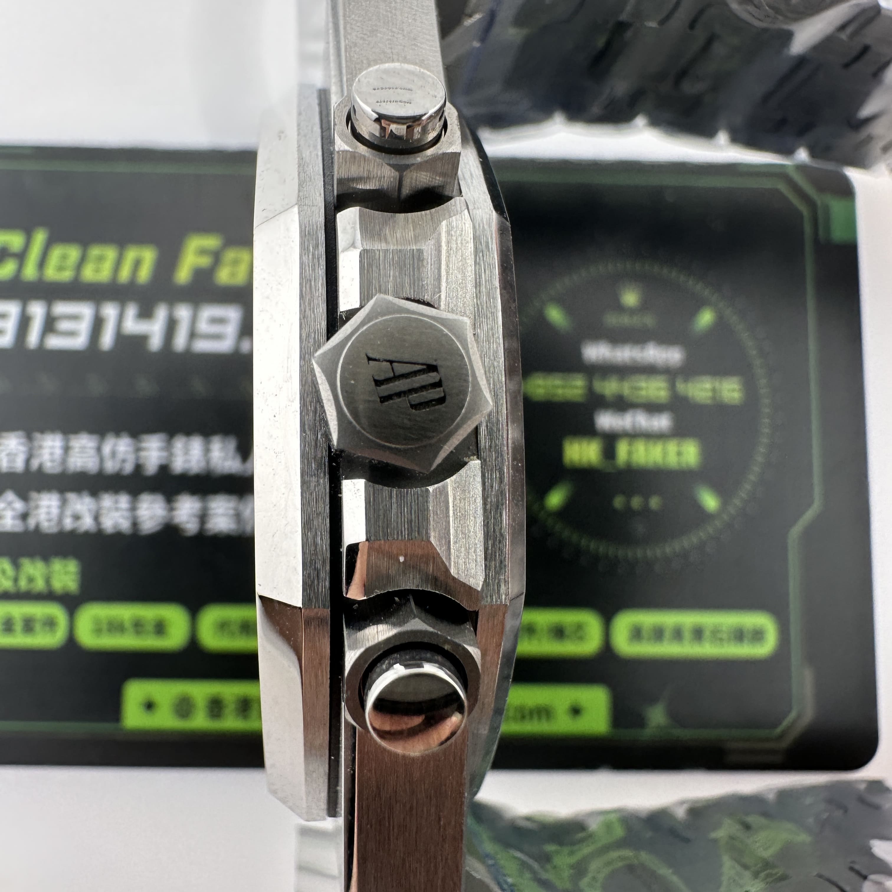 通過實拍可以了解到APW廠AP26331三個黑色"眼睛"的貼合度比較密集,這是符合原版的復刻需求.此前大部分廠家推出的26331三個眼睛間隔距離比較分開,對比原版是存在一眼假差異,同時也間接性表達出機芯不對版的原因.此次APW廠推出的高仿愛彼26331系列腕錶是獨家搭載了一體機芯,原版Cal.2385機芯,而APW廠也是搭載了1:1復刻機芯,並不是甲板機芯.市面上搭載的機芯不是7750機芯改2385,就是訂製版本的2385機芯,雖然是密底設計,但一體機芯的穩定性會更好.