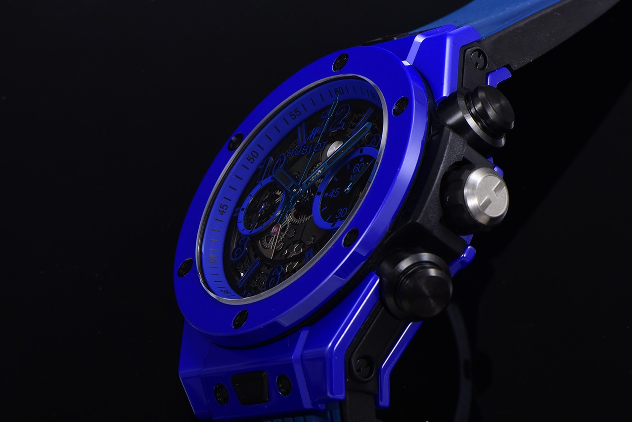 BBF全新突破彩色陶瓷問世HUBLOT宇舶錶BIG BANG Unico大爆炸系列彩色陶瓷腕表陶瓷工藝史無前例的重大突破砸重金耗時四年,得以突破傳統的陶瓷材料。 全新彩色陶瓷採用精湛的科技,將高壓力和高熱相融合,無需燒制顏料就能鍛造陶瓷。 這一全新的陶瓷材質擁有高密度的特性,在此之前,行業尚未在陶瓷材質的工藝科技和美學方面獲得如此突破。 BBF對每一道工序均精益求精,精心打造該特殊陶瓷錶殼的每一個部件。 BBF為掌握此項科技歷經四年時間潜心研發,不遺餘力地在對資料的探索路上砥礪前行。 現時這項發明的科技為BBF所獨有標配定制恒寶專屬UNICO HUB 1280自動飛返計時機芯3字比特鏤空行事曆環,3字盤60分鐘計時, (注:市面7750機芯均只能計時30分鐘)8字比特水准離合9字比特小秒輪藍寶石水晶錶鏡橡膠錶帶搭配陶瓷折疊錶扣七彩紋指針質感無可挑剔45mm全部功能100%完美實現天花板級別歡迎玩家品鑒(BBF出品必屬精品)