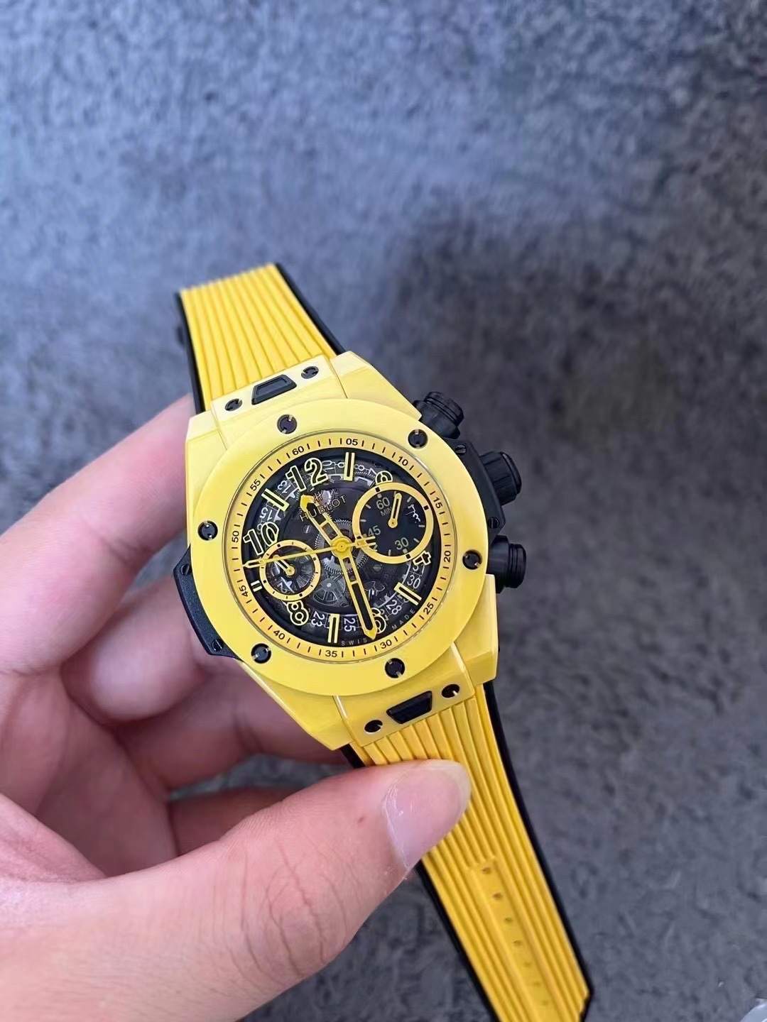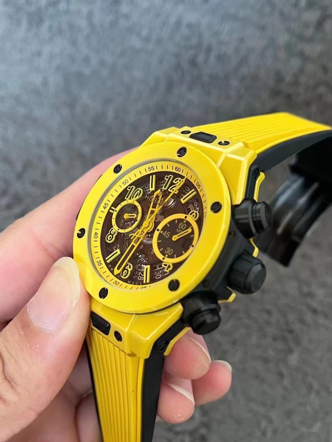 愛了少量幾個下手快有BBF全新突破彩色陶瓷問世HUBLOT宇舶錶BIG BANG Unico大爆炸系列彩色陶瓷腕表陶瓷工藝史無前例的重大突破砸重金耗時四年,得以突破傳統的陶瓷材料。 全新彩色陶瓷採用精湛的科技,將高壓力和高熱相融合,無需燒制顏料就能鍛造陶瓷。 這一全新的陶瓷材質擁有高密度的特性,在此之前,行業尚未在陶瓷材質的工藝科技和美學方面獲得如此突破。 BBF對每一道工序均精益求精,精心打造該特殊陶瓷錶殼的每一個部件。 BBF為掌握此項科技歷經四年時間潜心研發,不遺餘力地在對資料的探索路上砥礪前行。 現時這項發明的科技為BBF所獨有標配定制恒寶專屬UNICO HUB 1280自動飛返計時機芯3字比特鏤空行事曆環,3字盤60分鐘計時, (注:市面7750機芯均只能計時30分鐘)8字比特水准離合9字比特小秒輪藍寶石水晶錶鏡橡膠錶帶搭配陶瓷折疊錶扣七彩紋指針質感無可挑剔45mm全部功能100%完美實現天花板級別歡迎玩家品鑒(BBF出品必屬精品)