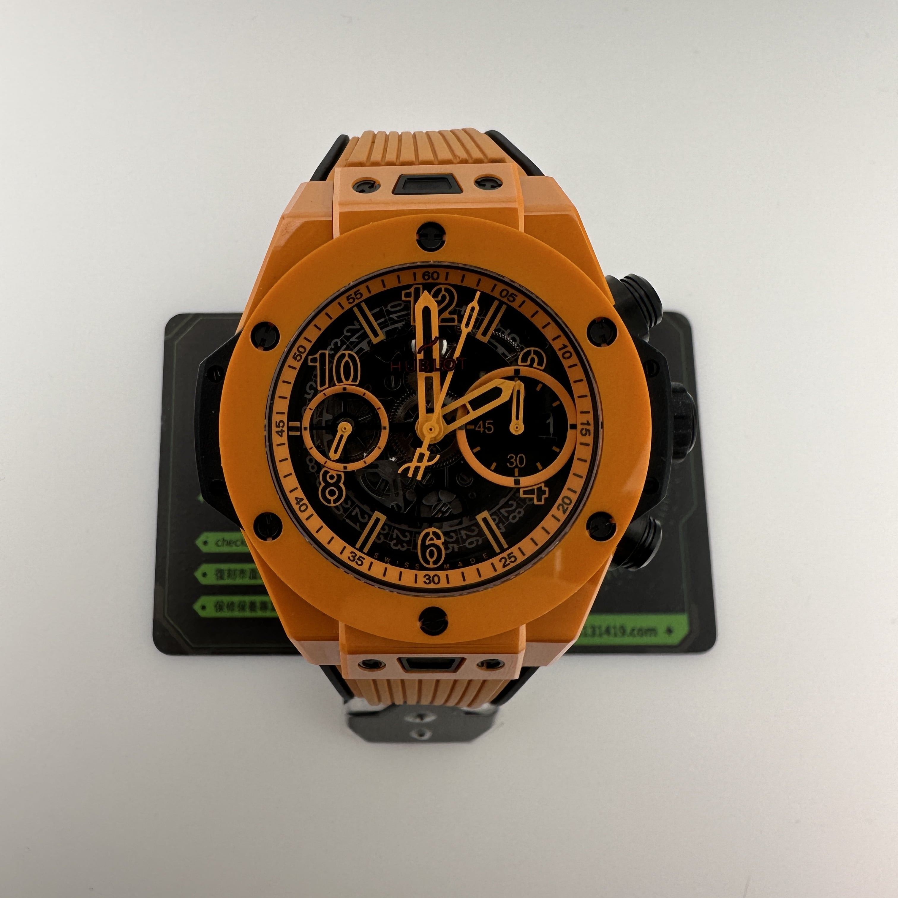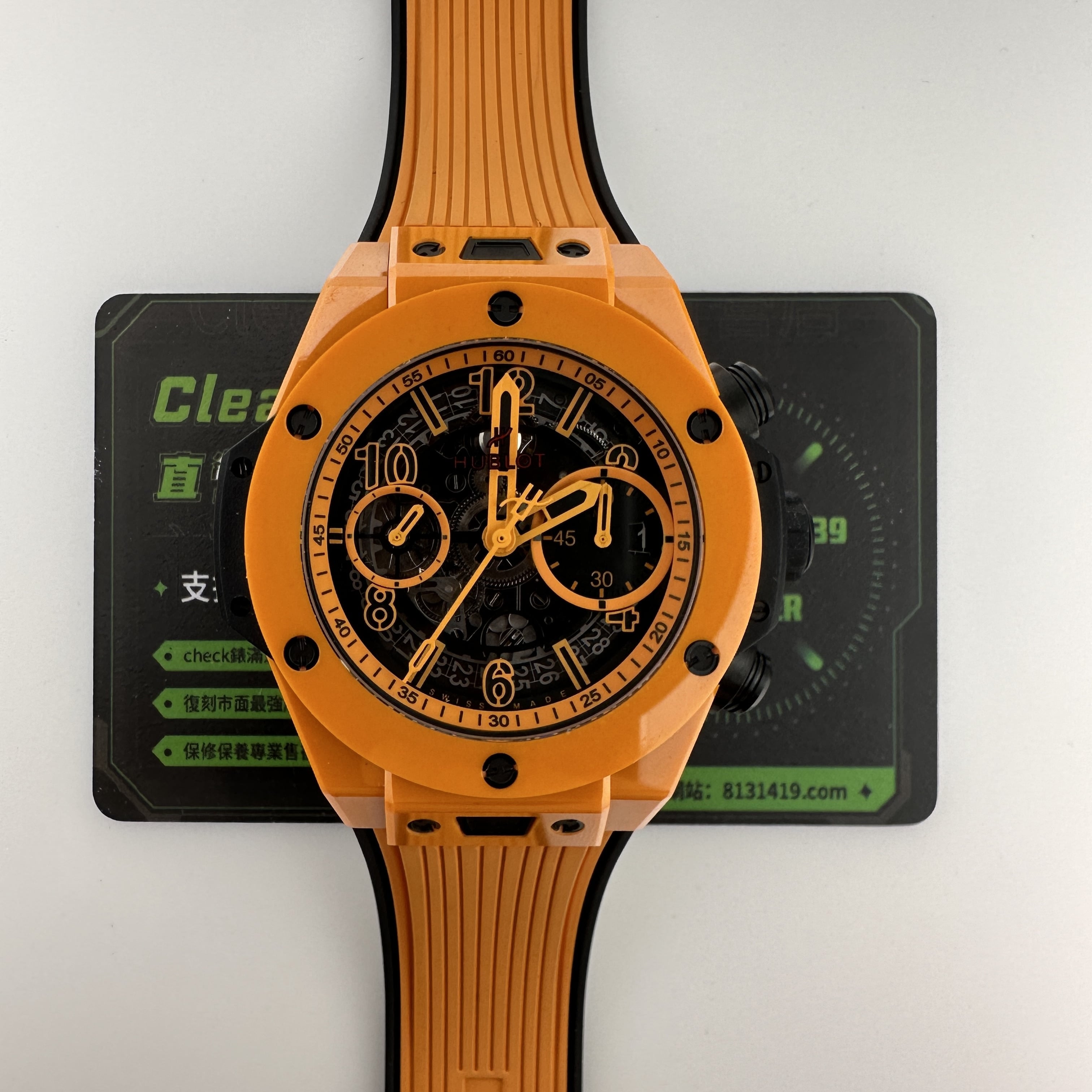 BBF廠全新推出HUBLOT2024年日內瓦錶展BIG BANG UNICO橙色陶瓷同款腕錶.為其註入蓬勃活力,色彩明艷的橙色陶瓷材質,採用獨特工藝精心打造而成,具備卓越的抗沖擊性及耐磨性.研發原創陶瓷色彩.針對BBF廠宇舶錶來說是項看似簡單實則復雜的挑戰,其中涉及的工作量不容小覷.在深入的研發過程中,BBF廠 HUBLOT不僅要確認化學配方,添加劑,比例,燒制等等方式以及溫度時間,而且還需選擇是否使用緞面或拋光等工藝.當然最重要的是同步考慮材質的抗沖擊性及耐磨性是否達到原版品質級別.這僅僅是BBF廠HUBLOT高仿研發全新陶瓷色彩的小部分工作流程,每個細節及步驟均需做到細致精確,以符合正版宇舶錶在陶瓷材質領域的高標准,也是市場上最為嚴苛的標准之一.