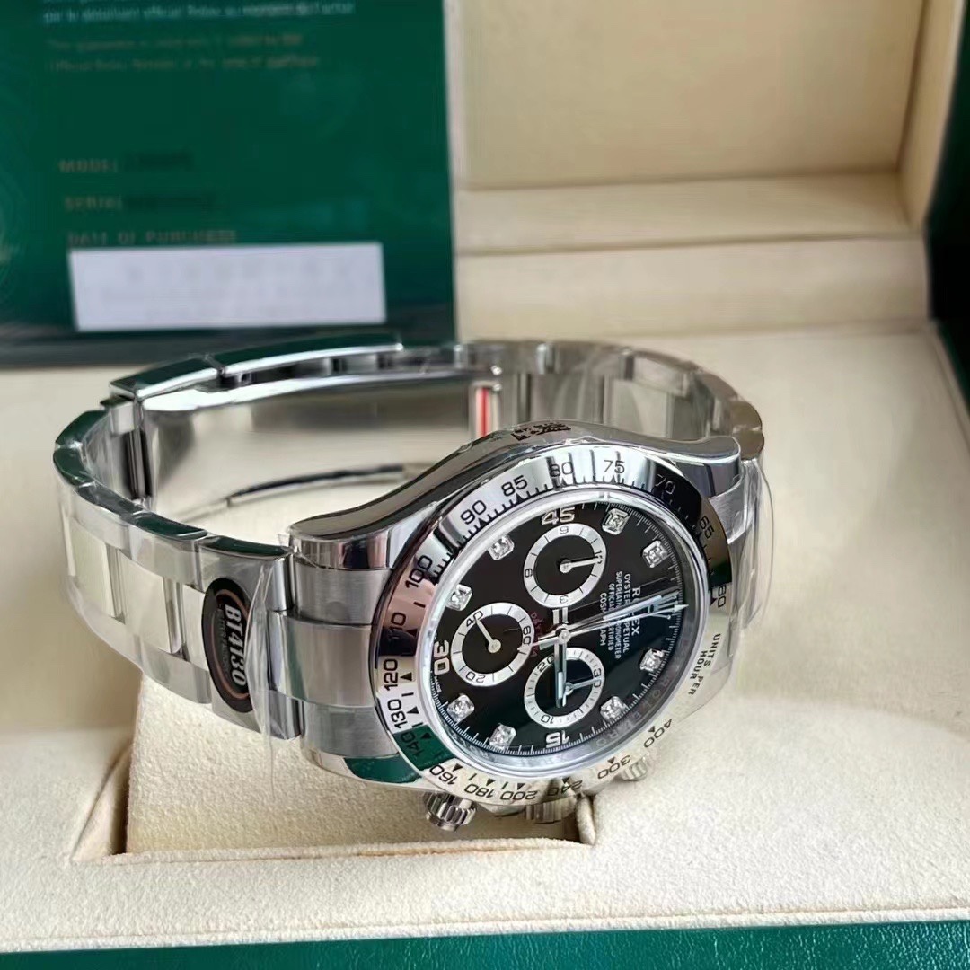 高仿手錶市面上一共停留了1年沒有出過這一隻白金地通拿m116509-0055,剛好BT廠官網再次登錄面世,讓各位錶友能夠的到更多頂級地通拿的參考選擇.本次BT廠地通拿使用的是904L精鋼材質,而原裝正品則是18K白金材質.對於白金腕錶來說,904L精鋼通過電鍍後對比白金的色值是最難分辨出真假的.這也導致了很多錶友會去入手白金地通拿或者是白金遊艇的選項.不得不說通過肉眼去查看是否真18K白金,屬實的沒有太大區別.整錶尺寸為40MM,厚度是12.2MM,是和原版一致的厚度尺寸.我們可以看到圈口部分的打磨拋光,包括整個圈口的亮度給你帶來不一樣的高級感.