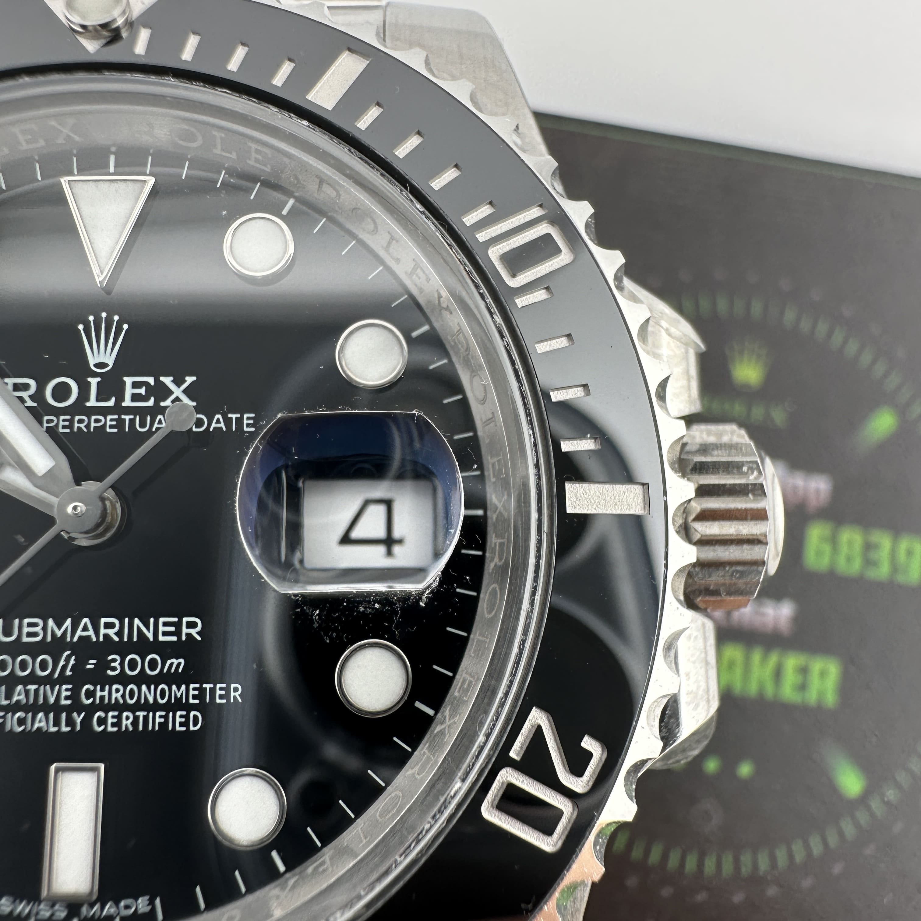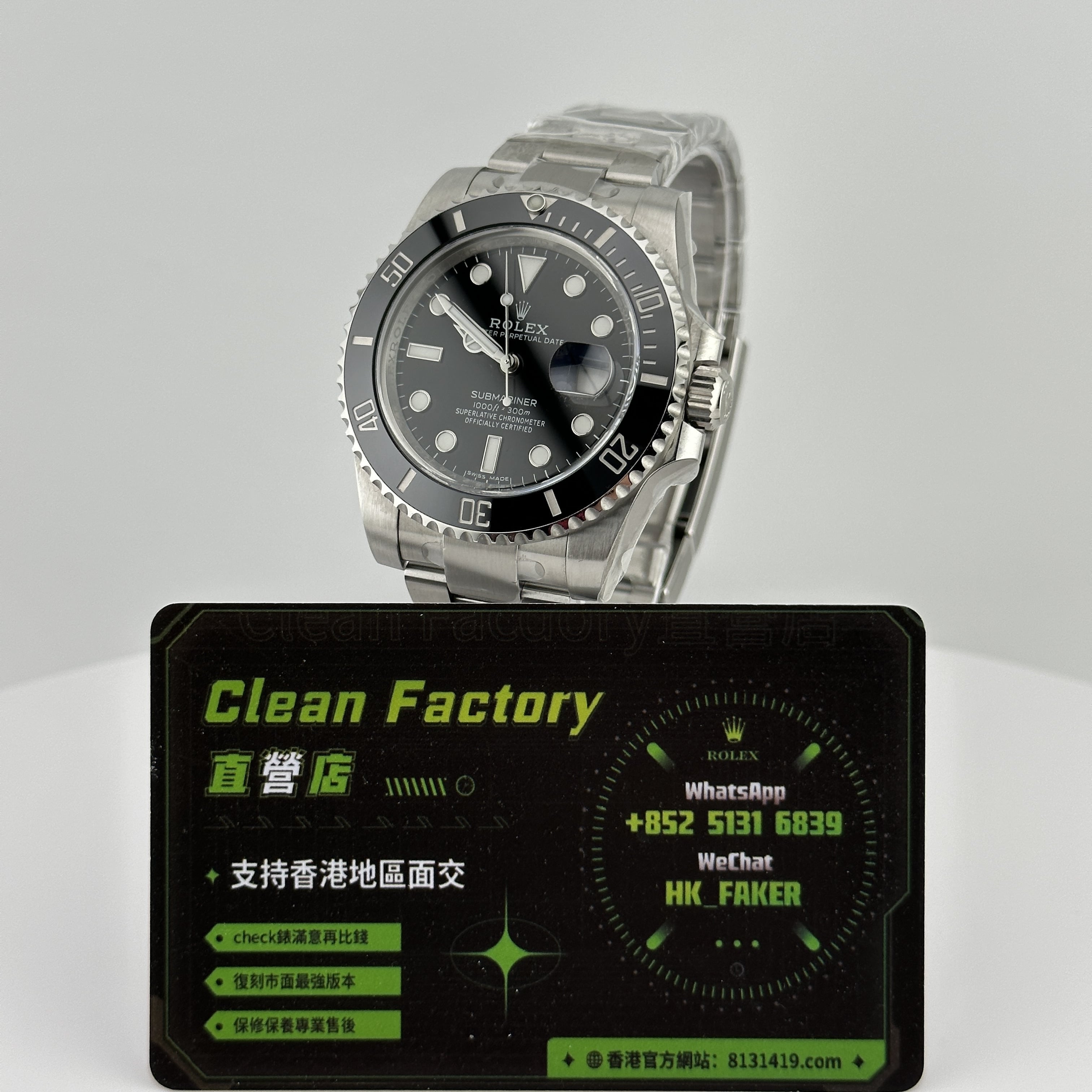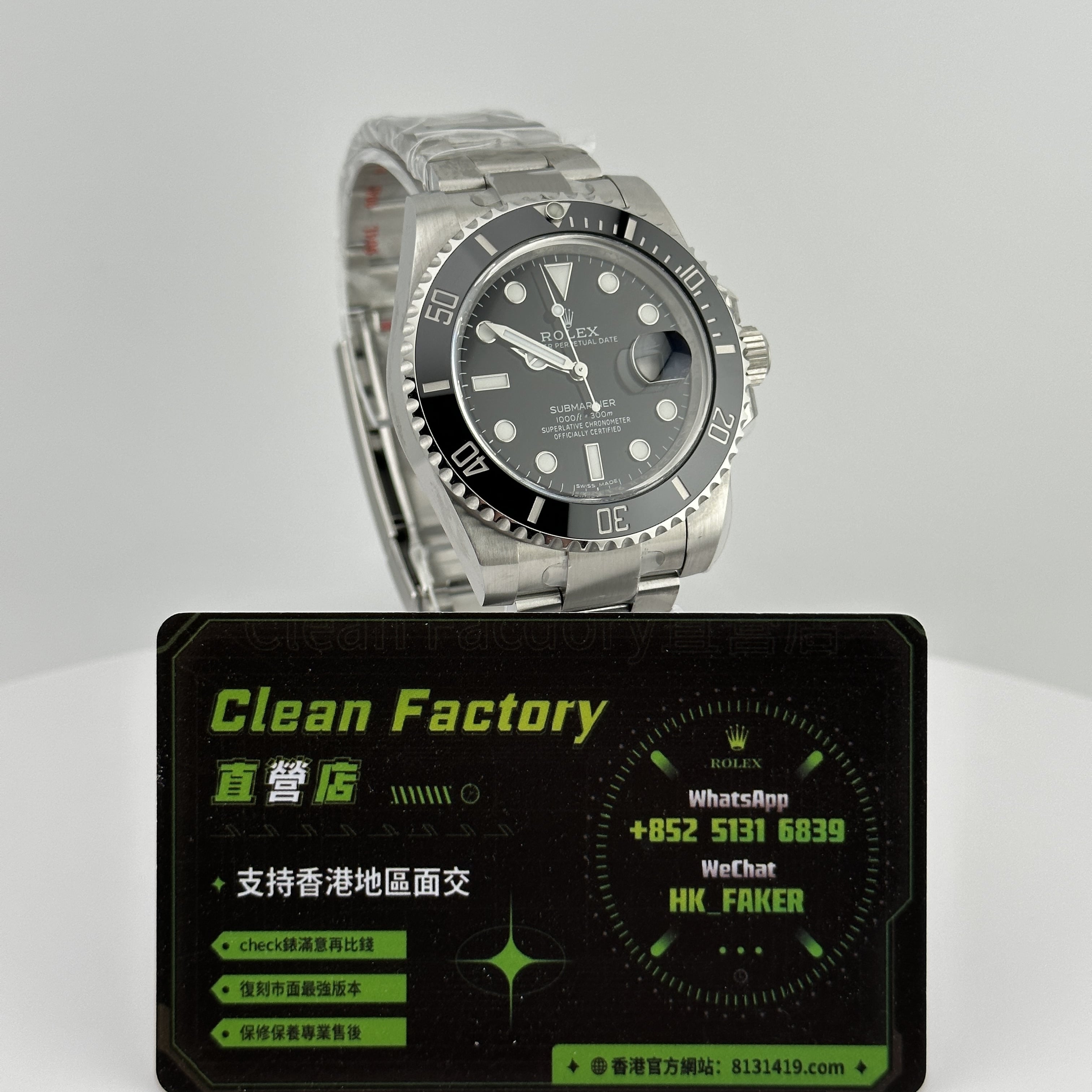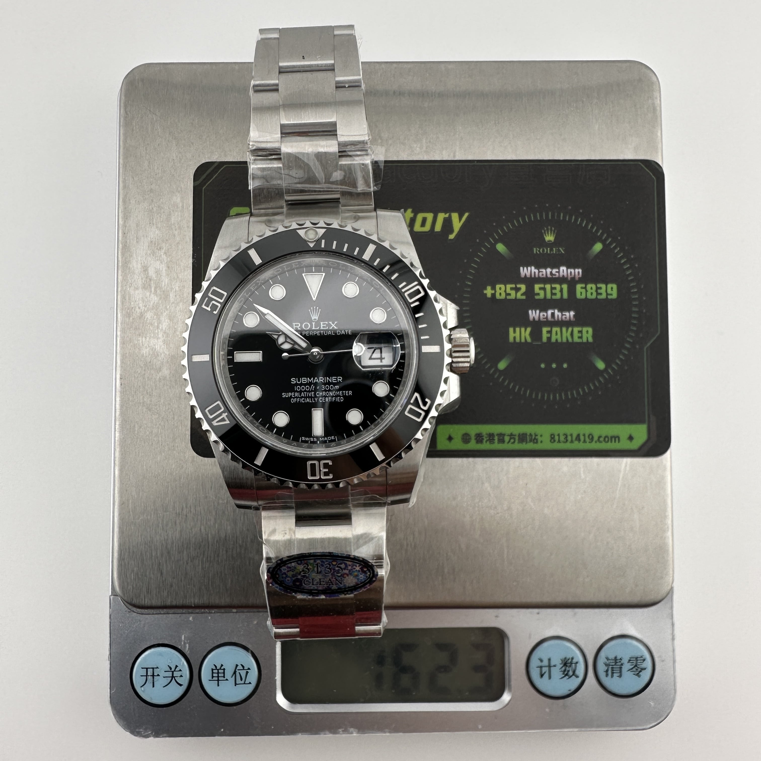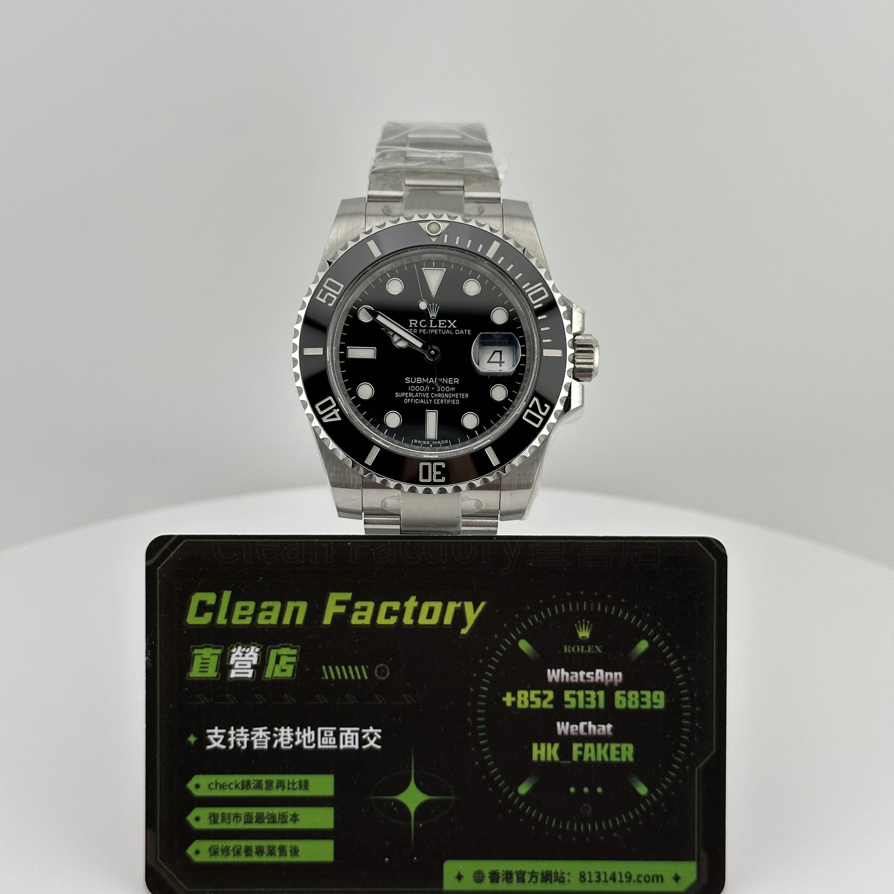 黑面錶盤無色差表現,圓點刻度與倒三角金屬包邊做了圓角打磨,呈現的邊緣金屬內置填充立體感十足.油性印刷白色字面,Clean廠黑水鬼做工色值對版字面清晰工整無毛邊毛刺.實心指針與中軸打磨後的細膩感完美極致.中軸中心點鏤空狀態,凸起的形狀弧度與正品一致.藍水晶鏡片放大日曆部分2.5倍,每一個字面對比原版無誤差才會上機使用.錶殼與錶帶之間銜接拉絲工藝絲滑流暢無斷鋼.Clean廠水鬼使用了AR廠代工廠錶帶,代用級別基本同步正品錶帶.機芯方面C廠黑水鬼配備了丹東3135機芯.