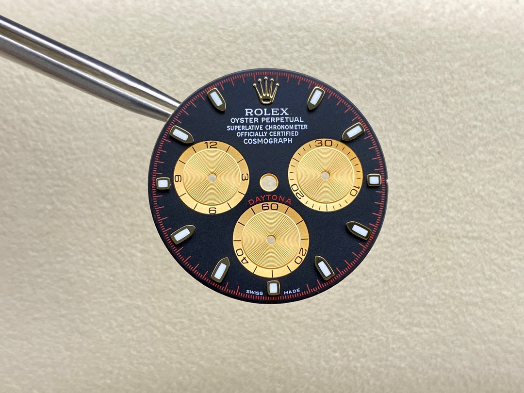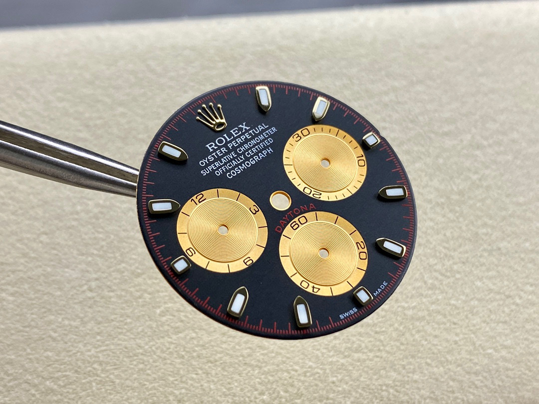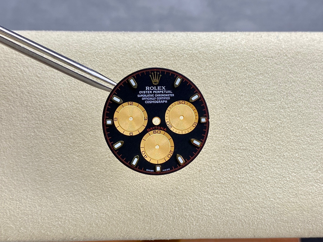 改裝升級對於高仿手錶一直都是能夠加持對比原裝正品情況下做的接近或者是無限接近的狀態.如目前市面上Clean廠勞力士地通拿是最頂級品質,對比原版也只能夠達到百分之95左右.而達到百分之98左右就必須通過後期私人定制去改裝升級.通常改裝的配件有18K包金,配重三件套-代用錶盤指針日曆,按照原版參數去作對比才能夠結出最後的改裝決定.這一個小惡魔代用錶帶是適用與BT廠地通拿和Clean廠地通拿所復刻的m116518和m116508.選擇這兩家廠最大的好處是搭載了丹東4130機芯,相對於整錶改裝後,使用壽命和機芯穩定都可以帶來比較穩定的性能.同時續航動力72小時也能夠符合原裝正品東動力續航.