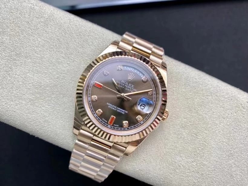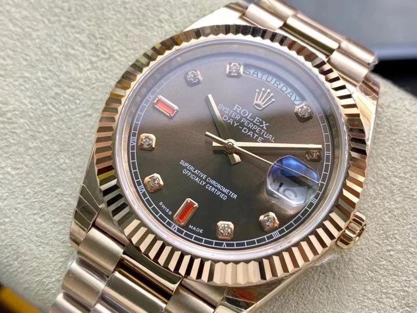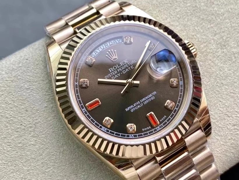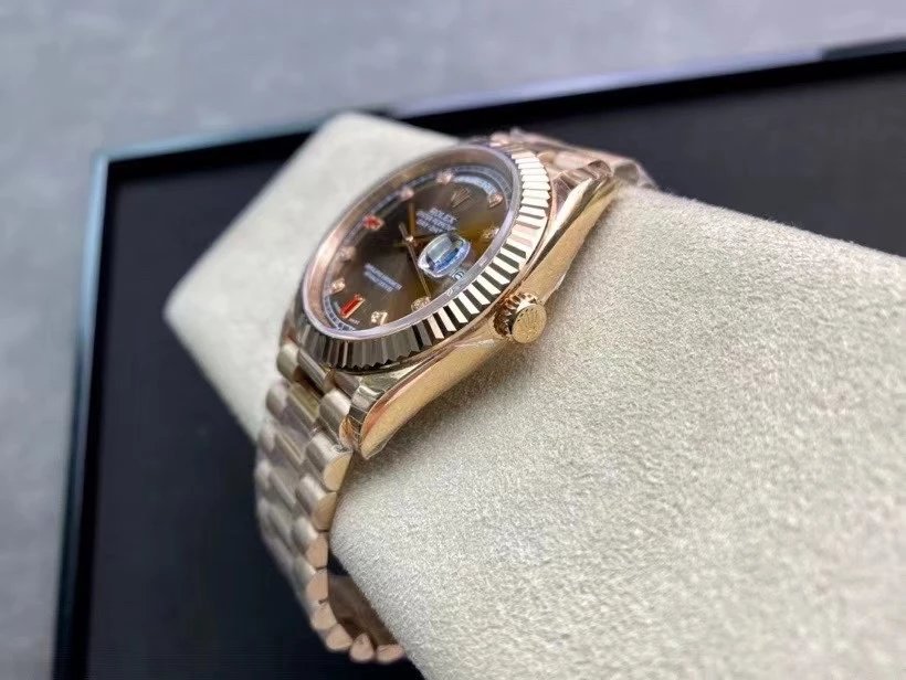 EW廠全新版本,勞力士日誌型40MM,從購買正品到開模打造耗時2年時間,搭載具有穩定性的自動3255機芯。 總體來說複刻程度極高,耗時、耗成本、耗人工,幾百個部件從細微的機芯內部到錶帶的結構都與複刻相同對比,佩戴在腕上很難分出真假。 此款日誌型號為228239,一個小細節不說的話大家很難看到,錶殼與錶帶之間的連結處正品是刻有“2282239”的數位型號,我們為了達到與正品一致也成功做到,細微的細節根本難不倒我們複刻的工藝。
