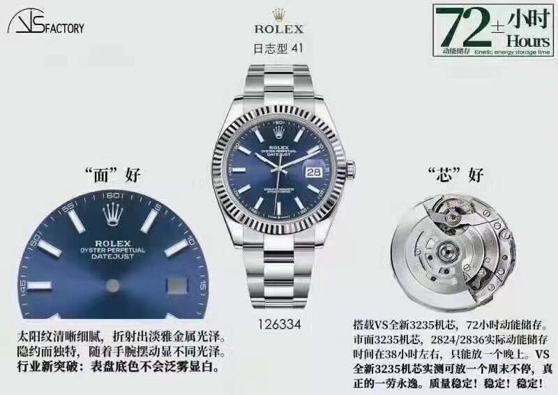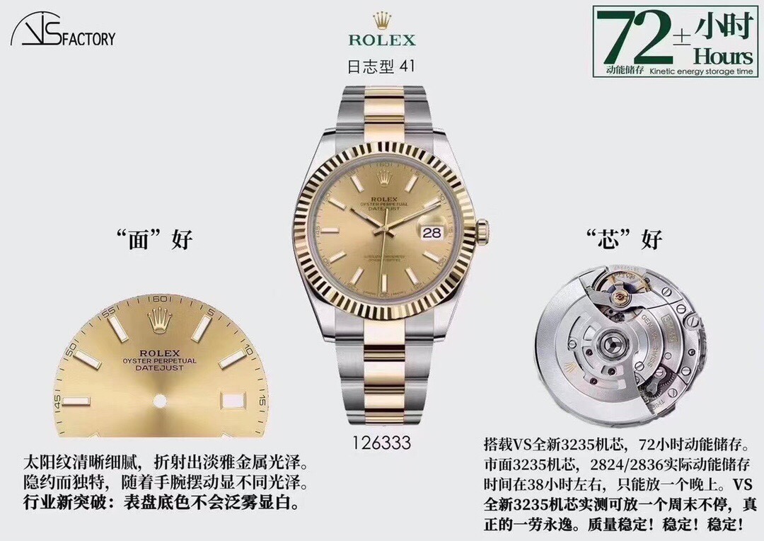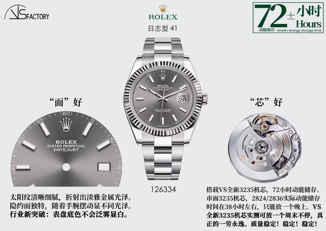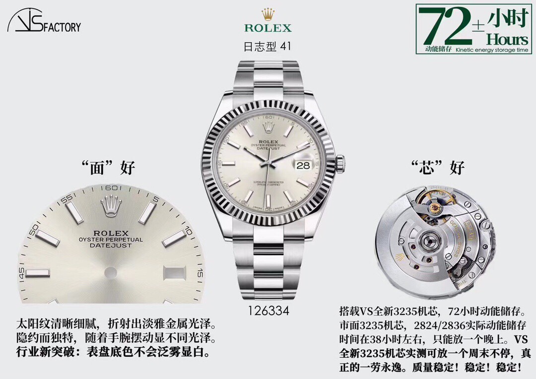 【VS廠出品】勞力士日誌型41mm,新版6點位小皇冠logo新款錶盤,搭載VS獨家機芯,動力儲存可達70小時,尺寸41x13mm,VS自產複l自動機械機芯,904L鋼表殼錶鏈,藍寶石鏡面,折疊扣,防水大於50米級
