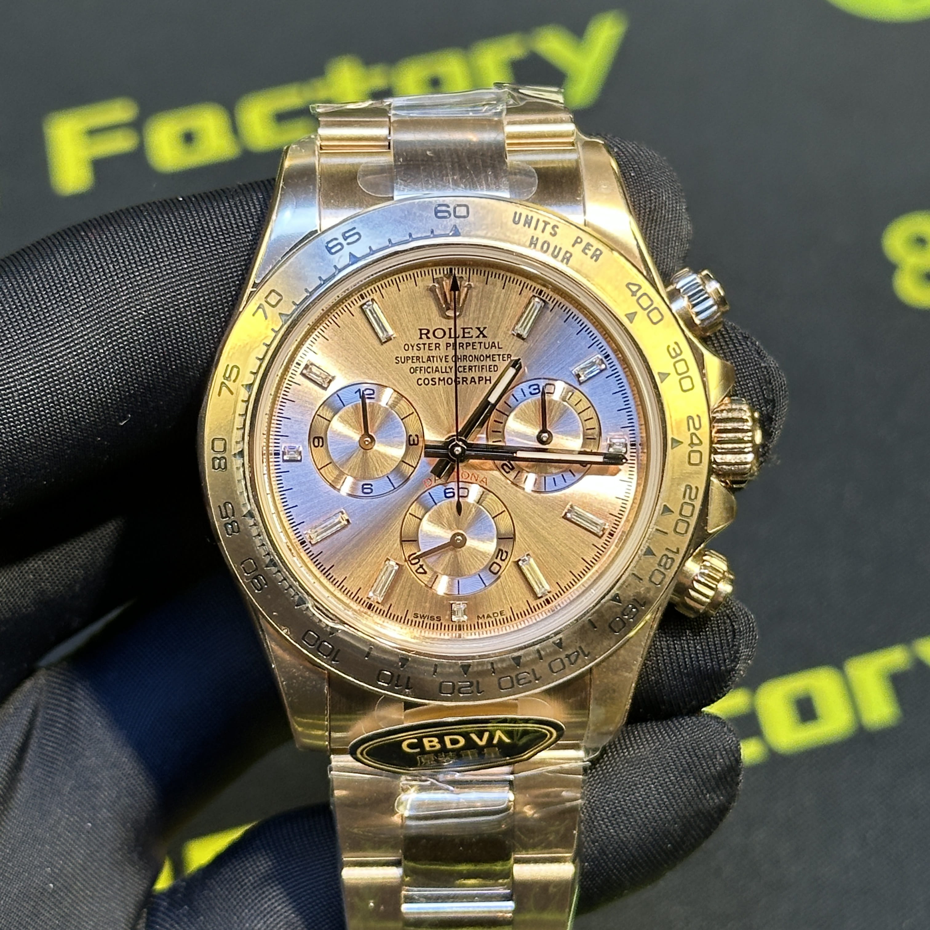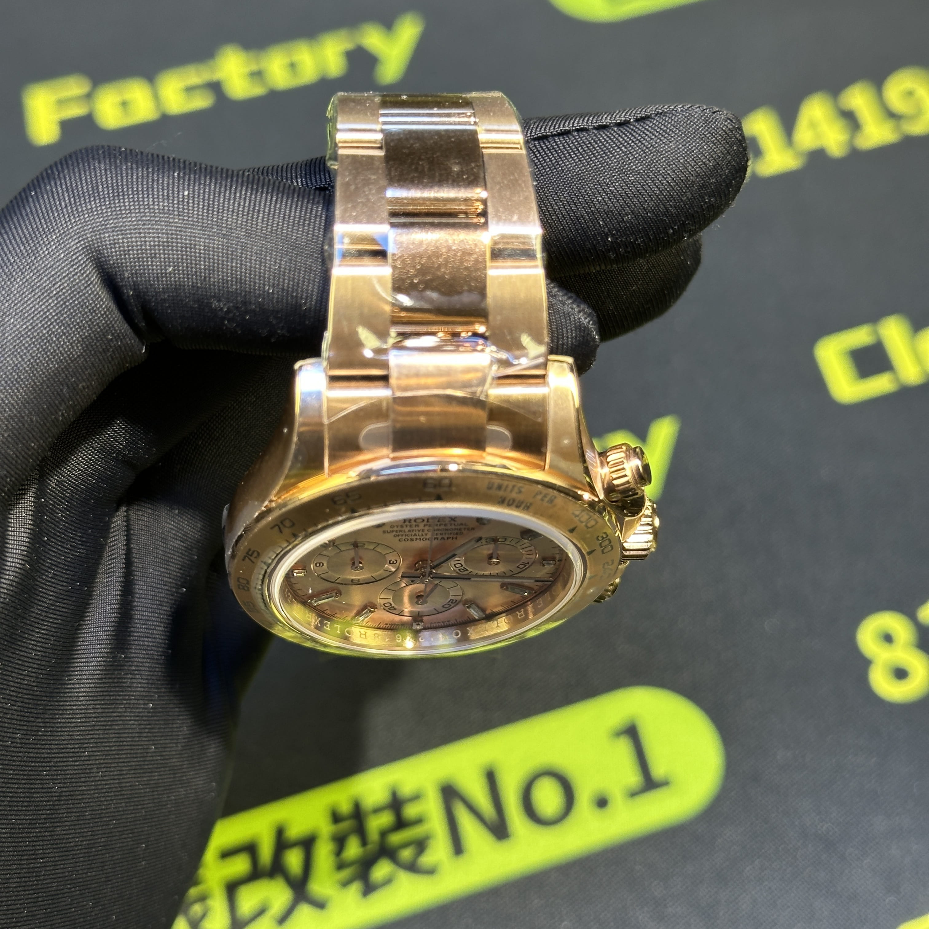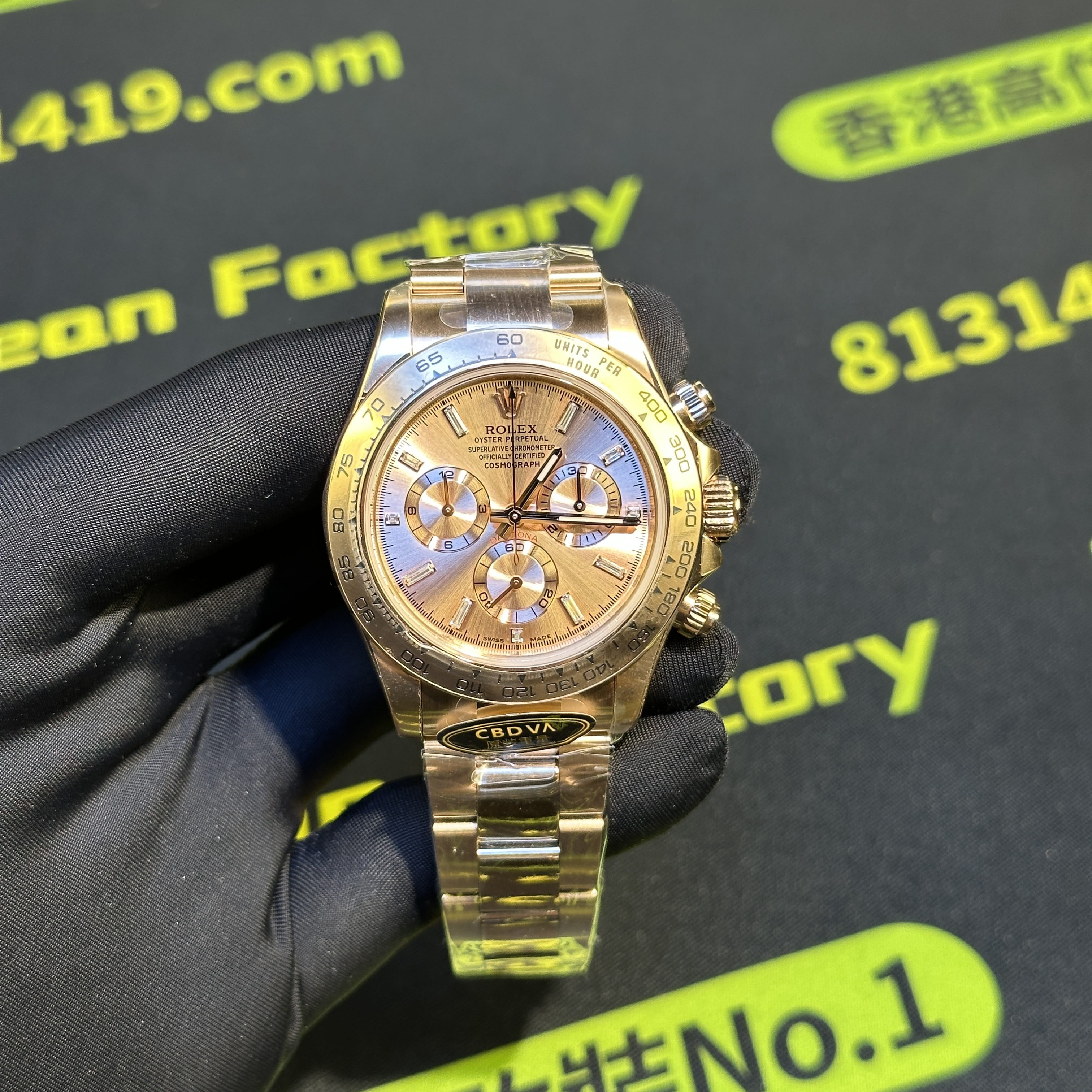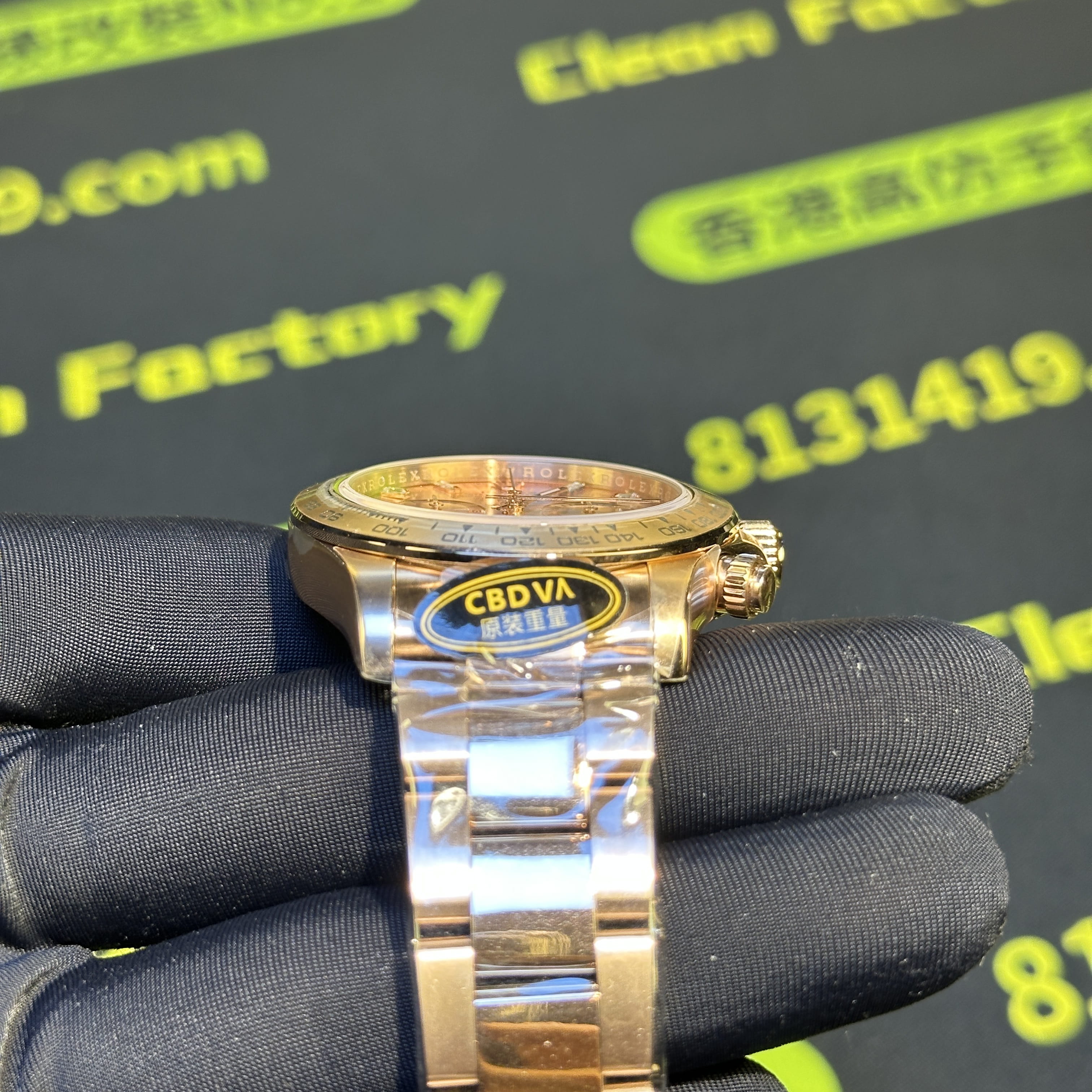 CBD廠官網全新推出勞力士地通拿m116505-0012玫瑰金足重版本,此次涉及的高仿地通拿是"粉冰糖"粉色與肉色的盤面加上時間刻度條丁使用了切割鑽石組成,因此在叫法上是簡稱"粉冰糖".整錶尺寸40mm,CBD推出的116505高仿地通拿玫瑰金款式都是採用統一的原版1:1開模復刻而成,針對外觀版型構造經典的刻度圈口,粉嫩的盤面色澤搭配外觀玫瑰金電鍍效果,一款耐看型的地通拿就此推出.整錶克重比例做到了217克,在高仿市面上屬於是非常及格的克重比例,當然,其他廠家以及私人訂製款式都可以做到220克以上,存在的即可誤差也是屬於正常現象.配置了丹東4130機芯,眾多K金版本的高仿地通拿CBD廠均有推出.