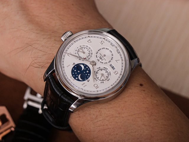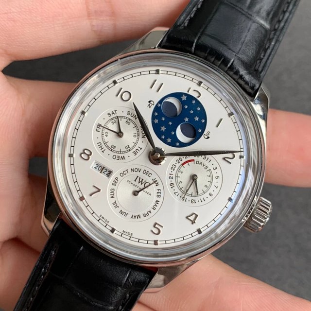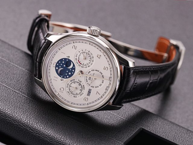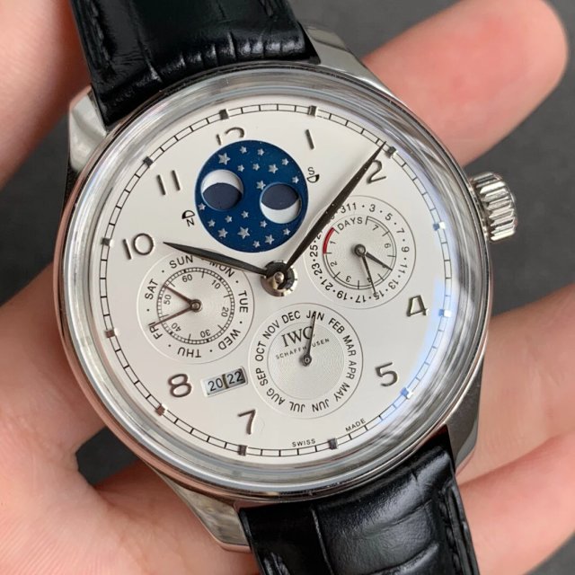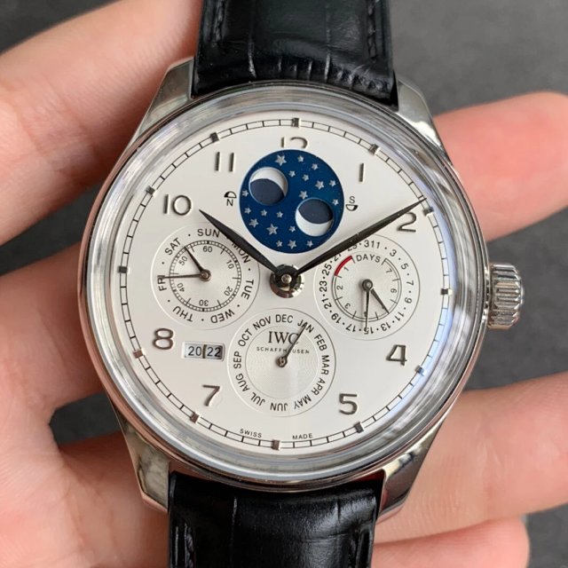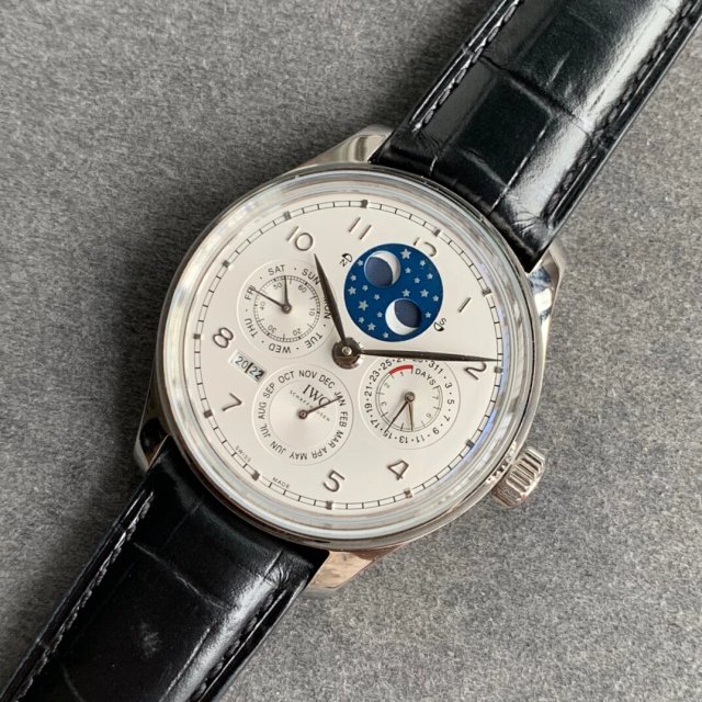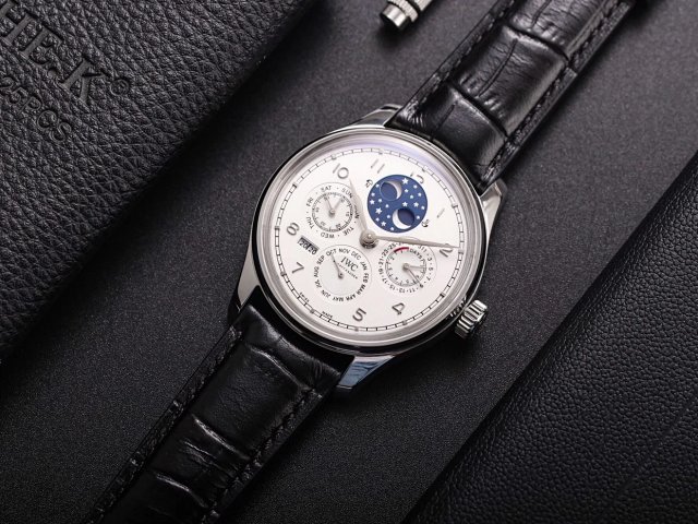 葡萄牙系列真萬年曆,複刻界第一支真萬年曆萬國,採用進口大精工作為基礎機芯升級為52610機芯副本,不但實現了大部分功能而且走時穩定,返修率極低,這是複刻市場少有的耐操性複雜功能腕表。
