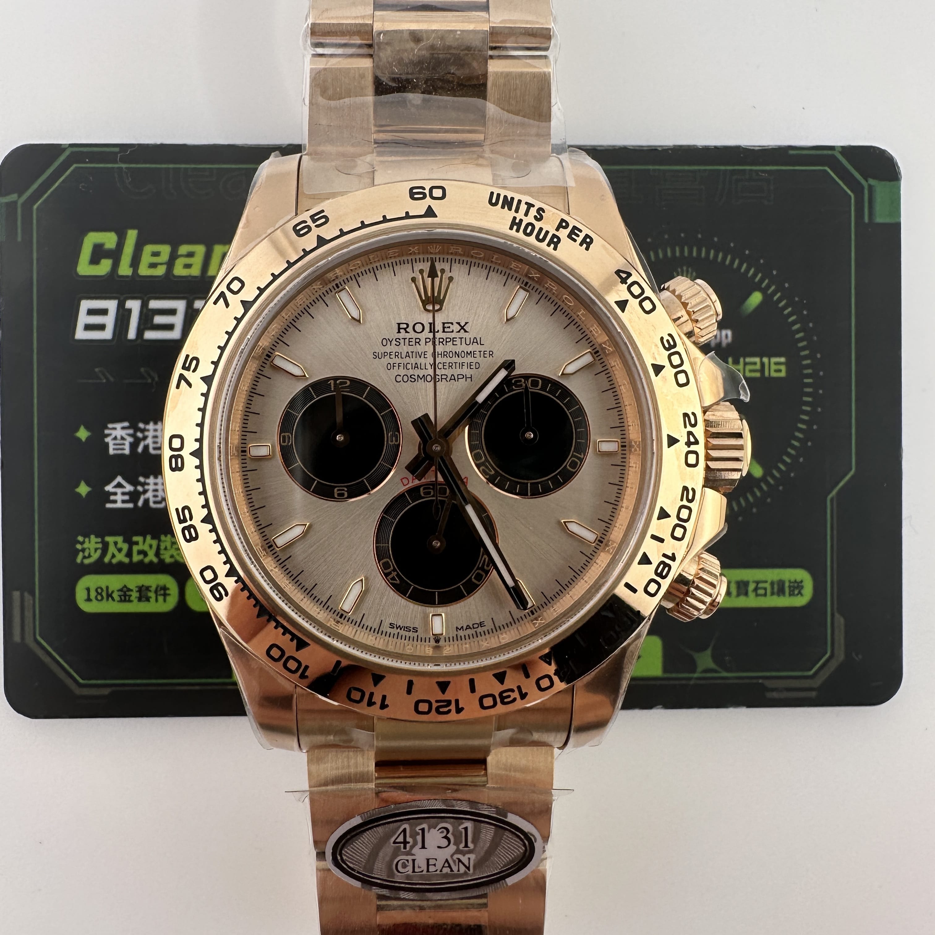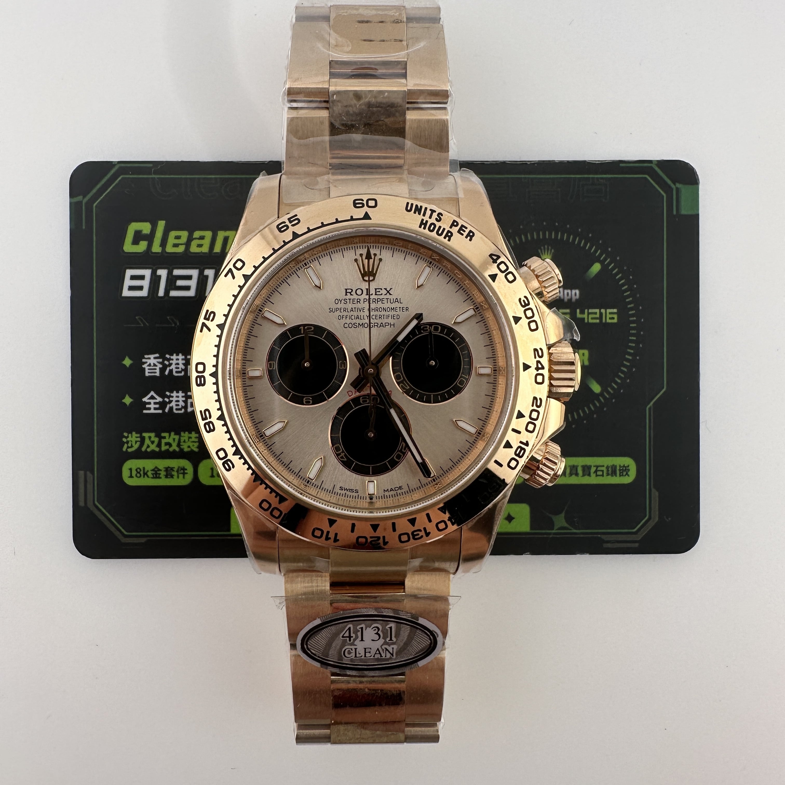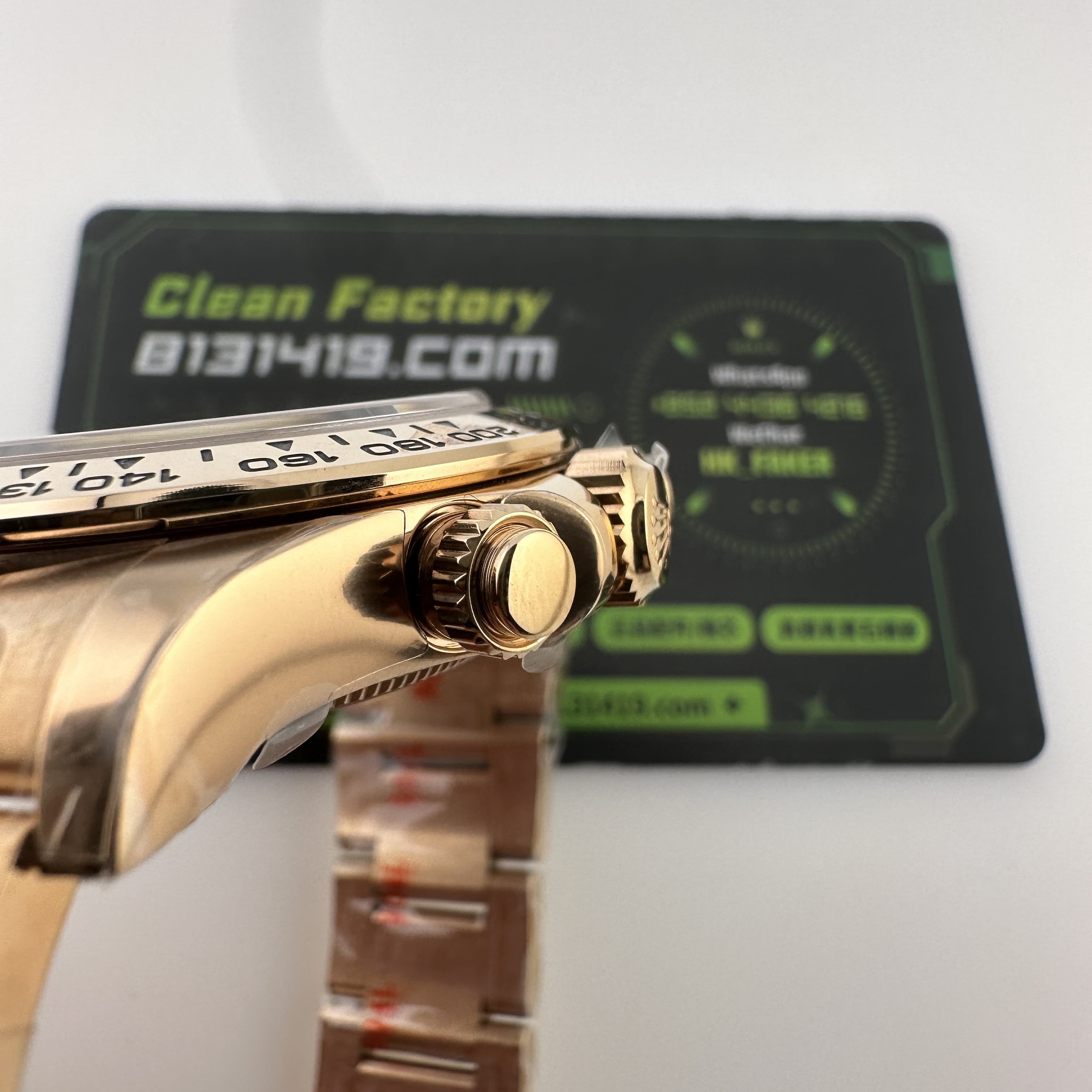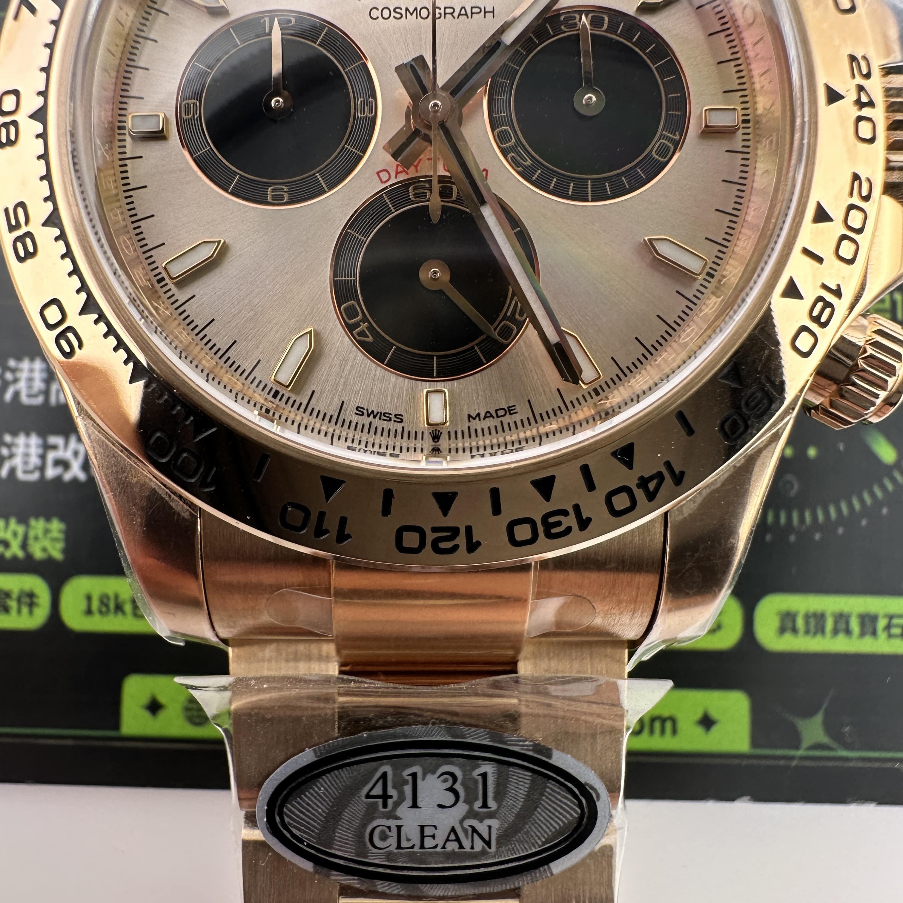通過實拍圖片去了解到Clean廠126505貝嫂地通拿盤面在不同角度中以及正面角度所呈現的色澤均是不一樣的效果!從這一點就足以表達出C廠製作工藝接近原版復刻工藝.其次是色差部分肯定是有,只不過是通過不同角度,不同燈光,不同環境光造就出不一樣的粉色,亮金色,淡粉色等等顏色,小編認為色澤部分還原度百分之95左右.搭載上海4131機芯,都是經過Clean廠調教測評後沒有任何問題的機芯配置.C廠貝嫂整體評價頗受眾多錶友青睞,不僅僅是細節處理完善,更多是品質把控到位