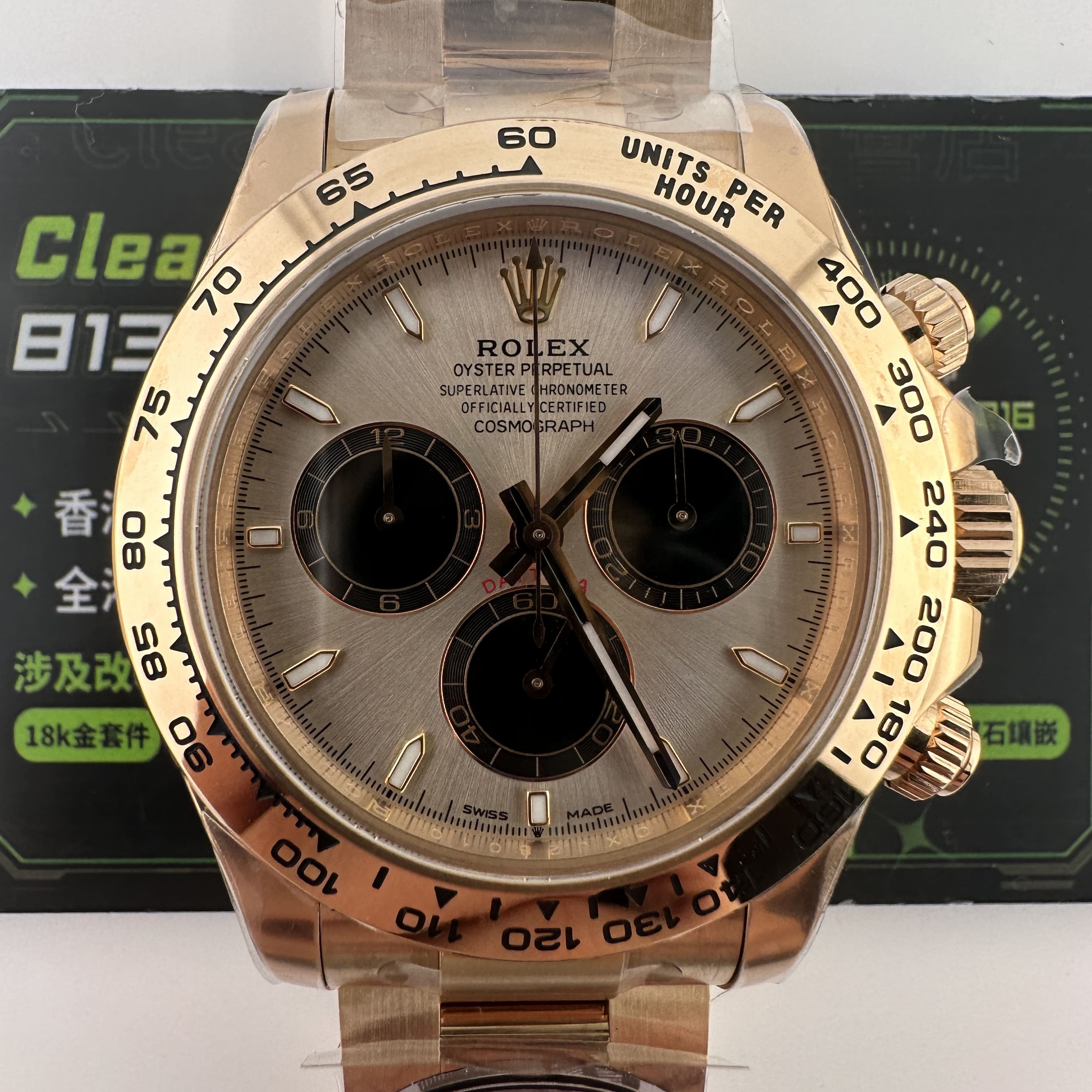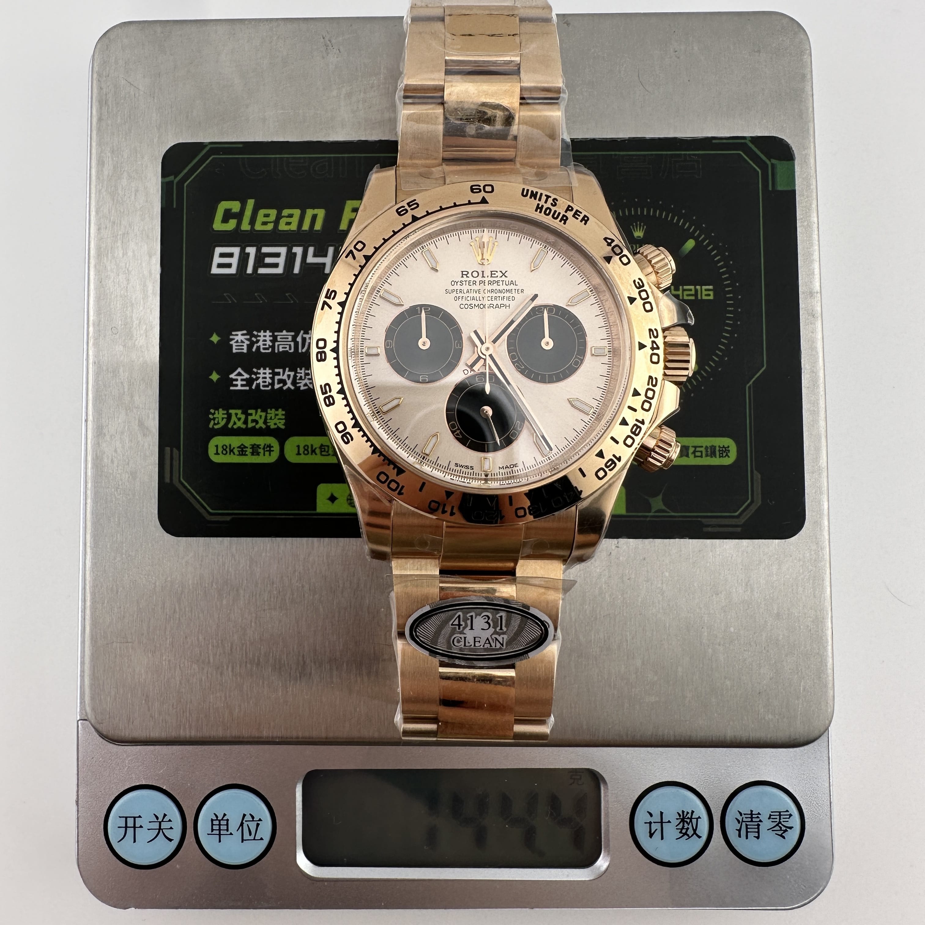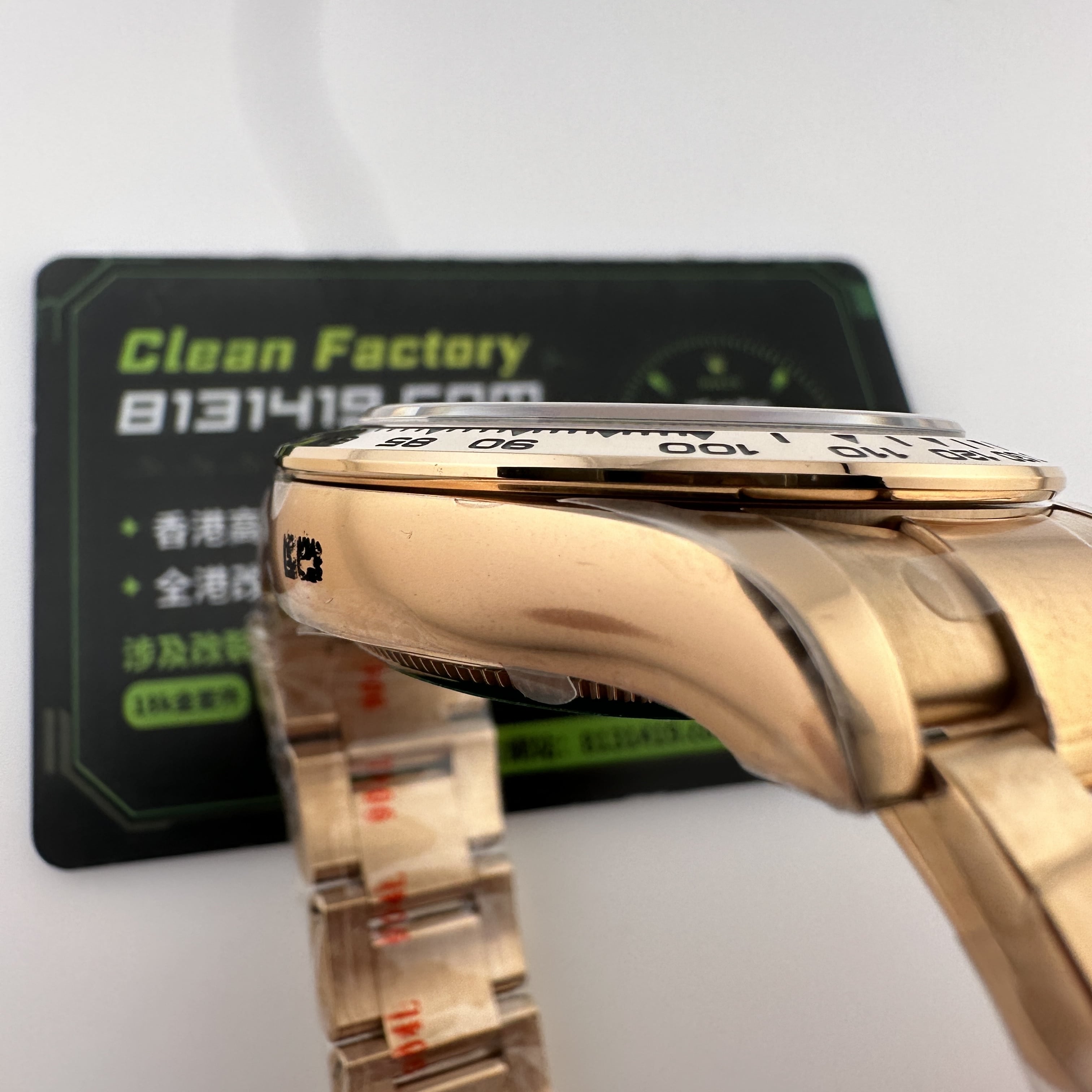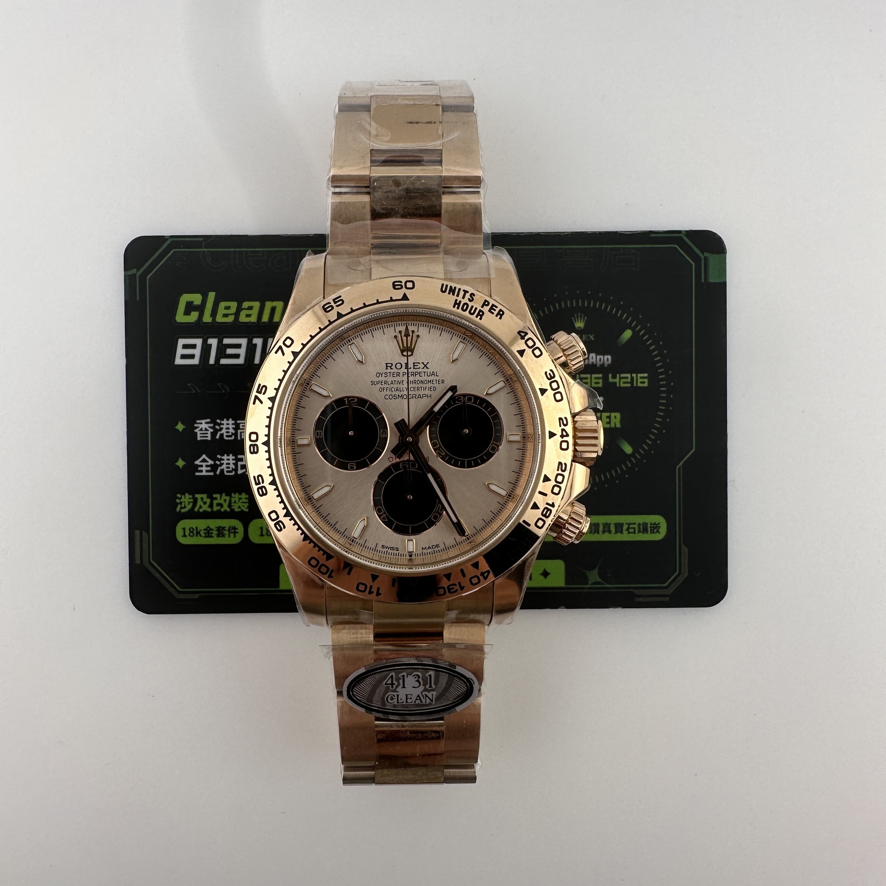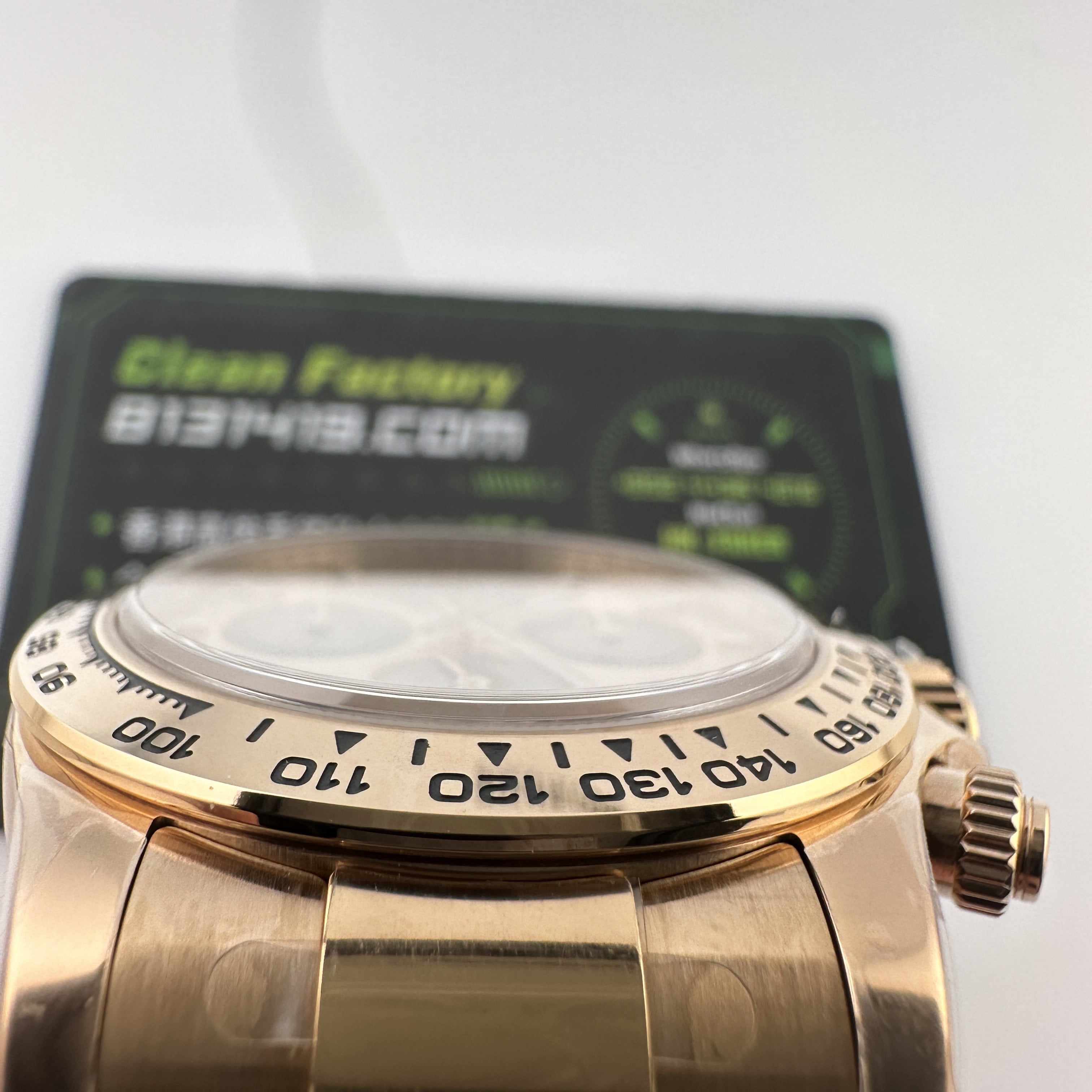 通過實拍圖片去了解到Clean廠126505貝嫂地通拿盤面在不同角度中以及正面角度所呈現的色澤均是不一樣的效果!從這一點就足以表達出C廠製作工藝接近原版復刻工藝.其次是色差部分肯定是有,只不過是通過不同角度,不同燈光,不同環境光造就出不一樣的粉色,亮金色,淡粉色等等顏色,小編認為色澤部分還原度百分之95左右.搭載上海4131機芯,都是經過Clean廠調教測評後沒有任何問題的機芯配置.C廠貝嫂整體評價頗受眾多錶友青睞,不僅僅是細節處理完善,更多是品質把控到位