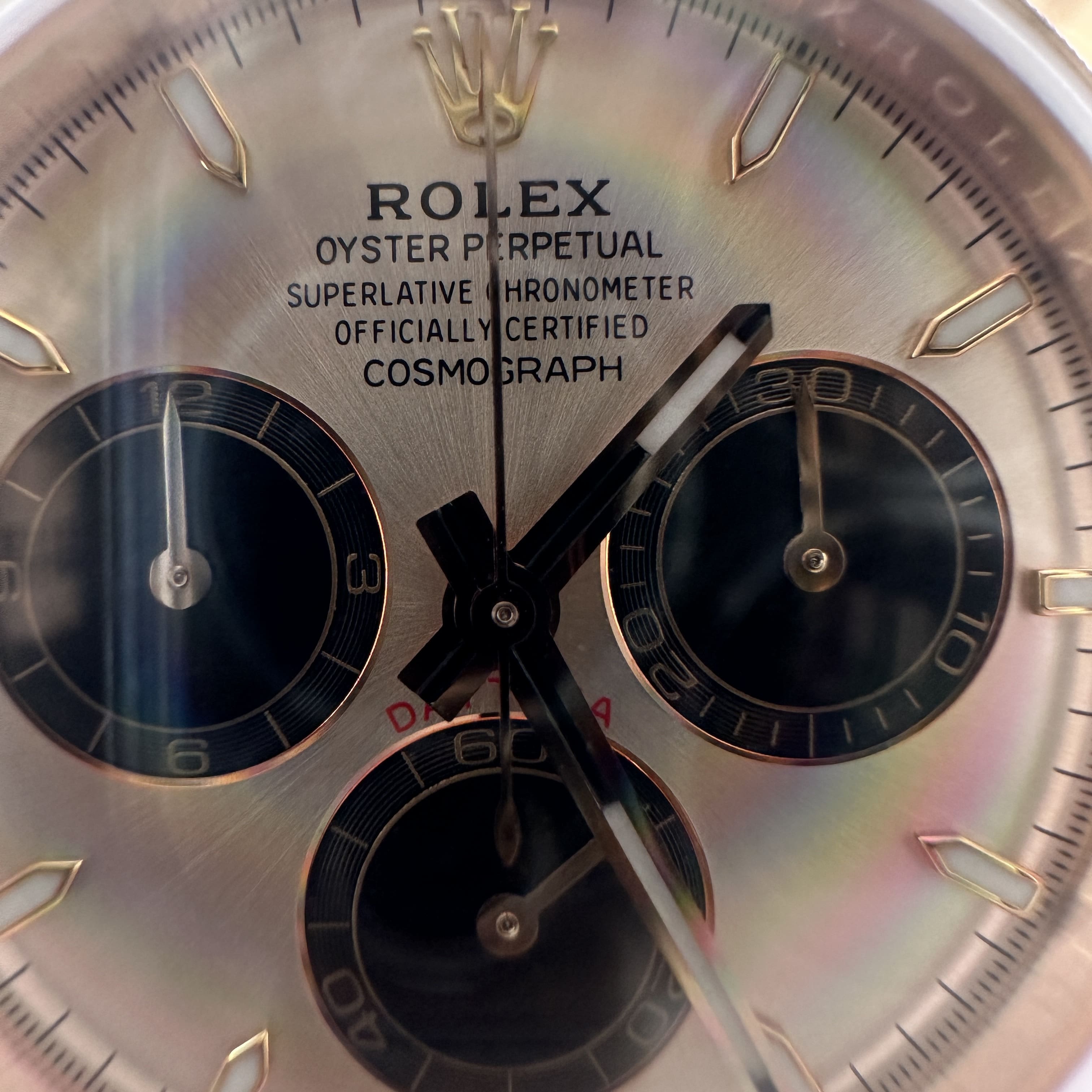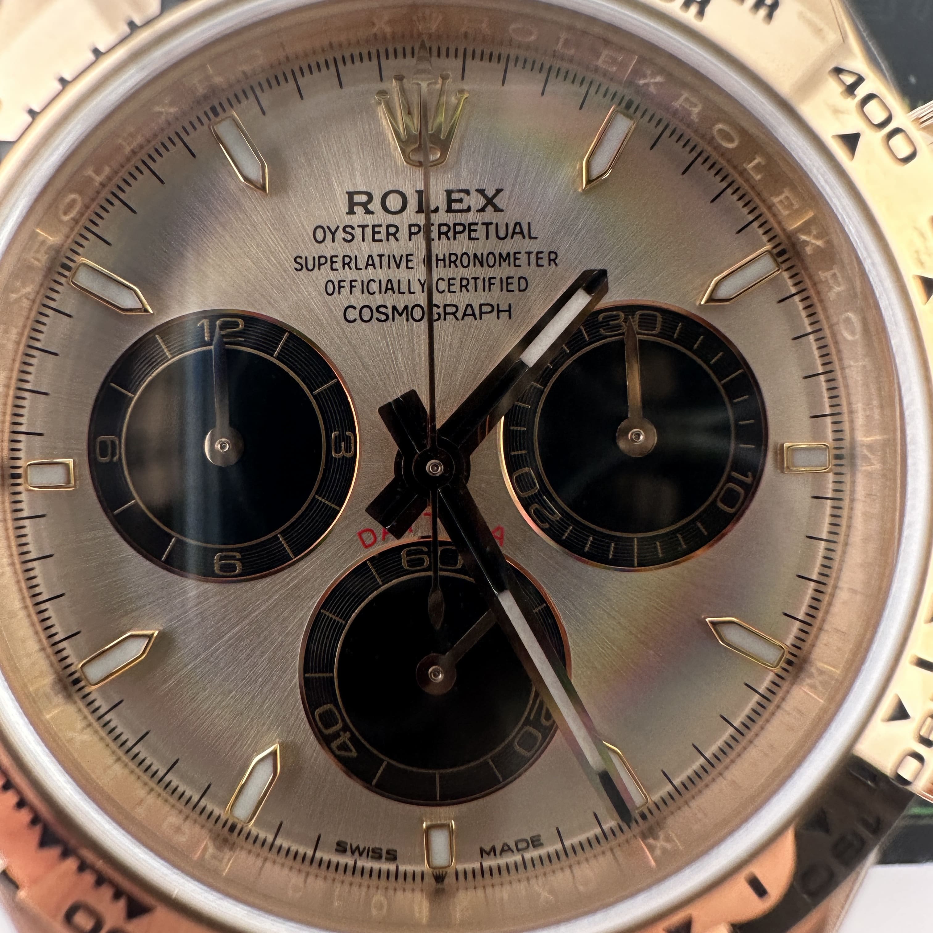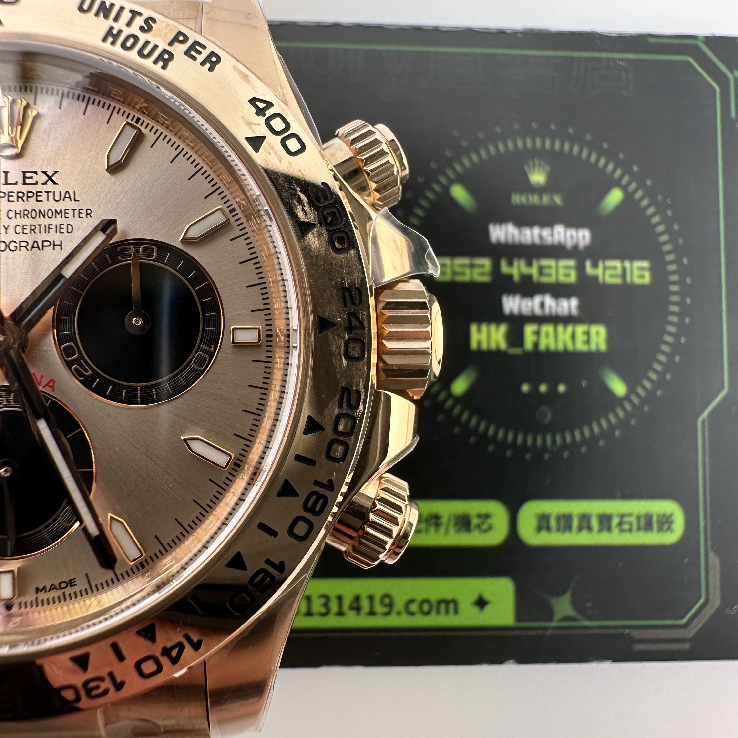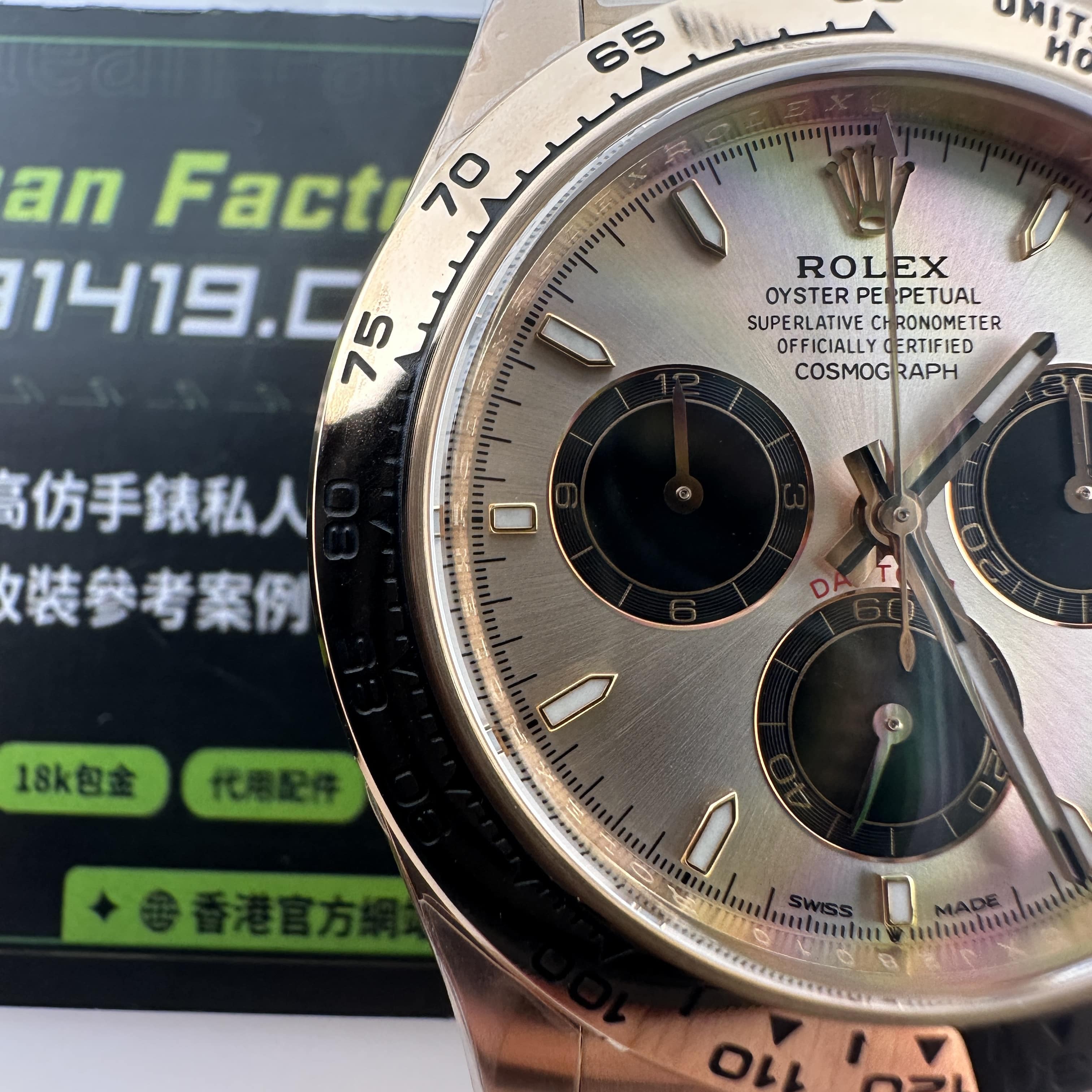 通過實拍圖片去了解到Clean廠126505貝嫂地通拿盤面在不同角度中以及正面角度所呈現的色澤均是不一樣的效果!從這一點就足以表達出C廠製作工藝接近原版復刻工藝.其次是色差部分肯定是有,只不過是通過不同角度,不同燈光,不同環境光造就出不一樣的粉色,亮金色,淡粉色等等顏色,小編認為色澤部分還原度百分之95左右.搭載上海4131機芯,都是經過Clean廠調教測評後沒有任何問題的機芯配置.C廠貝嫂整體評價頗受眾多錶友青睞,不僅僅是細節處理完善,更多是品質把控到位