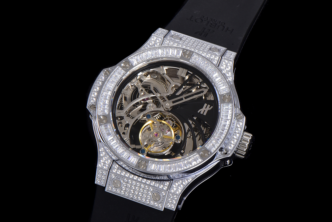 恒寶Hublot. V3升級版(陞級如下:陞級使用原裝殼套起模殼身,側耳不再使用塑膠,搭配升級版真陀飛輪心臟,加强防震,解决了市場普通版本“縫合度不高有縫隙、機芯返修率高”的問題,90%還原原裝構架,一比一尺寸,層壓藍寶石水晶錶鏡以及同步橡膠底牛皮錶帶,更突顯了區別於小廠的質感。)