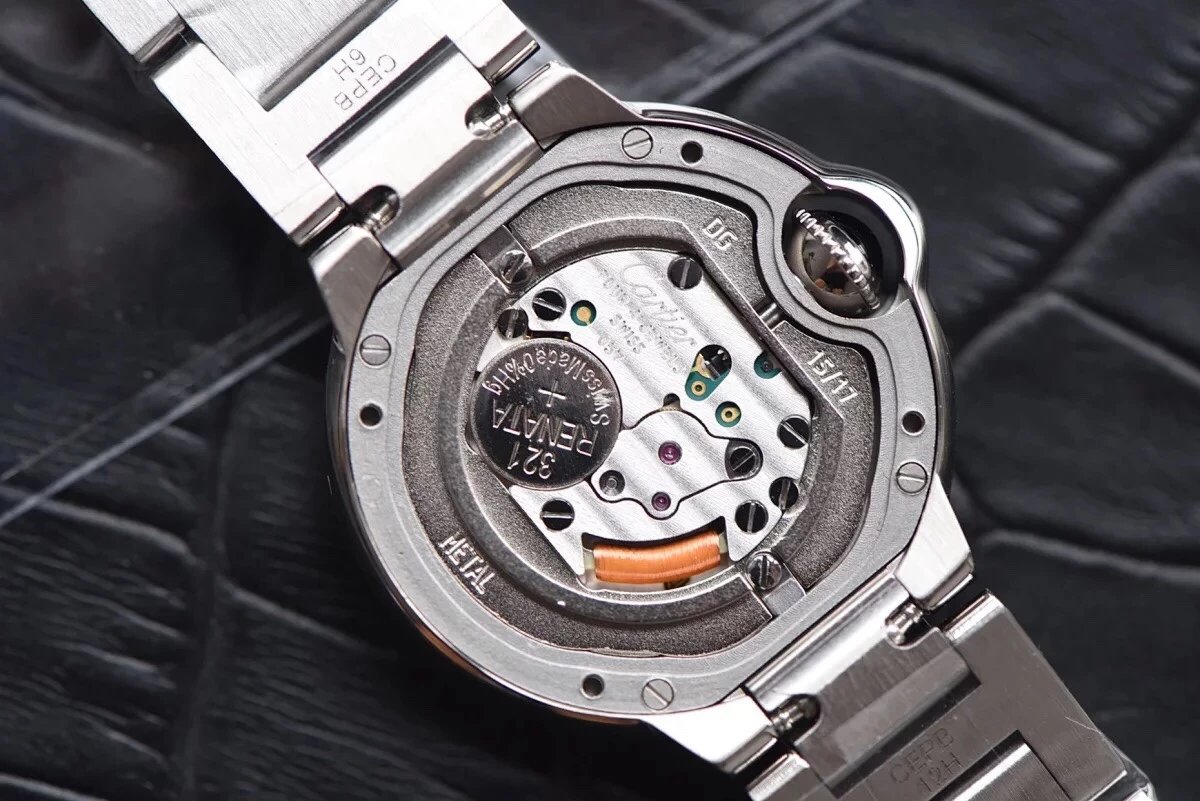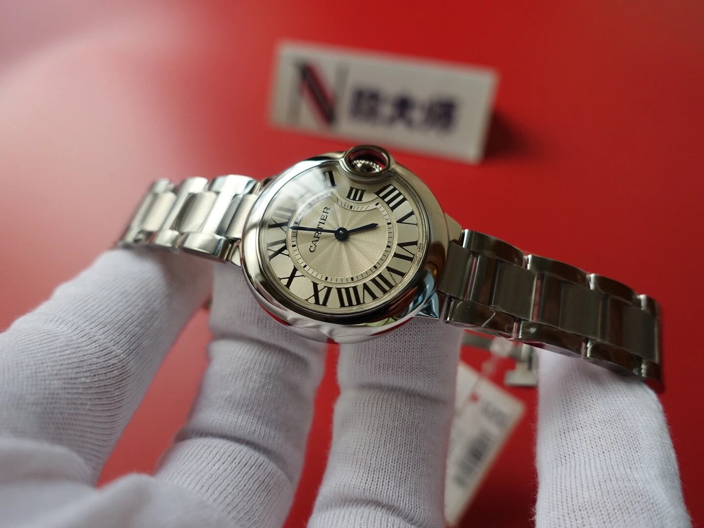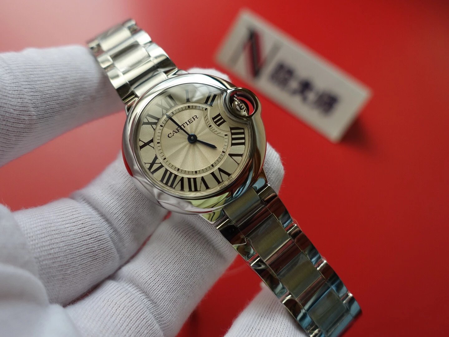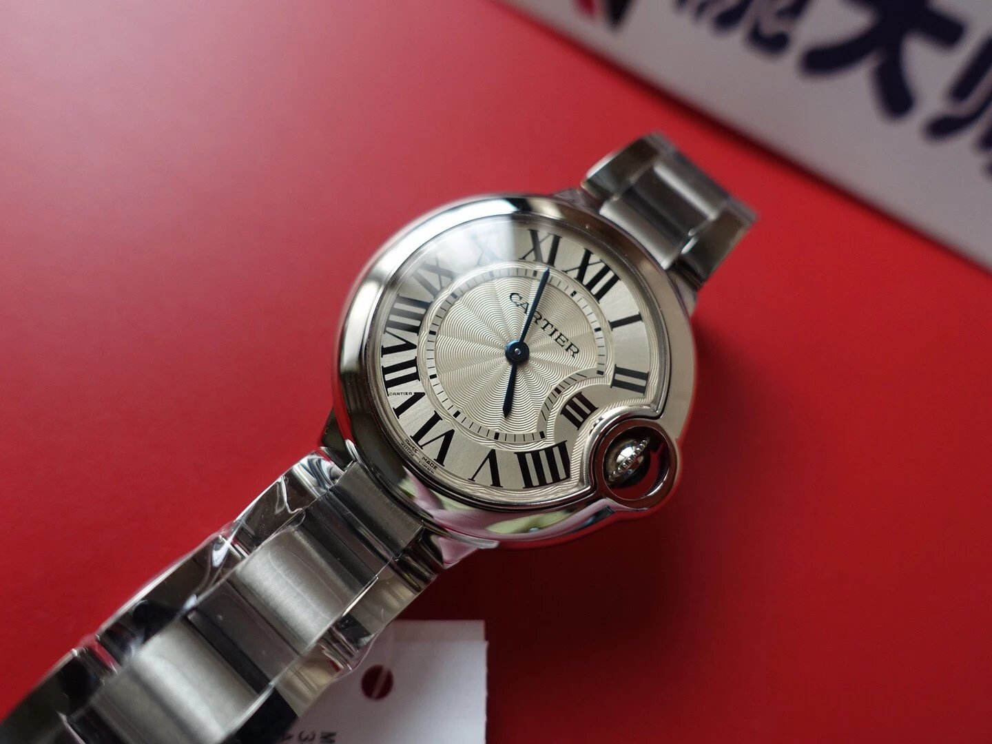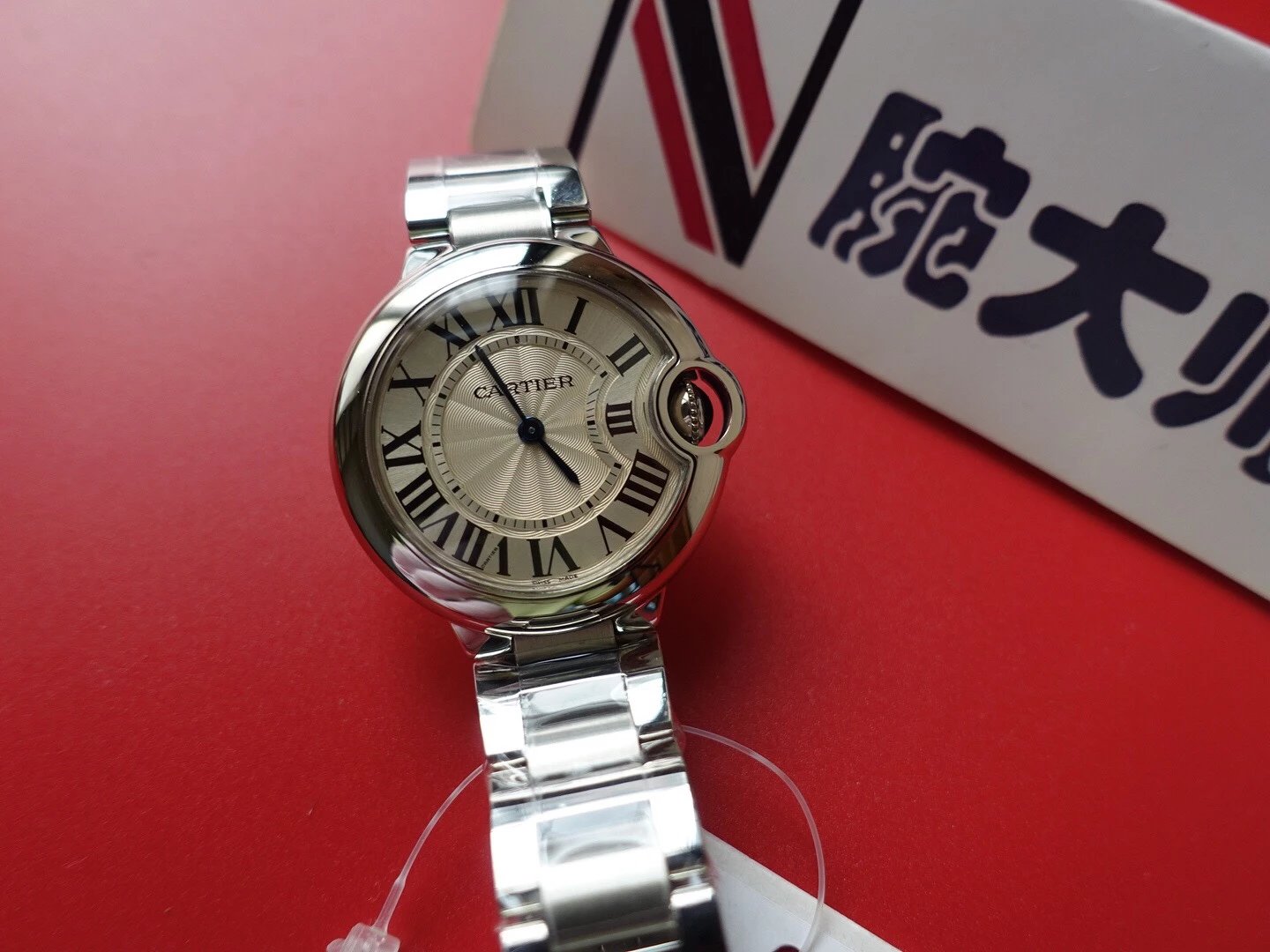 這個是石英版本的??機械錶盤多一行“automatic”字母。這個細節自己查一下專櫃官網就很清楚。機械表容易停,時間不准,石英表適合懶人們,也沒什麼售後問題。我們都知道卡地亞藍氣球