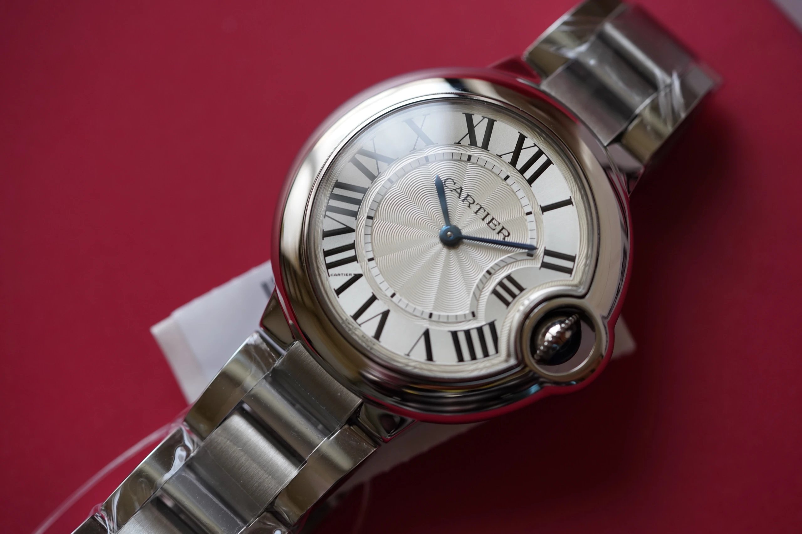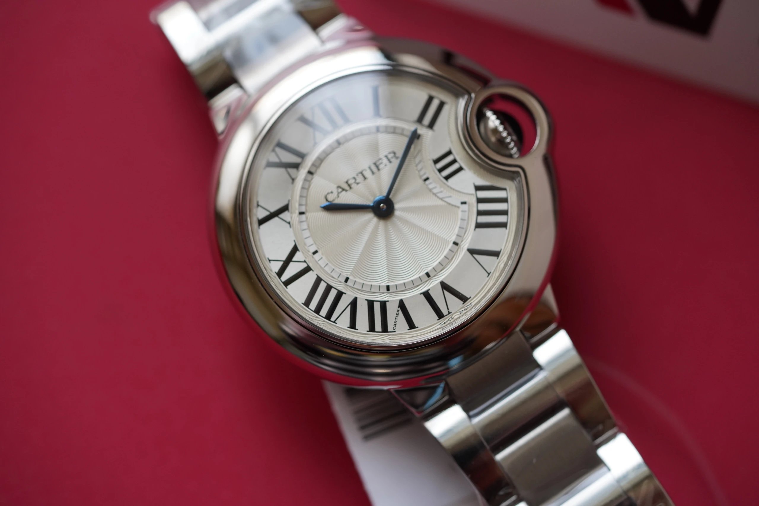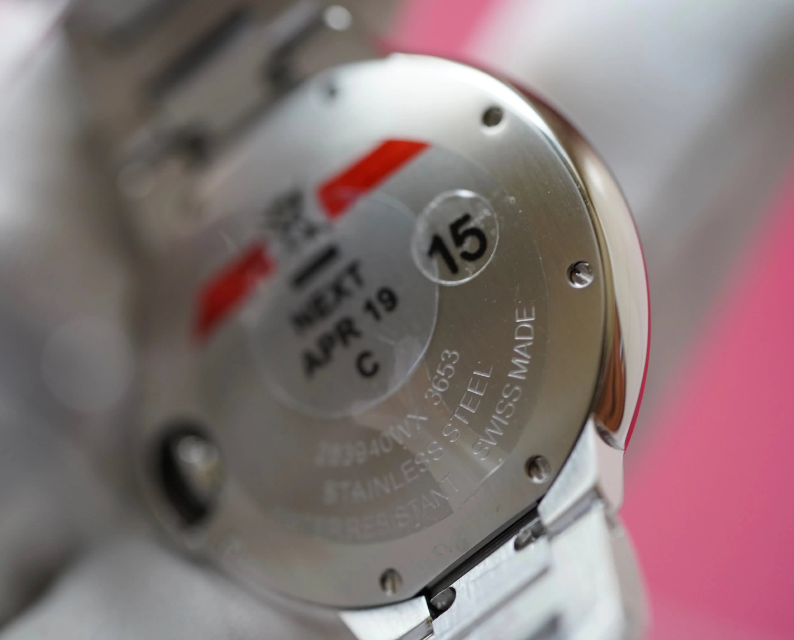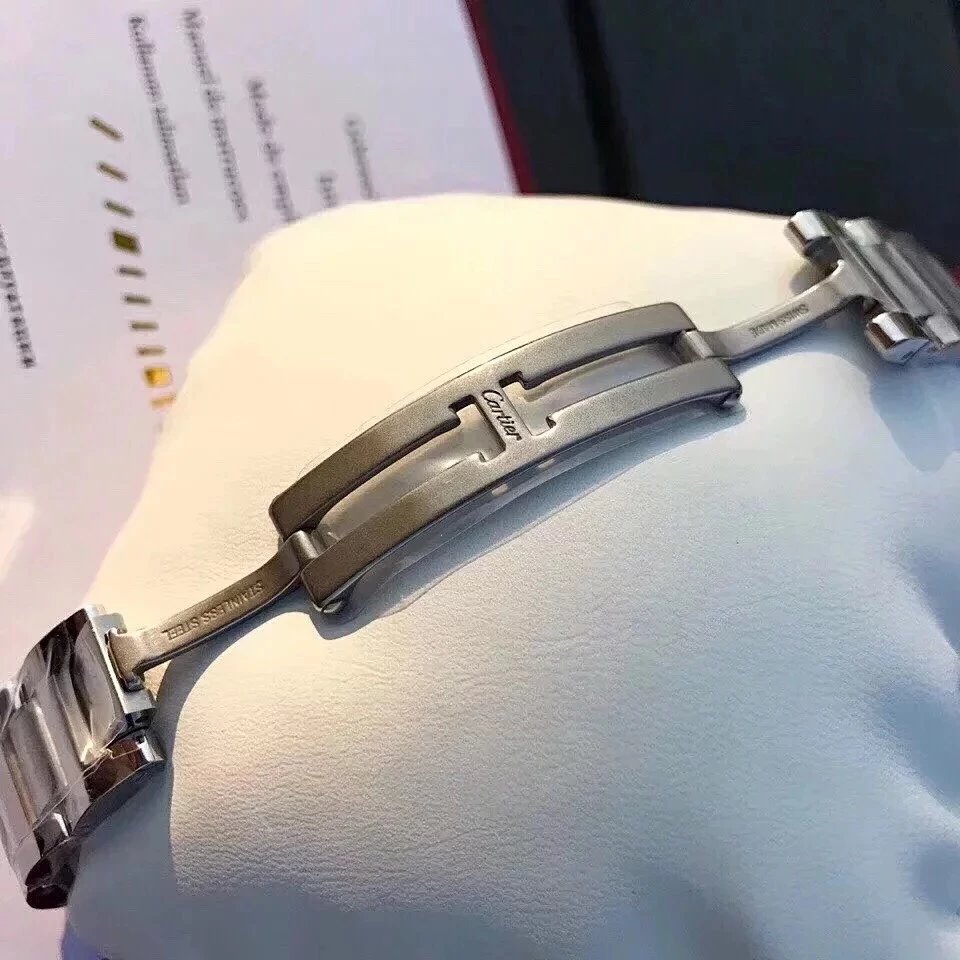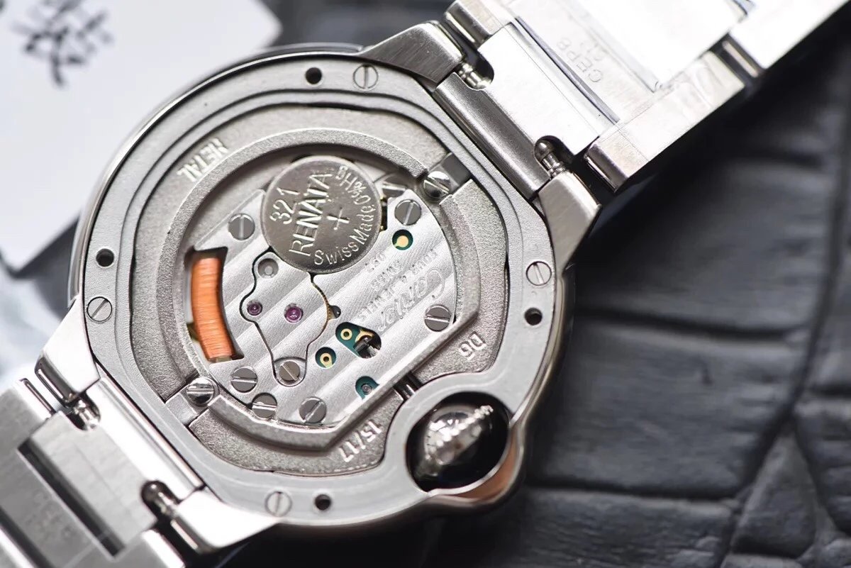 這個是石英版本的??機械錶盤多一行“automatic”字母。這個細節自己查一下專櫃官網就很清楚。機械表容易停,時間不准,石英表適合懶人們,也沒什麼售後問題。我們都知道卡地亞藍氣球