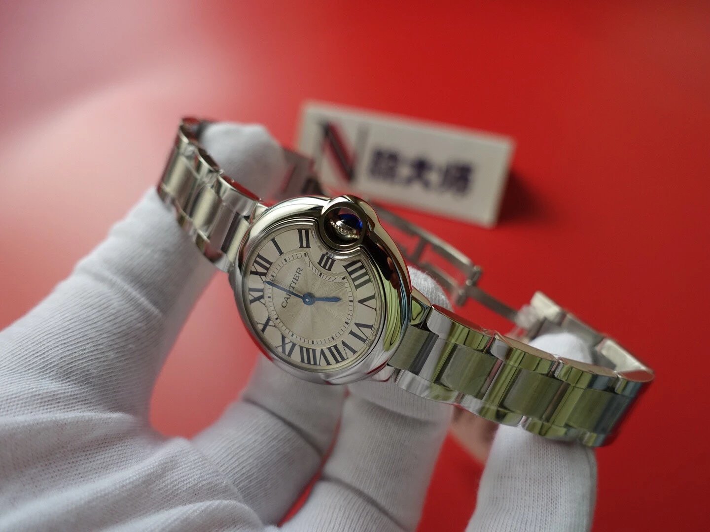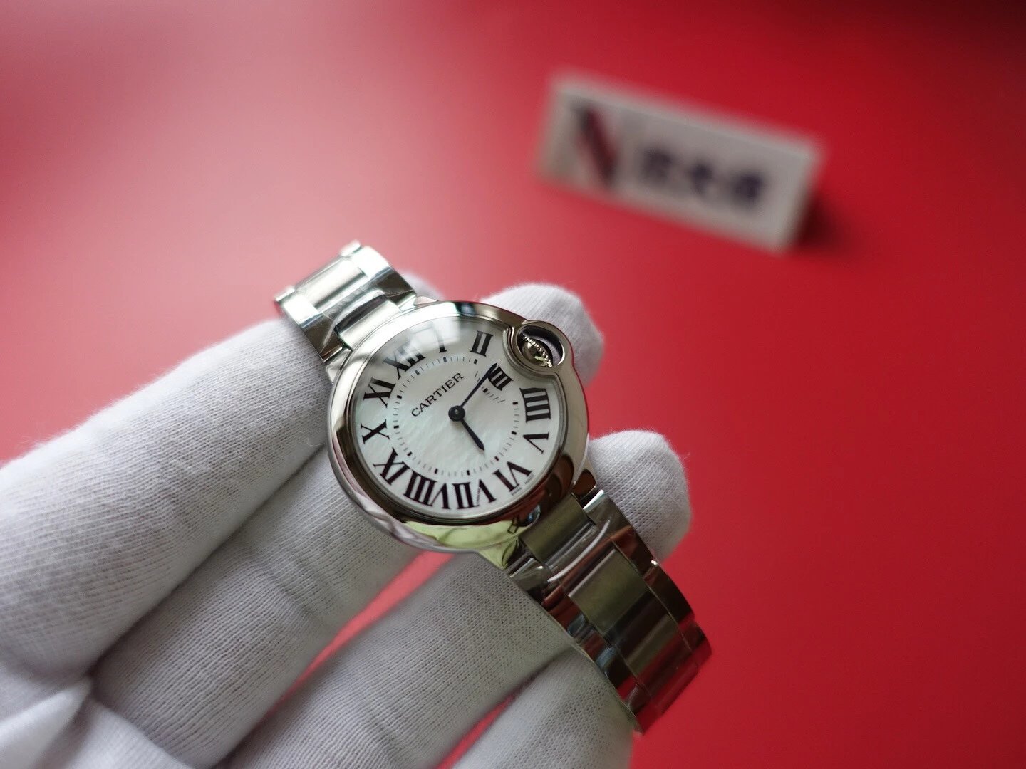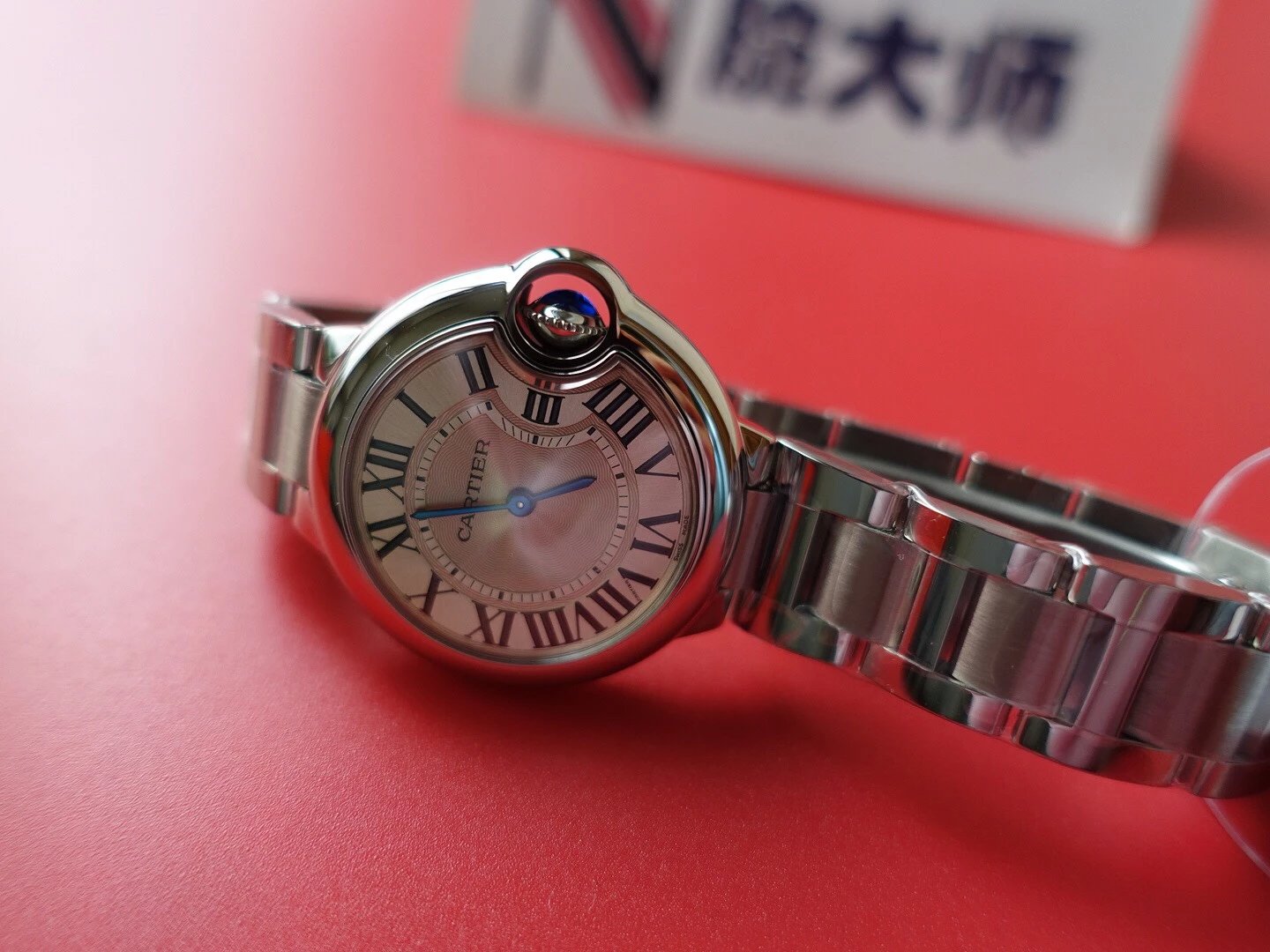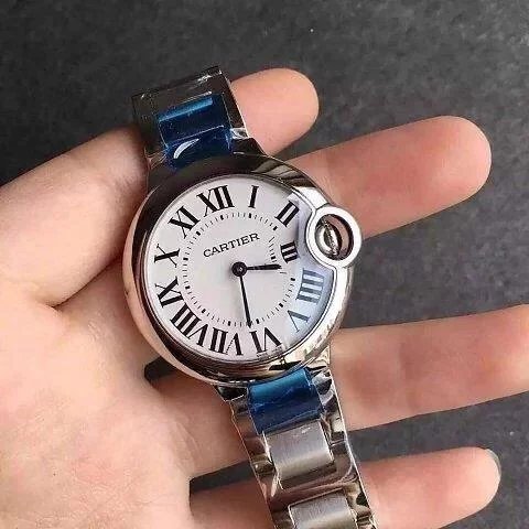 出品卡地亞藍氣球中號,直徑33mm,正品開模,從內而外達到亂真效果,通透藍寶石鏡面,與正品一致的魚眼效果,表面經典羅馬刻度顯示,純白表面十分精緻,燒鋼藍針,十分精緻,材料與正品完全一致,把頭鑲嵌藍色尖晶石,色澤到位質感飽滿,整表採用316L精鋼,材質與正品完全一致,最新升級版瑞士057機芯,拆機亦難辨真偽,這是一款百搭時尚精緻無比的腕表這是一款可以當正品戴的女表精品!