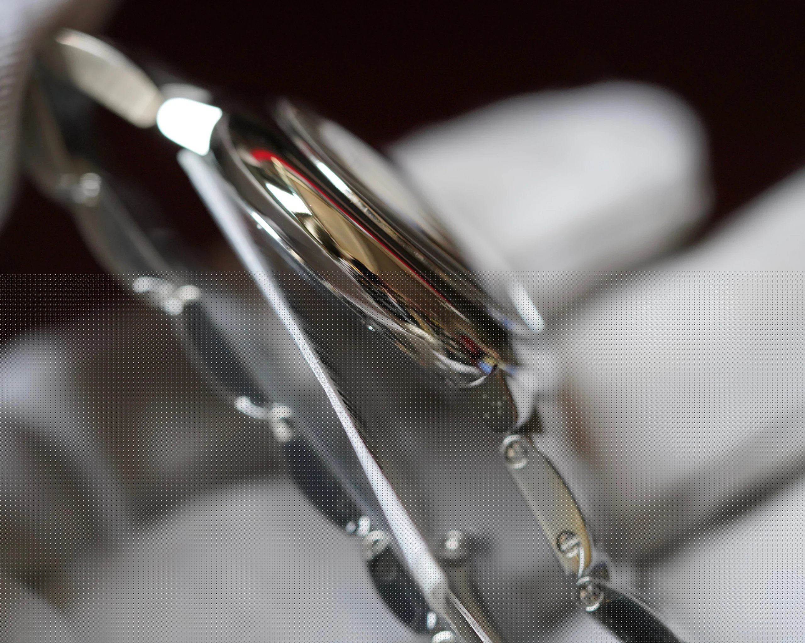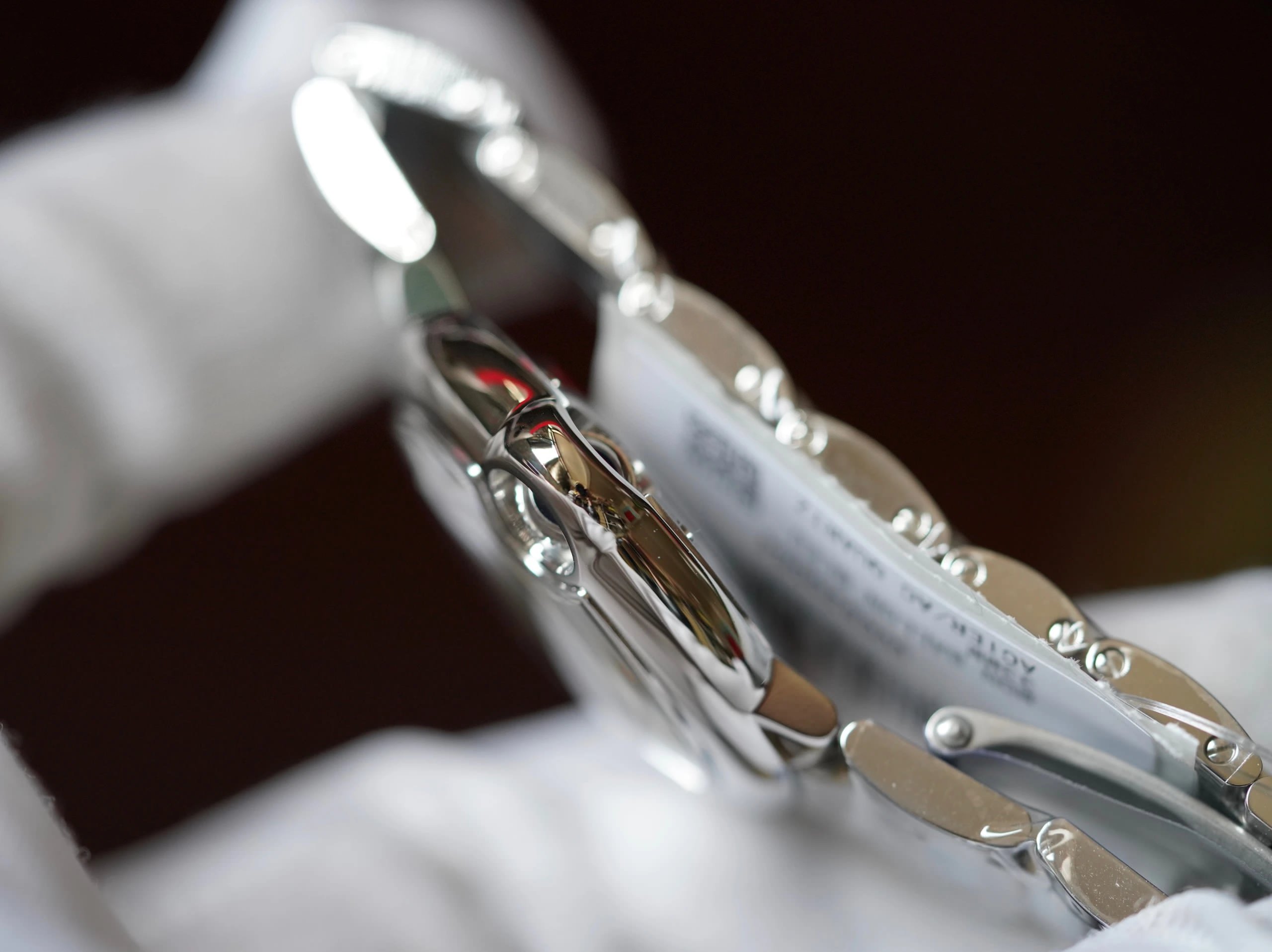 錶帶方面:金屬拉絲細膩,邊際處理也比較圓潤,做工十分詳盡,並且Logo刻字也更明晰立體。