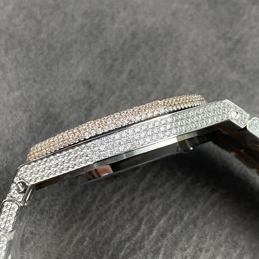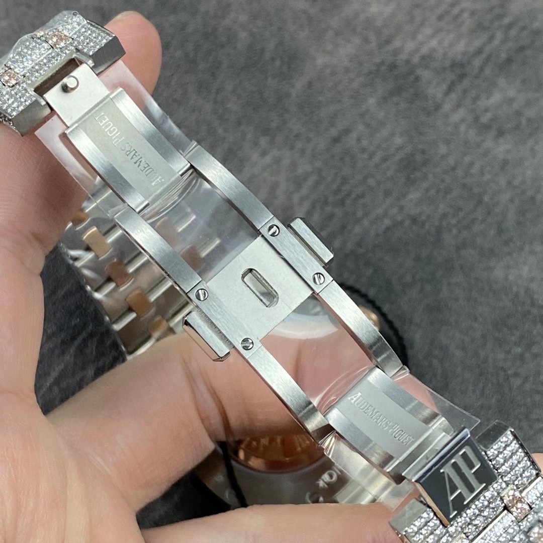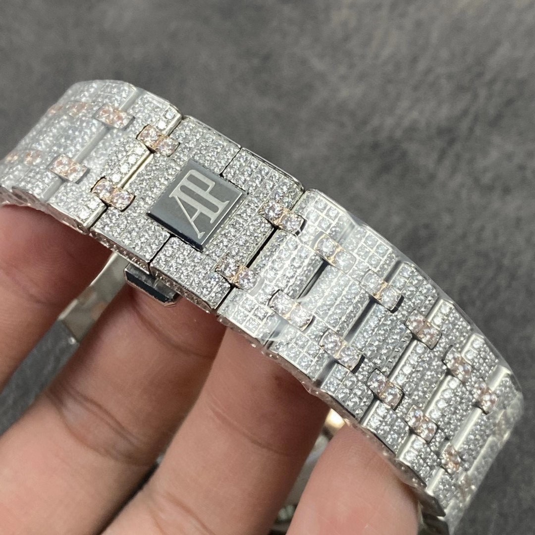 震撼來襲!皇家橡樹15400滿天星系列少量到貨! 歷經重重工藝,終於大功告成!整表密集鑲滿最頂級的施華洛世奇美鑽,包括鋼帶側邊也是滿鑲鑽,嘗試了無數次的加工工藝,追求奢華至極的無敵質感!不惜一切的成本,終於打造出目前最豪華的15400滿天星。秒殺其他現有版本的細節和做工! 表頭尺寸41mm,機芯採用9015改CAL.3120機芯。 讓每個人體驗滿天星的奢華! 歡迎品鑒!