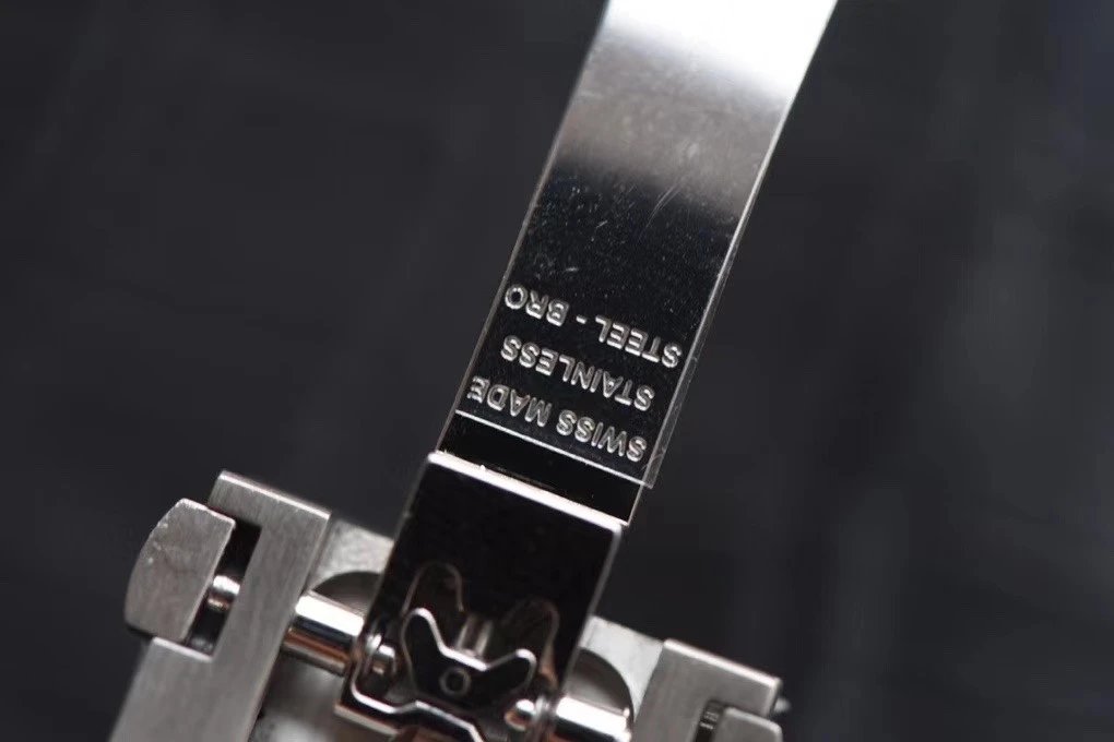全新原裝鋼帶開模,所有結構同步原裝,散件可與原裝互換,插板(表扣連接處)同步專櫃最新寬度(更窄更舒適不硌手),佩戴舒適度大大提升,另市面唯一一家伸縮扣內部護板釘帽結構亦同步原裝,細節已完美,難尋破綻。