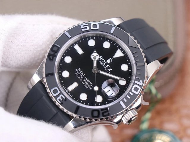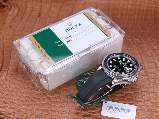 VS遊艇名仕YACHT-MASTER 42mm 新品。 正品開模,雙向旋轉外圈,不再鬆鬆垮垮,力度手感正品調教; 亞洲手腕尺寸橡膠膠帶按正品工藝包覆金屬片,持久耐用且舒服; 表殼上的鋼印跟正品一樣,不是普通刻字; 一表一碼一卡; 率先搭載VS即將發佈的最新水準3235機芯!