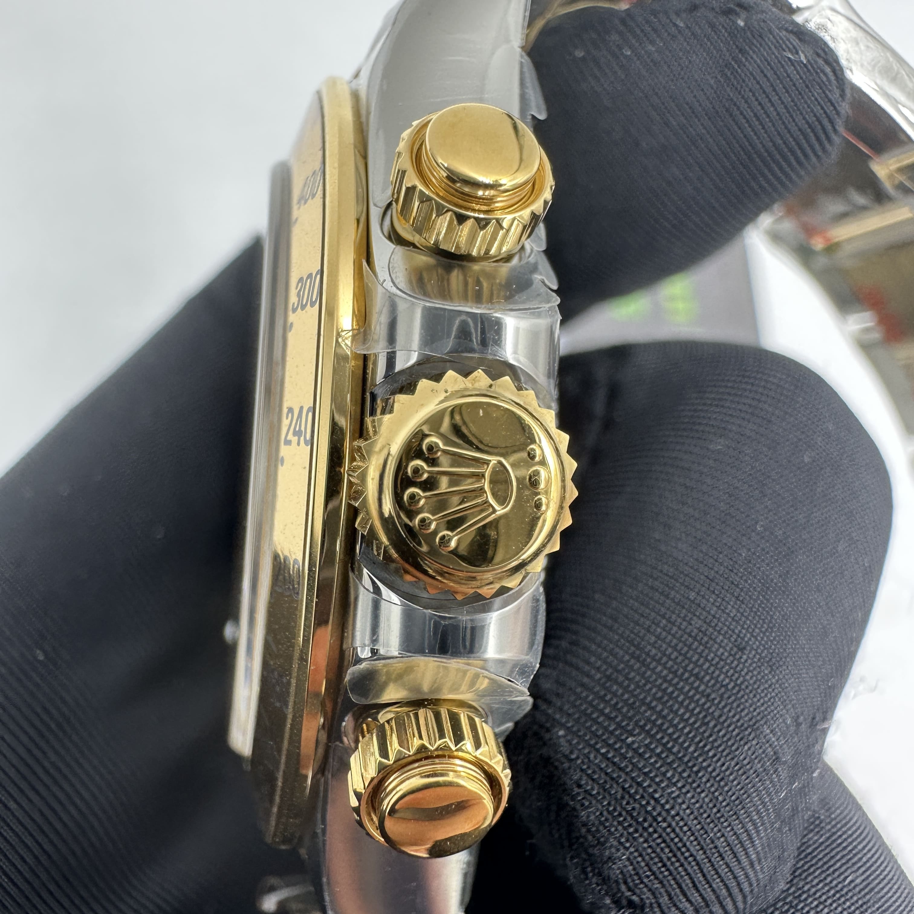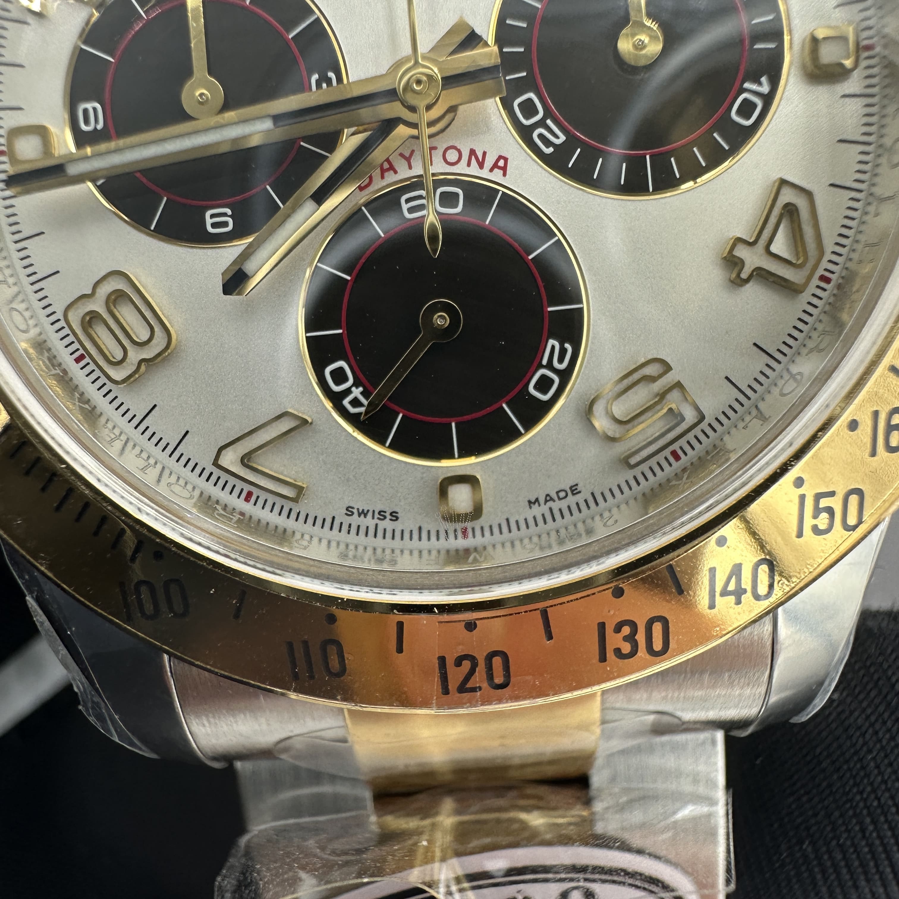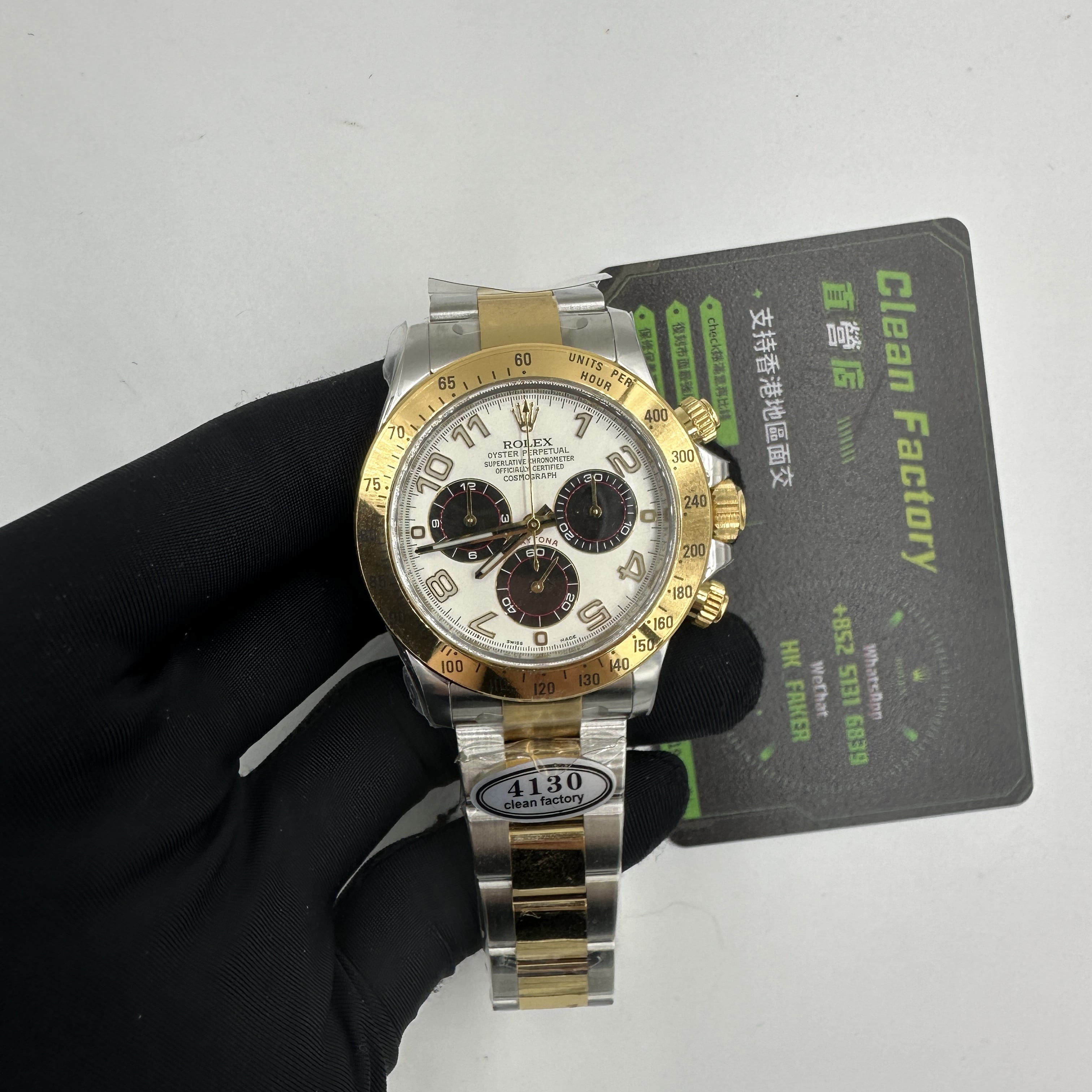 高仿Daytona眾多錶款之中,這一隻C廠熊貓間金款式相對於是冷門款式,不過在工藝層面上依舊是延續了C廠地通拿V3的配置,從C廠地通拿價格中不難了解到,BUFF代用指針,AR廠鋼帶,丹東4130機芯,都是最高配置.其中C廠Daytona使用的丹東4130機芯已經是最完美的配置,擁有72小時續航時長,計時功能百分百還原正品,穩定性與走時標準的還原才是高仿Daytona的精髓所在.