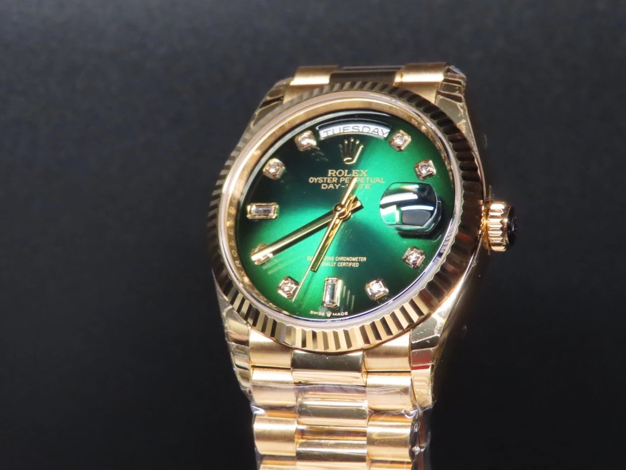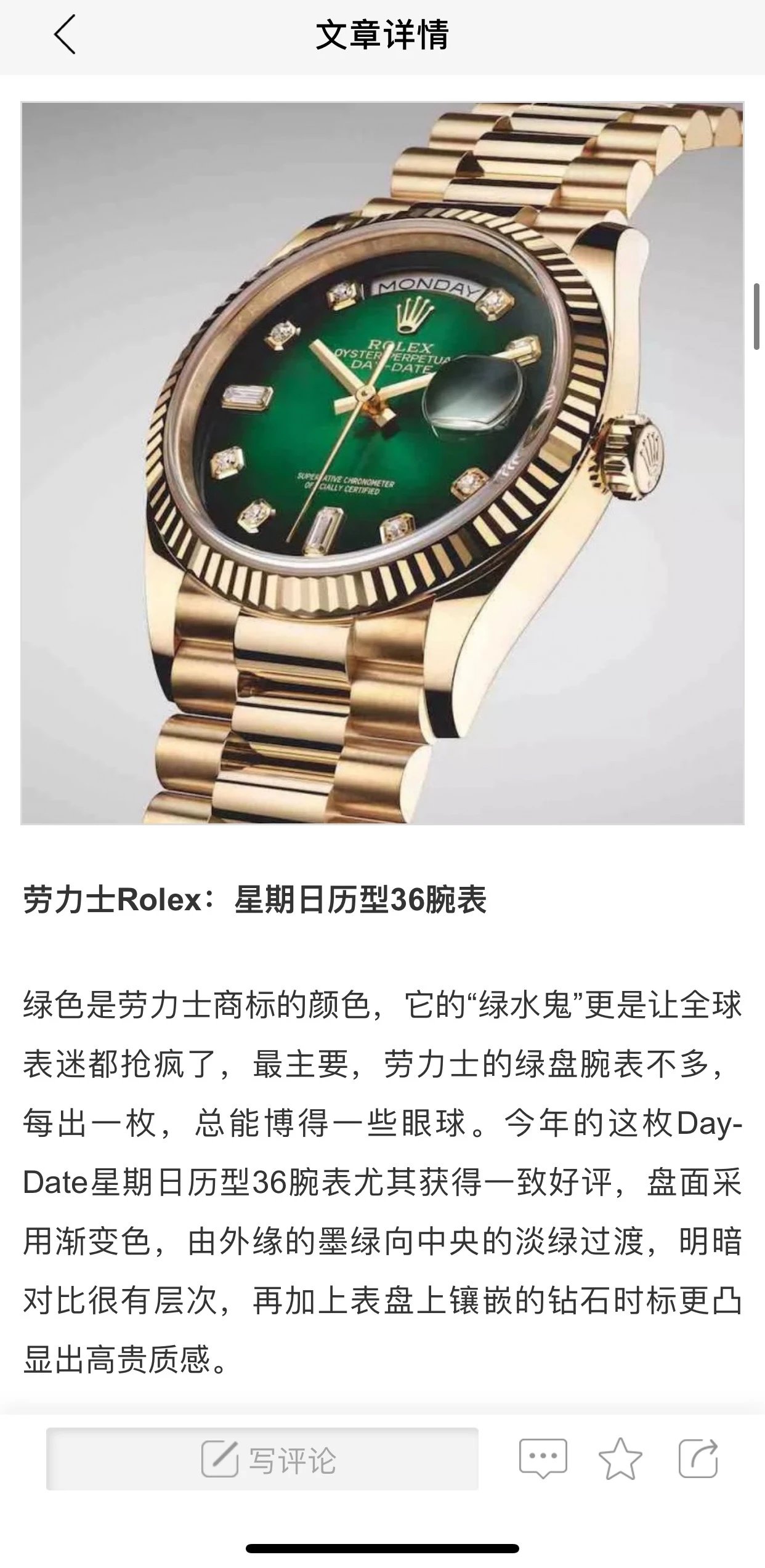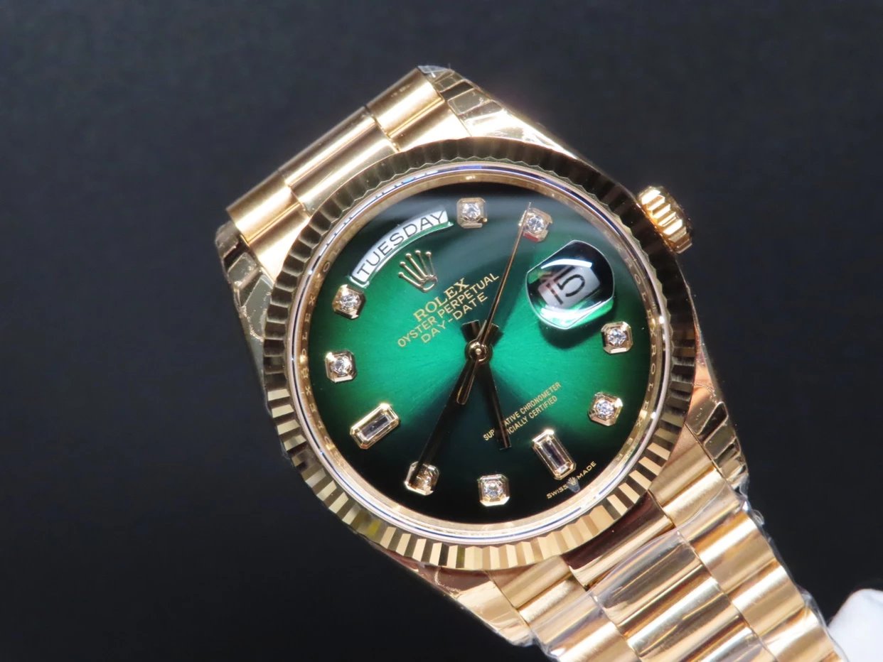 2022新品,EW 勞力士 星期日志型36mm系列 1?? 錶盤設有18ct金,鑲鑽石,6及9點鐘位置鑲方形鑽石。 2??蠔式表殼結構,一體中層表殼,旋入式底蓋及上鏈表冠。 3??結構尺寸厚度同步原裝,直徑36毫米,厚度為12毫米。 4??搭載3255自動上鏈機芯,快調瞬跳星期日曆、做到調時、厚度、結構同步原版。 5??頂級做工,每條錶帶與表耳完美契合,給予手腕最高的舒適度; 6?? 表扣做工前無來者,打開logo輕鬆解開!請認准細節 每個極致的細節都是EW工廠匠心開發的誠意!! 圖片來自實物高清拍攝? 無濾鏡!所見即所得! 我們都是通過平臺擔保交易,收到後 不喜歡 不滿意 完全可以申請退款退貨。我們機芯終身免費保修有問題直接聯繫我們(石英機芯十年免費更換電池) 我們打包配有包裝 含發票?說明書,真正做到一應俱全!送人自用都是很好的選擇