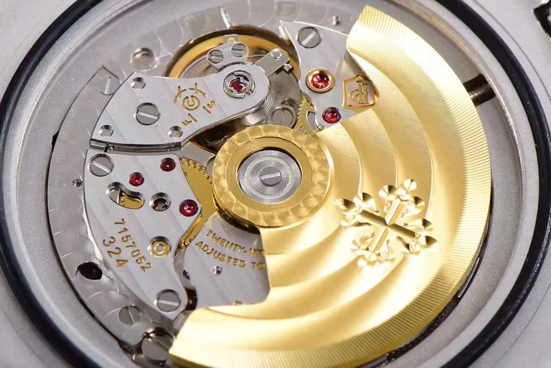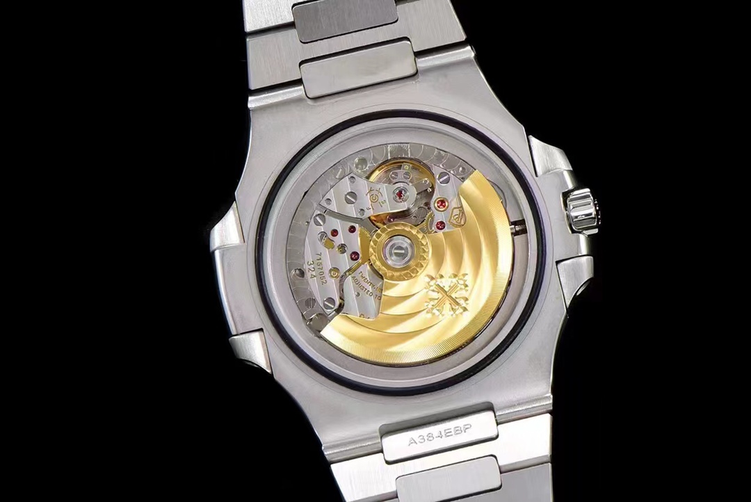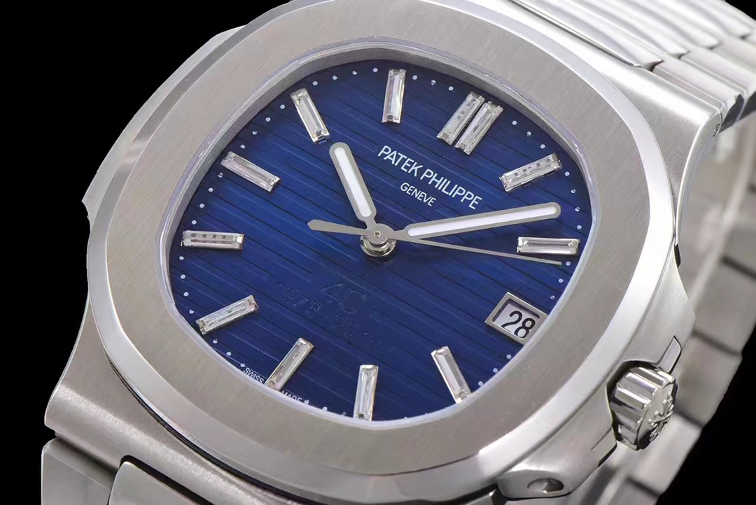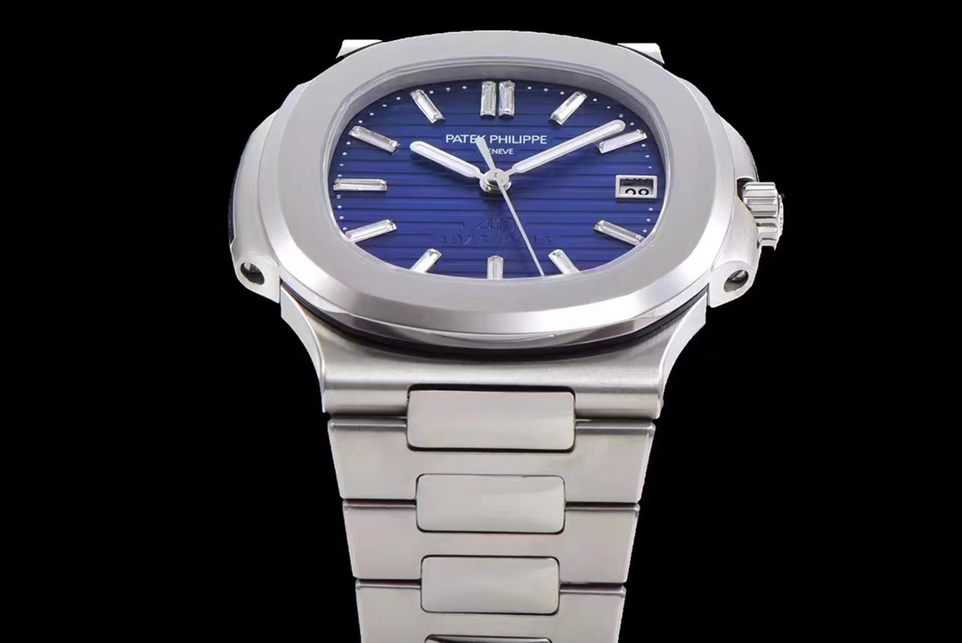 GR傳承精品,推出最新鋼王百達翡麗5711_ 1P-001 NAutilus四十周年紀念腕表,依舊採用金典鸚鵡螺八角形錶圈設計美學,40MM尺寸的三件式錶殼,緞紋打磨,噴砂工藝,倒角處理以及鏡面拋光各個細節均花了更多的心思,成品錶殼是層次分明,令其他計時望其項背,盤面為深藍色主調色,從內而外呈現深淺漸變色效果, 錶盤上則壓嵌著12枚18K白金時標配以長方形進口頂級寶石,六點錶耳之間嵌有一顆頂級威塞爾頓寶石,獨具一格,彰顯氣質。 透過藍寶石下的所看到的心臟則采日本9015自主研改百達翡麗Calibre324 SC自動上鏈機芯,性能穩定,動力儲存更強勁。