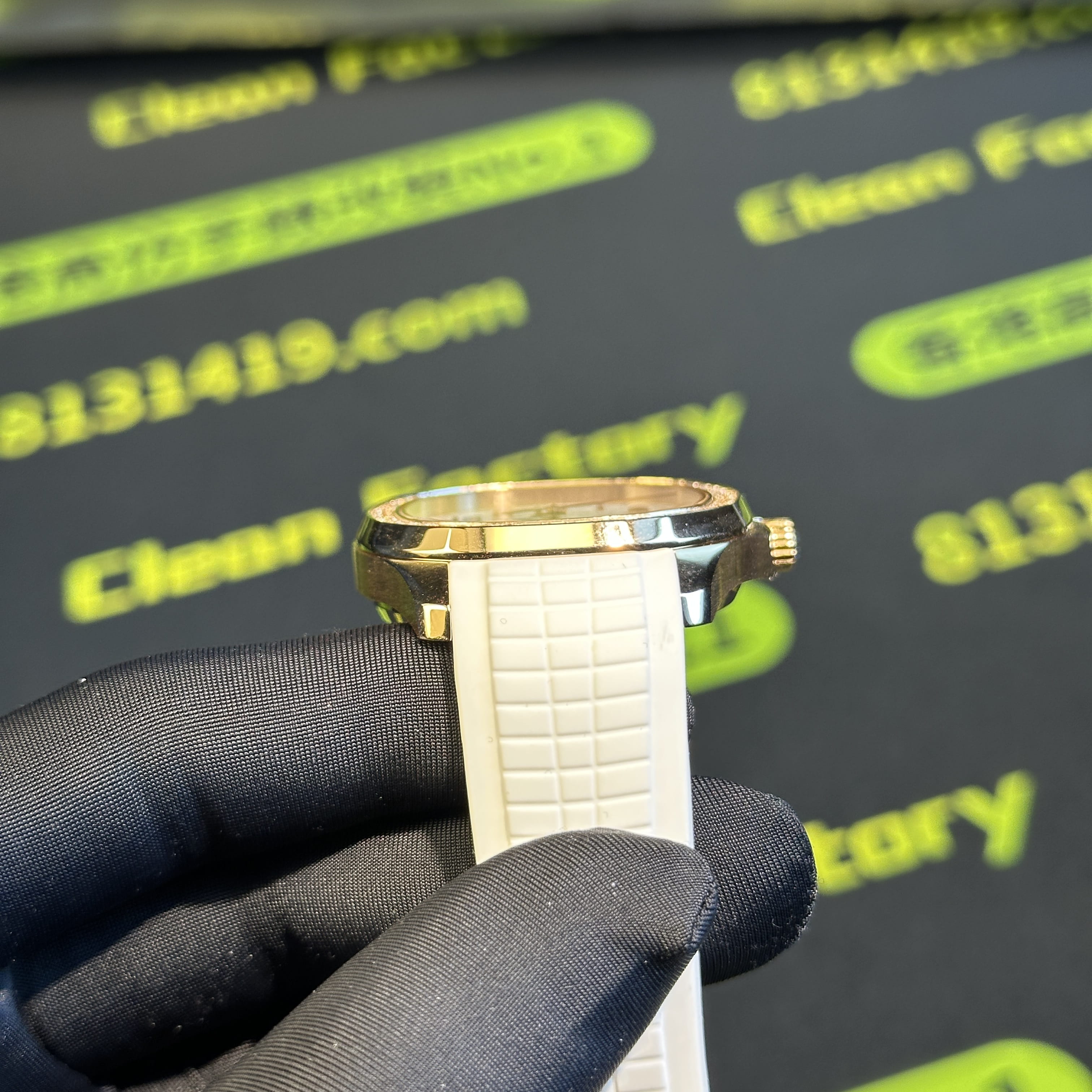 而圈口部分GR廠百達翡麗手雷使用了鋯石材質進行鑲嵌,同步原裝正品一致一共48克鑽石圍繞,每一顆鋯石的切割面非常完整.錶盤部分GR廠PP手雷紋理紋路清晰,底部的浮雕狀態非常清晰,層次分明,同步原版的視覺感.錶帶部分是進口純天然復合橡膠材質打造,原版錶帶1:1刻模打造而成.機芯部分是使用了進口9015機芯改原版324機芯,續航動力高達50個小時左右.