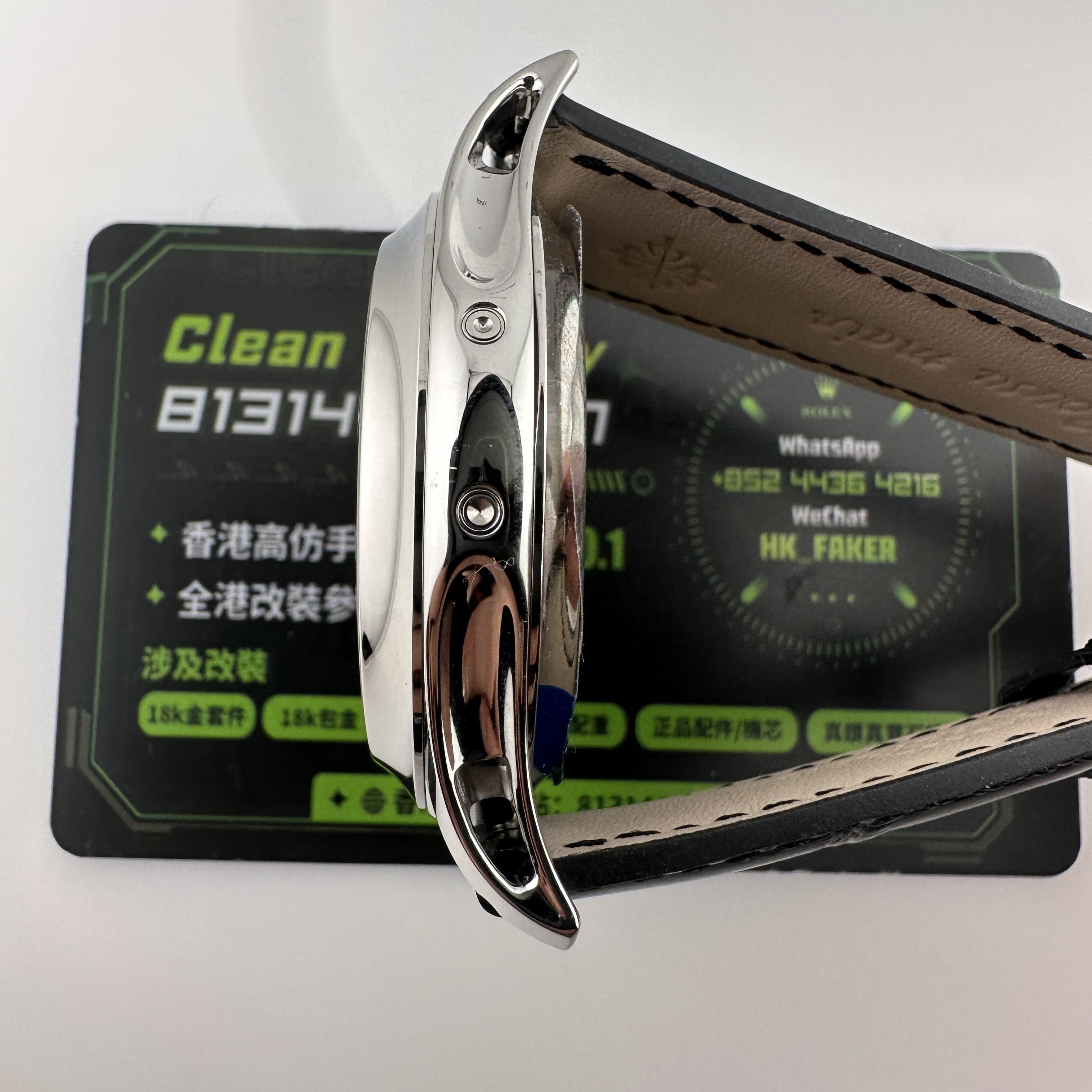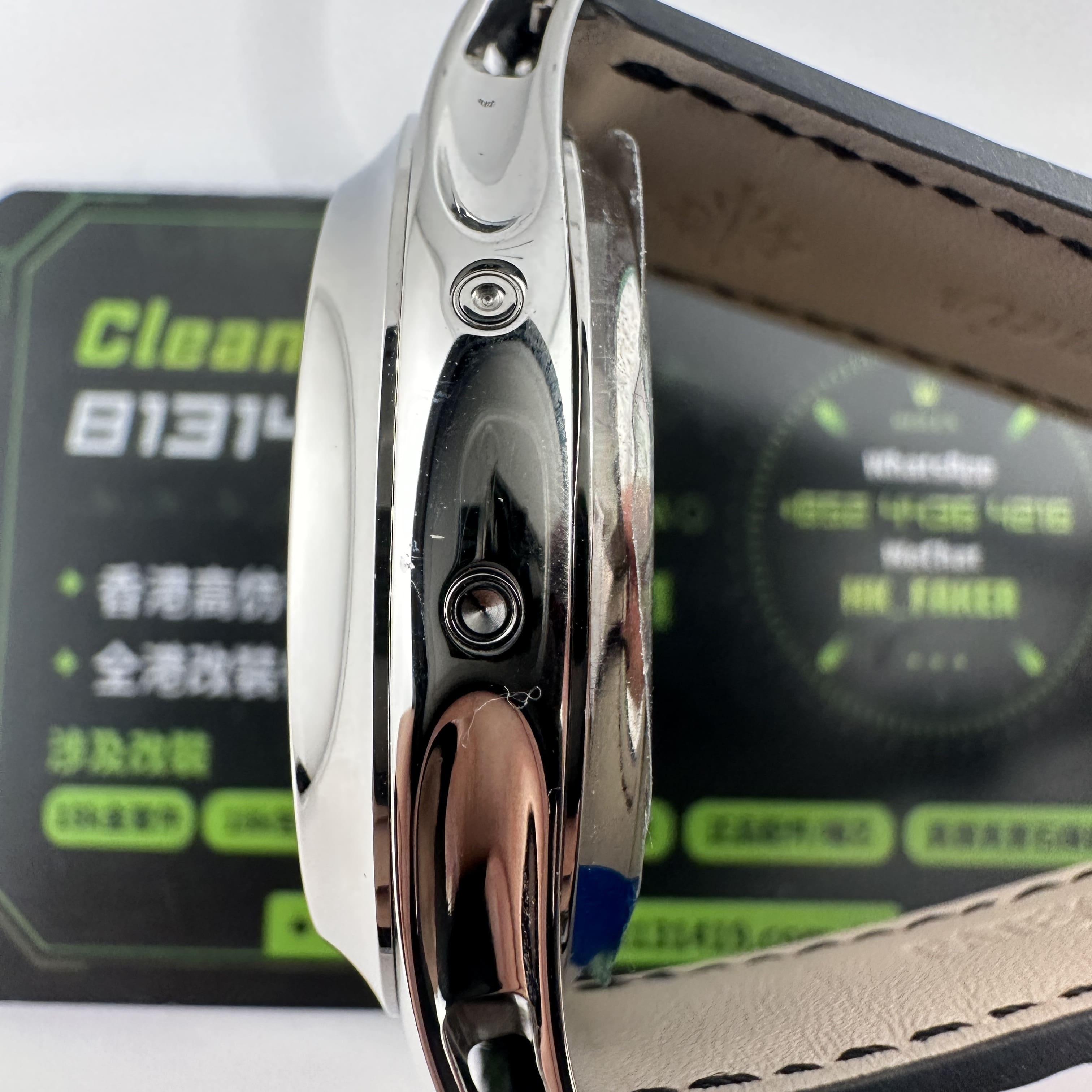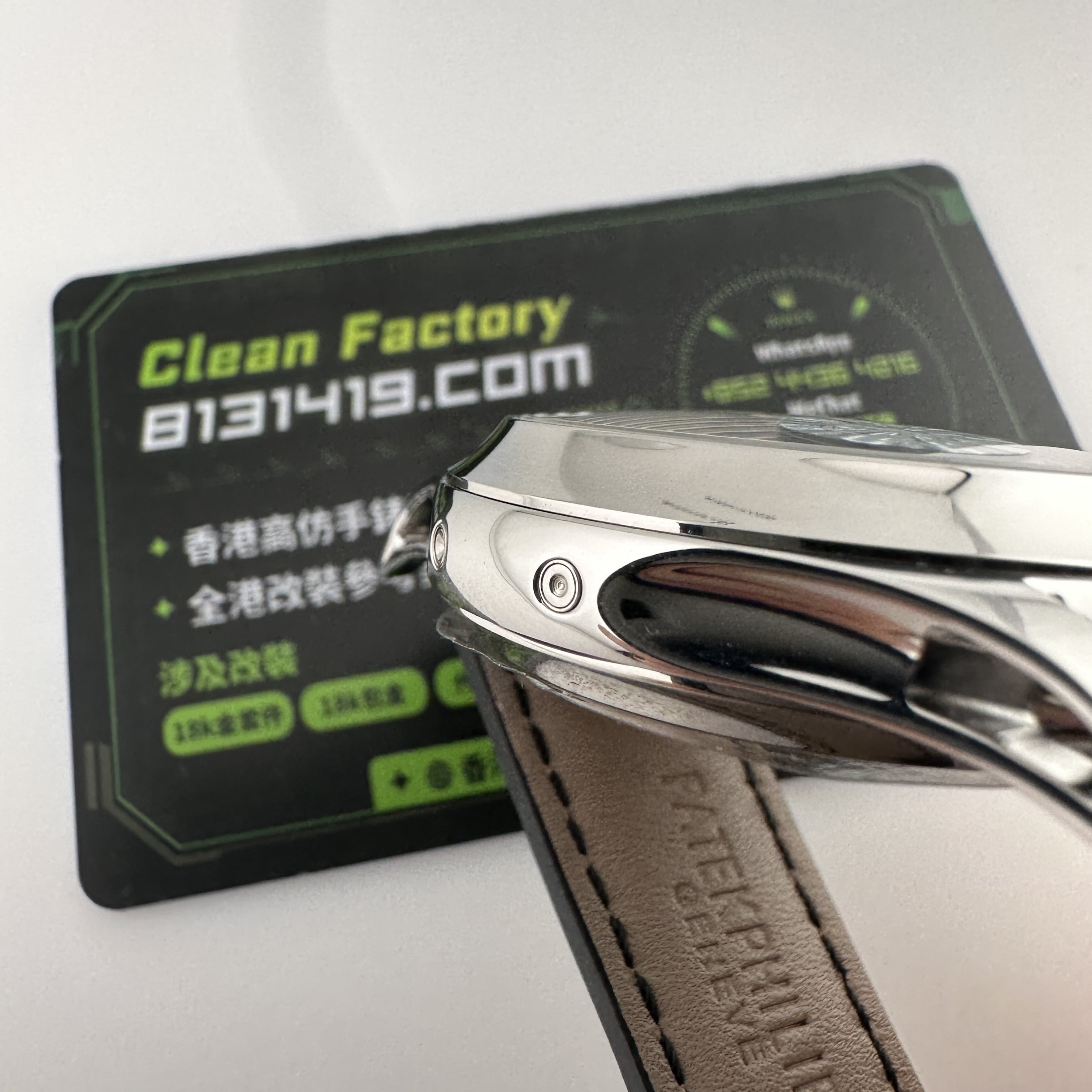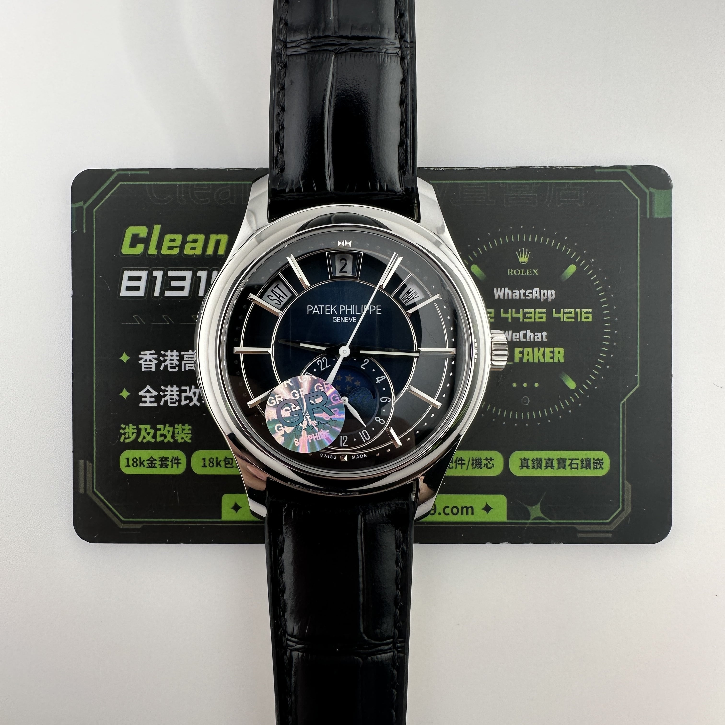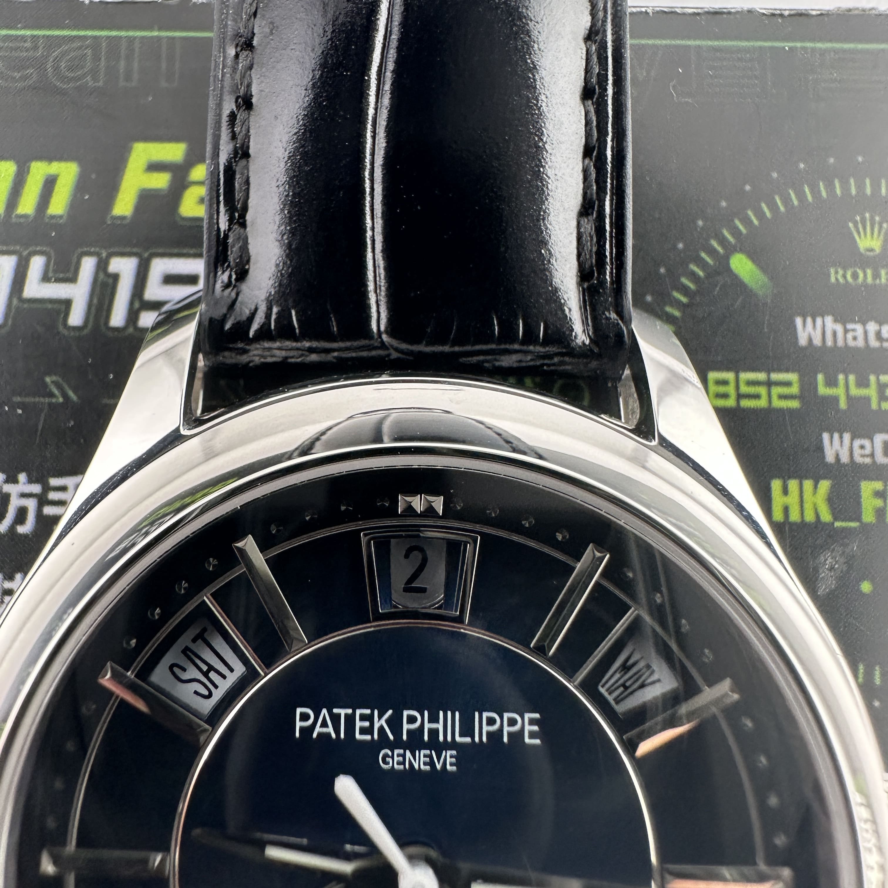 整錶尺寸40mm,厚度11.36mm基本上是同步原版尺寸.錶殼材質使用904L精鋼,外加PVD電鍍工藝達到與原版一致的白金色值,基本無色差! 藍水晶高透鏡片與錶殼貼合部分完全沒有白邊瑕疵.整張黑灰錶盤配備了多功能顯示.一共有5種功能顯示.GR廠PP5205G在功能還原上也是實現一比一還原使用.盤面顯示有日期-星期-月份和年曆顯示,包括月相部分,具體功能使用是通過錶殼四周有功能暗鍵,需要通過頂針調教,每一隻GR廠5205G都會配備.錶帶為小牛皮質純手工縫線,舒適度極致.錶扣可選擇針扣和PP蝴蝶釦.