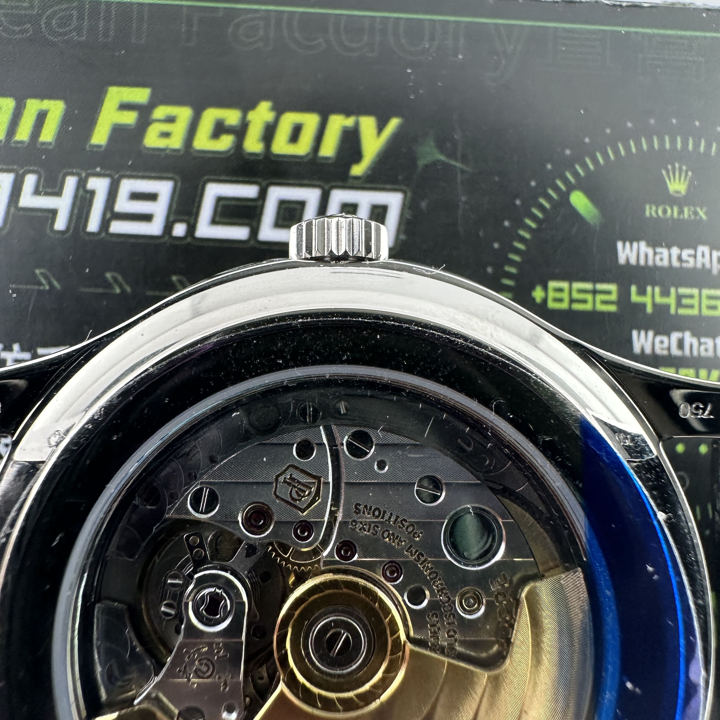 GR廠推出百達翡麗複雜時計系列5205G-013,目前是升級到了V2版本.對比V1版本的功能缺陷,GR廠5205GV2版本換裝了與原版一致的Caliber324S自動上鏈機芯.在功能功能方面實現一比一還原.機芯精益求精優化了新版本機芯甲板刻度字體更為細緻,刻度深度也能夠達到原版一致.PVD電鍍金屬擺陀方向和位置和原版機芯同一致.機芯鑲嵌的寶石使用鴿子血寶石材質.整個的機芯呈現結構是能夠對版的狀態.這一隻PP高仿底蓋部分為背透,完全可以看清楚整枚機芯的工藝表現和結構部分.通常背透機芯是最能夠體現出真假.這一點GR廠百達翡麗是做到精工還原.