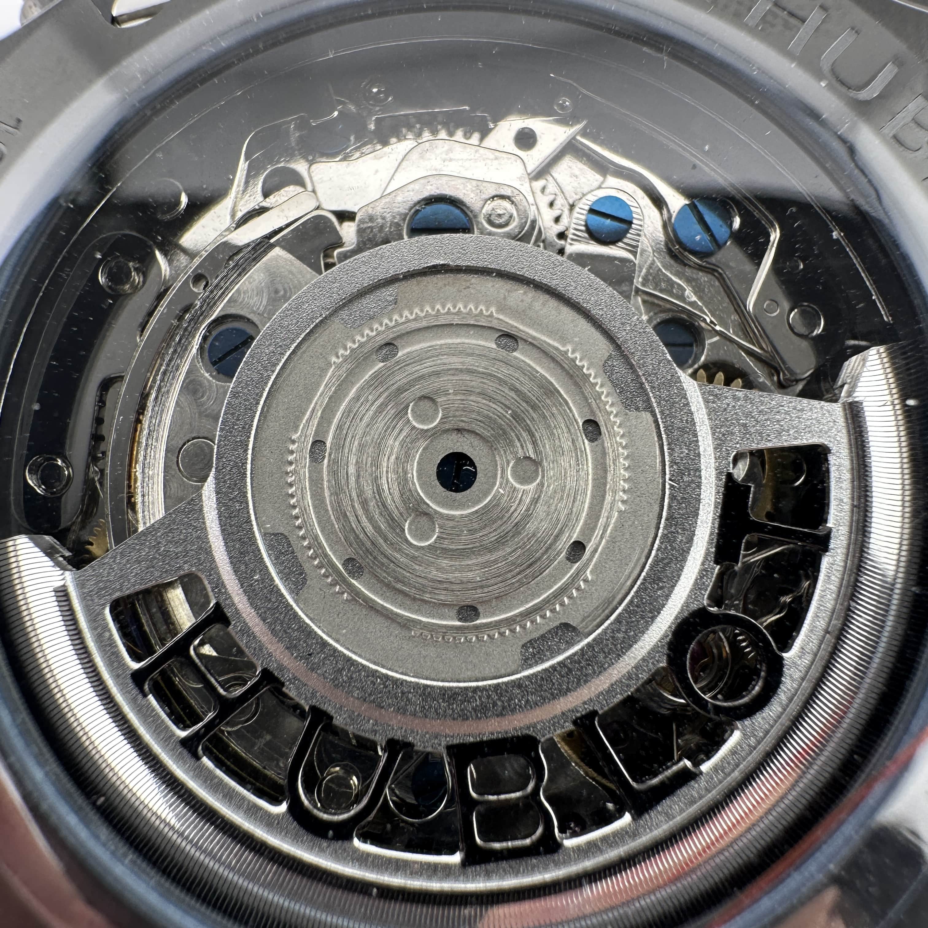 在工藝層面上黑色的陶瓷材質打造宇舶計時腕錶的錶殼以及圈口塑造中,HB廠根據原版對此錶殼進行拋光打磨,並且圈口部分的拉絲跡象HB廠也是做到了對應的緞面還原,在不同自然光以及燈光環境中緞面的質感非常高級.其次是機械錶盤的構造,突出了機芯和配件配置的融合,在多次調試過程中HB廠將計時功能和機芯配件做到完美融合.