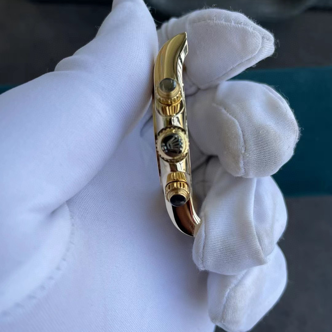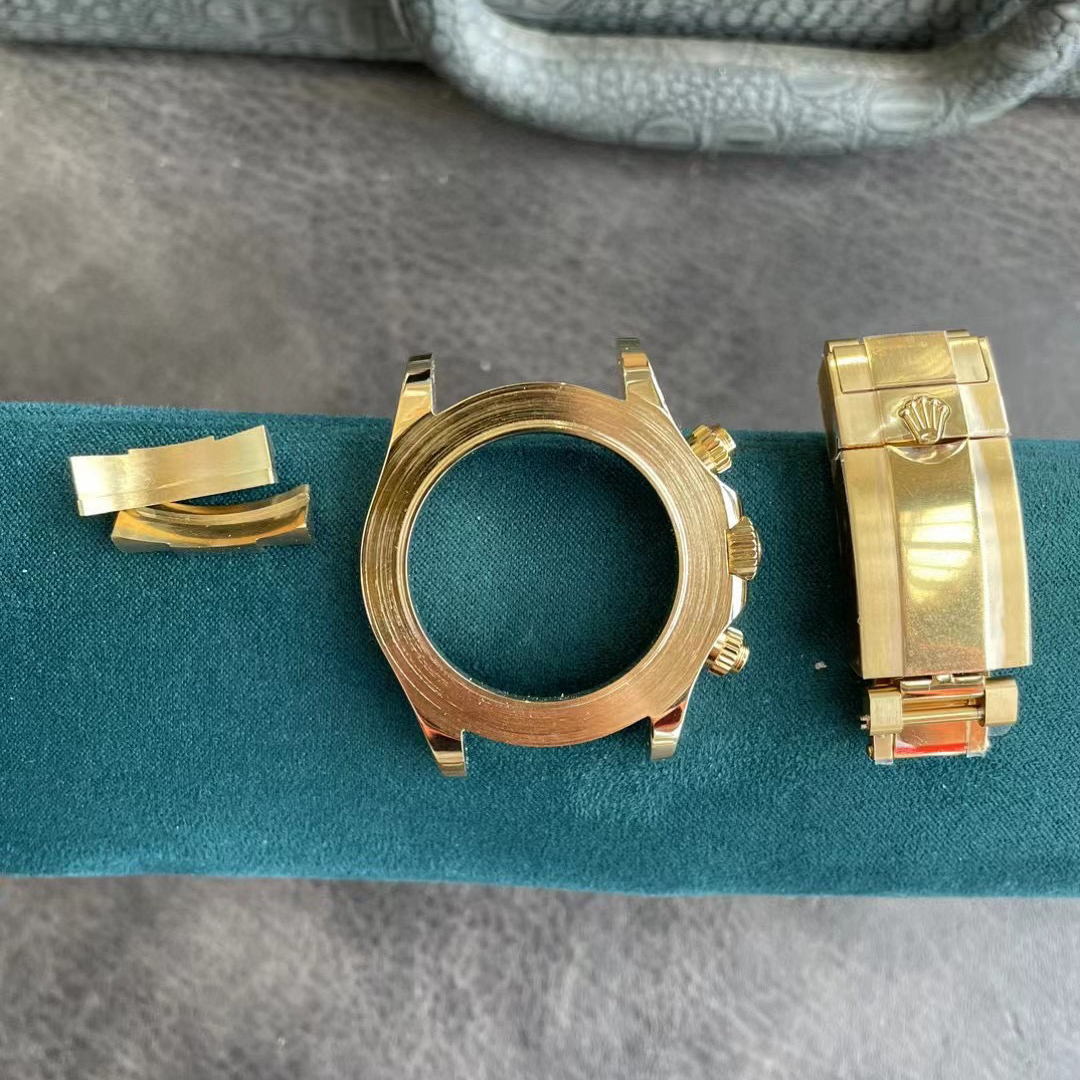 而勞力士鎢鋼配重在現有的案例當中顯然是非常成熟的階段.不論是對比正品K金色值還是玫瑰金色值都能夠做到百分之98以上.這是PVD電鍍工藝無法比擬的工藝,當然其中就是跟材質有區別.同時復刻錶鎢鋼配重對比K金配重在價格上也是相當便宜,也能夠為我們節省資金,又能玩到配重復刻錶改裝.目前比較熱門的鎢鋼配重款式就是膠帶地通拿.如Clean廠地通拿後續覺得玩膩了可以改裝升級鎢鋼材質,現在也有比較合適膠帶地通拿的配件.錶殼-錶扣-頭粒一比一復刻出基本磨具再進行組裝.可以定製18K金色值或者是玫瑰金,根據個人喜歡款式和現有地通拿進行還原配重.