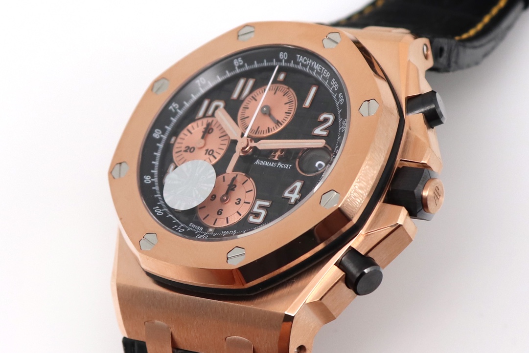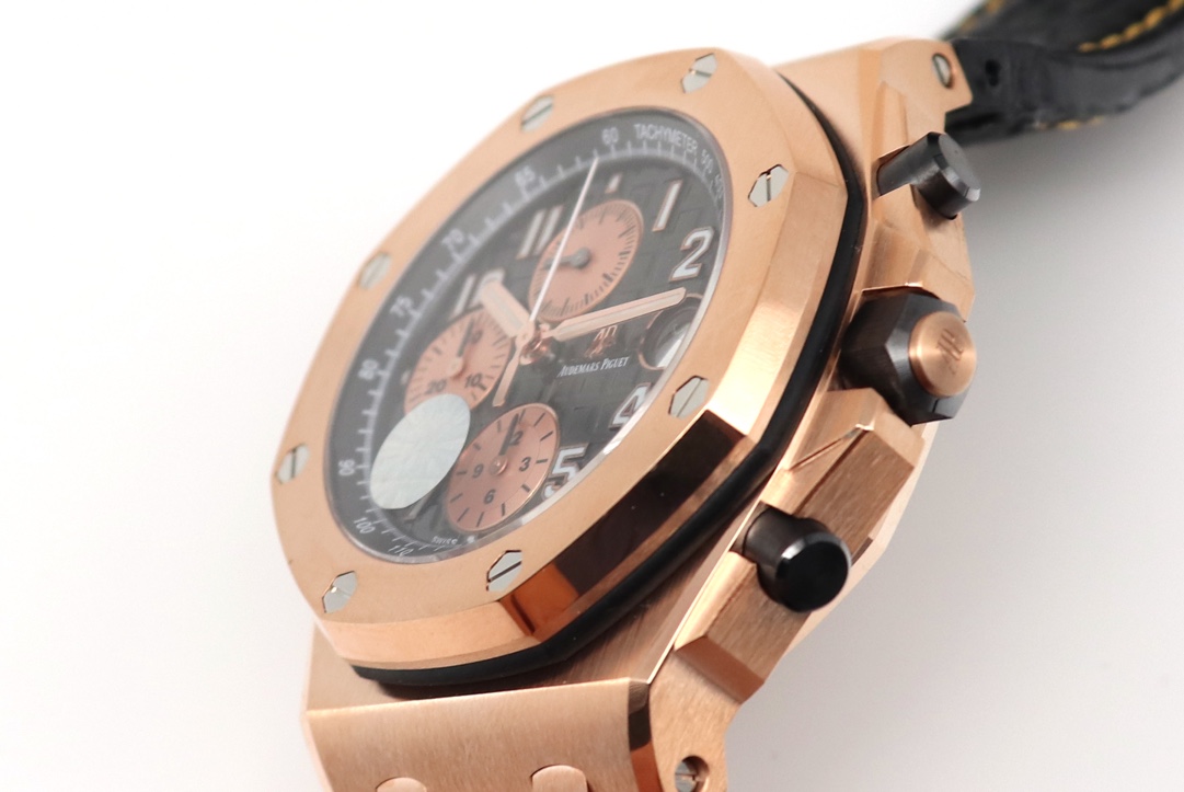 A P皇家橡樹離岸型26470 OR全玫瑰金陶瓷計時按的(皮帶款)。 直徑42mm! 搭載複刻原版Cal.3126十二比特計時機芯